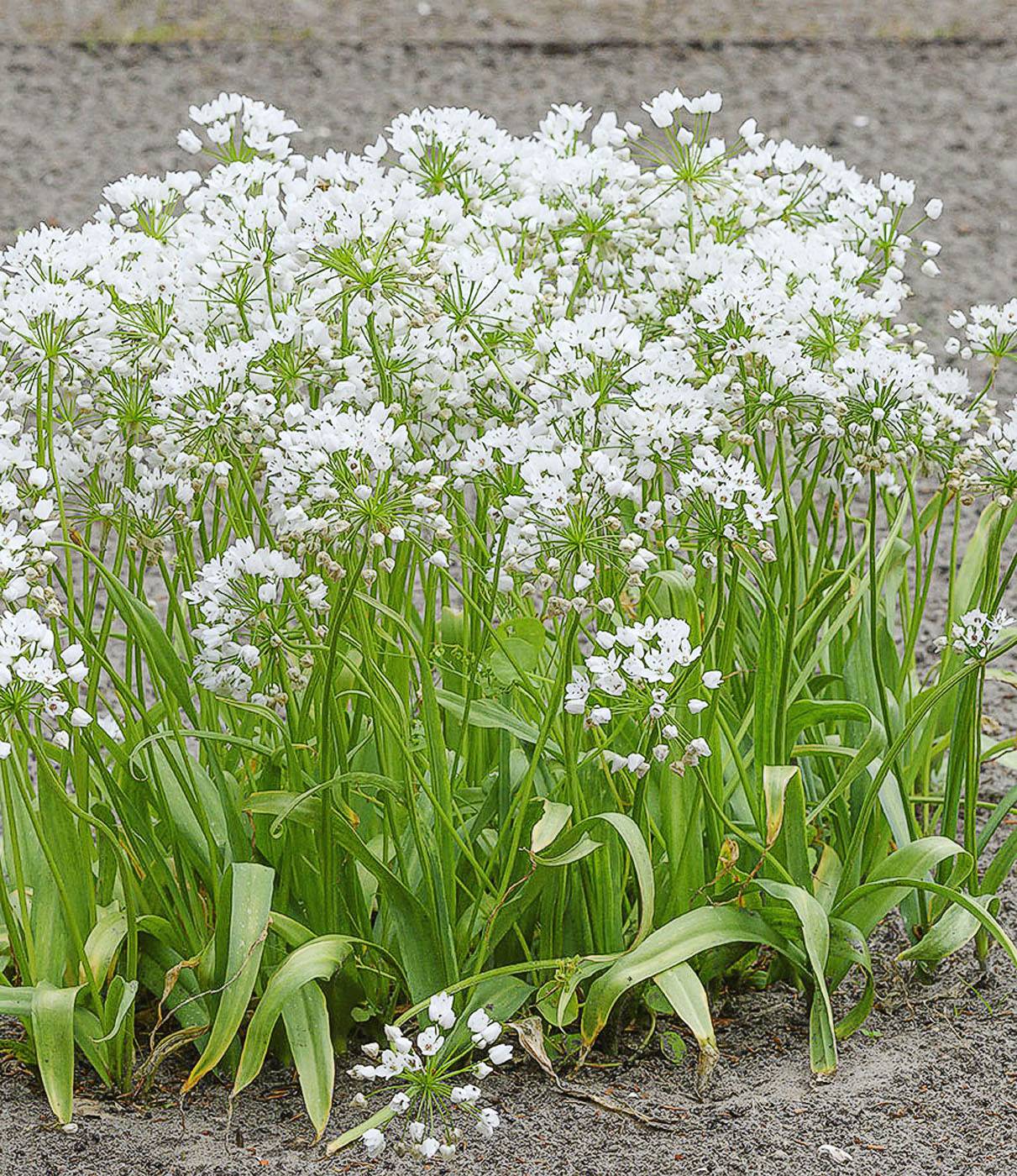 This onion gets good marks because it is one of the earliest allium to flower, lasting well in the garden, even when planted in less choice positions. A very pretty trinket with narcissus-like leaves and loose sprays of fragrant, starry white flowers in late spring and early summer.