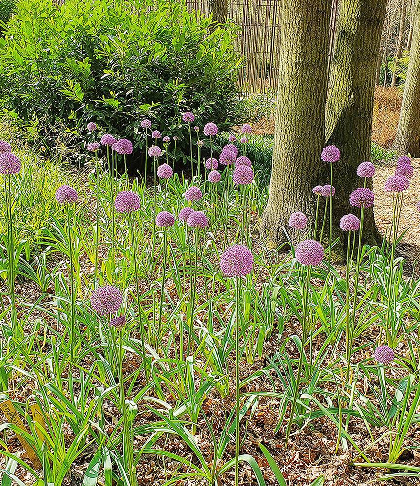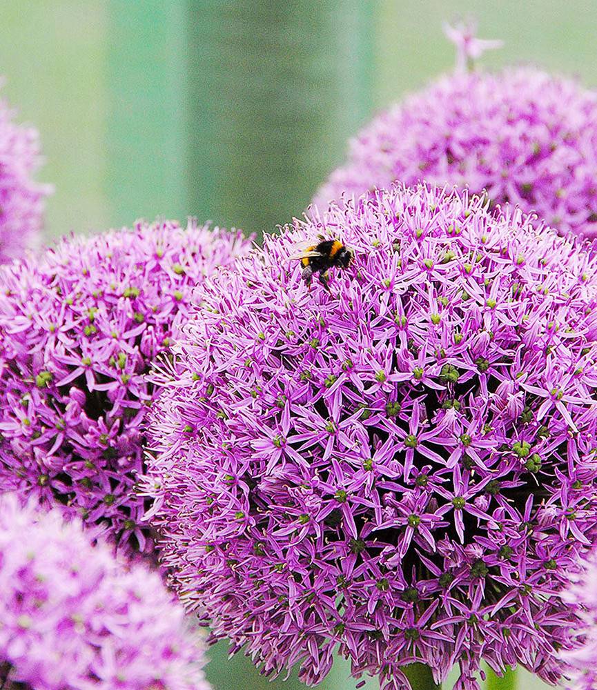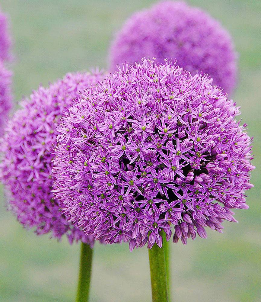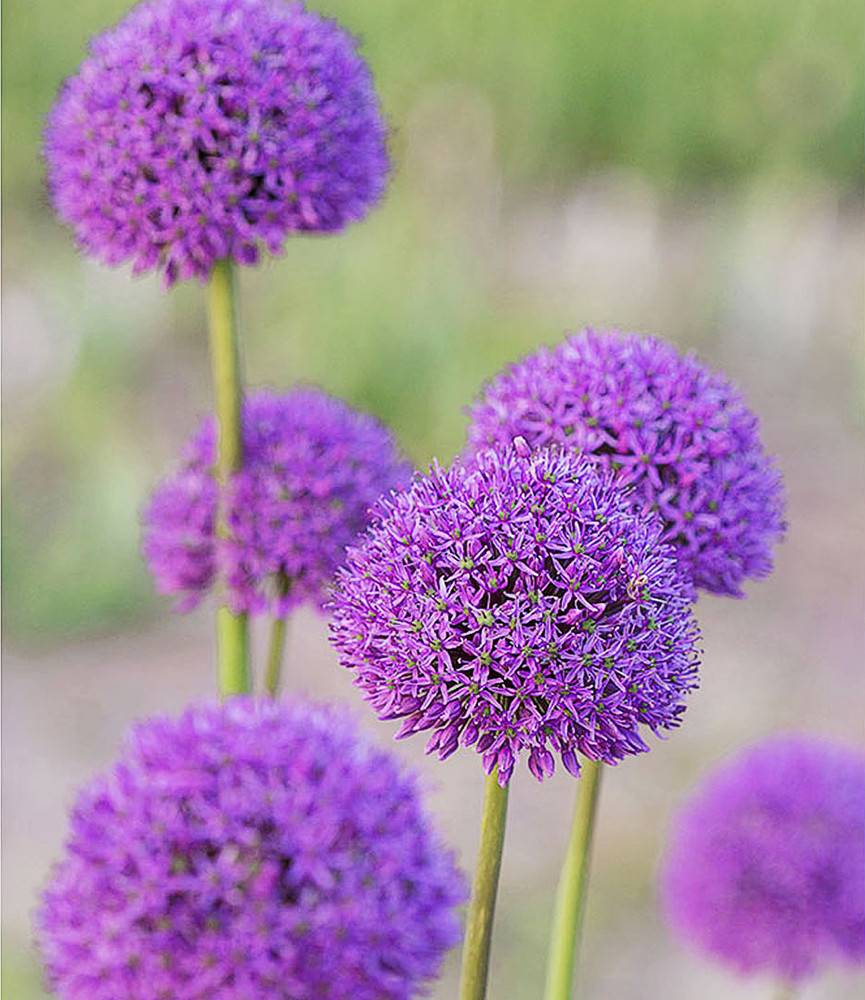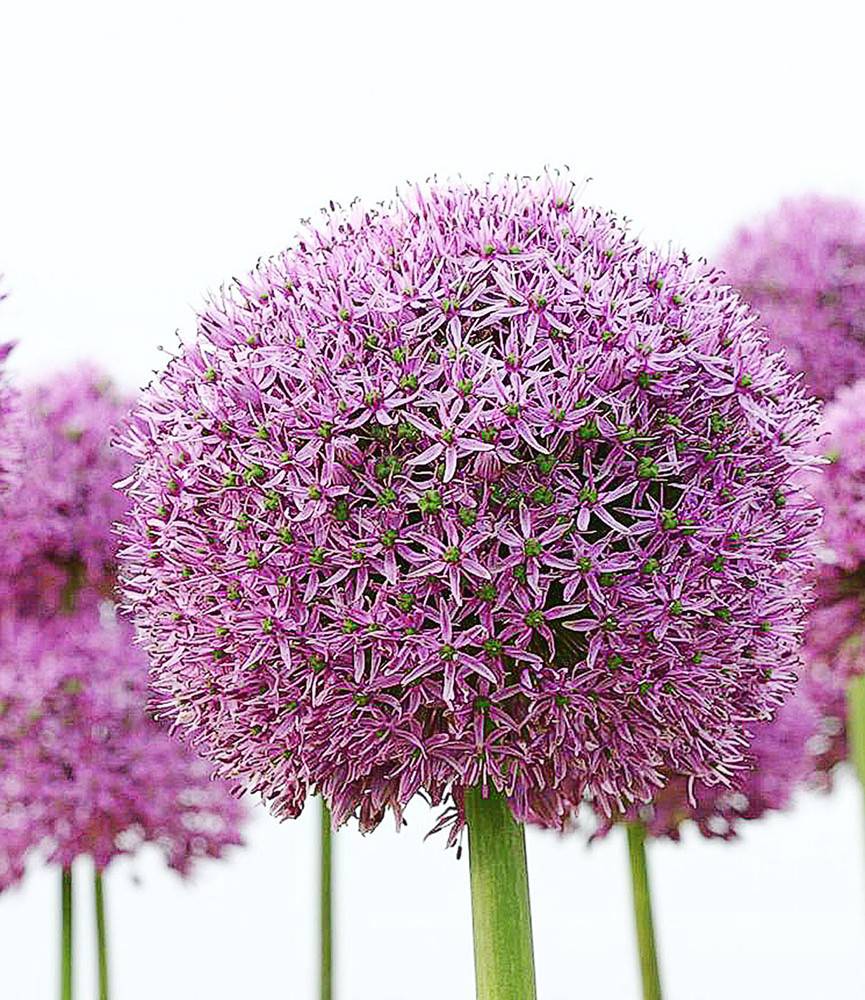 Compact 12cm globes of lilac-purple on naked 1m tall stems. The flowers last for more than a month and remain handsome as a dry seed head even after they have gone by. A popular perennial bulb, best planted in sizeable groups.