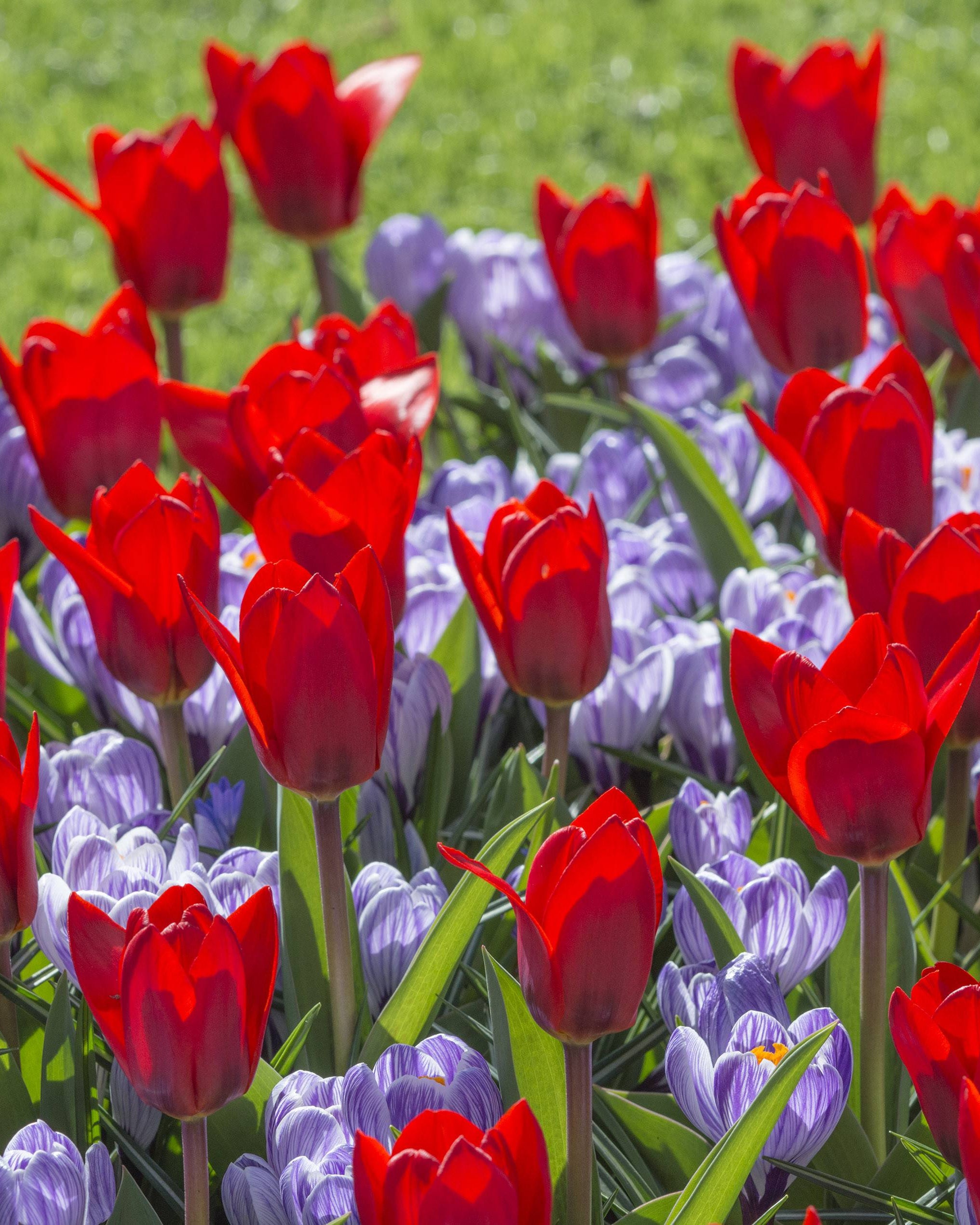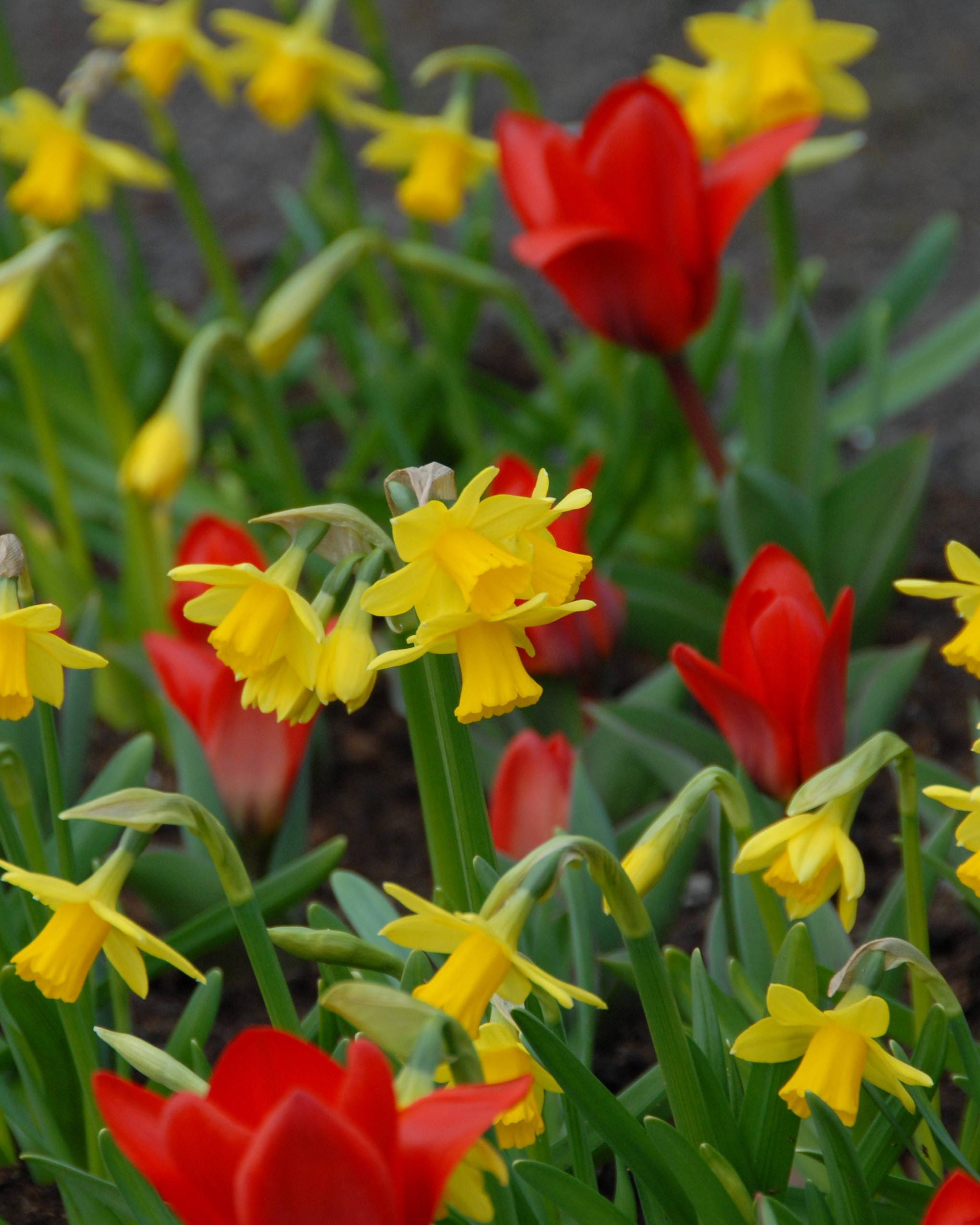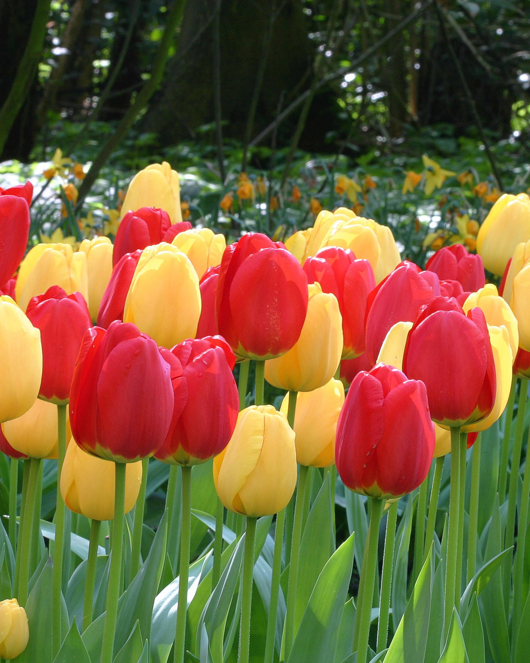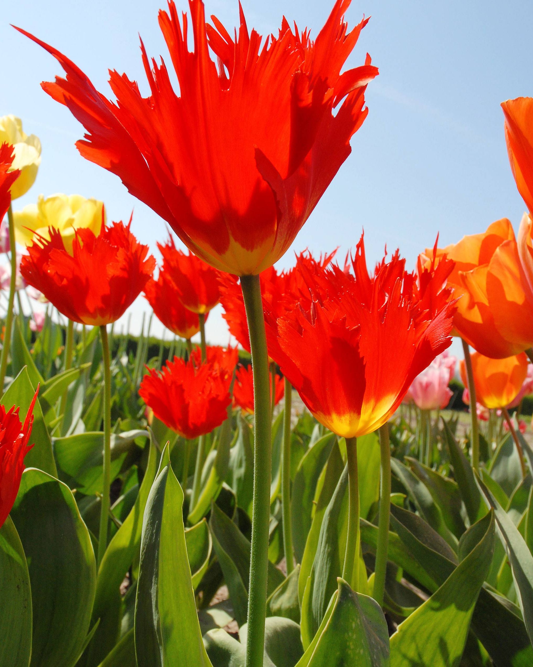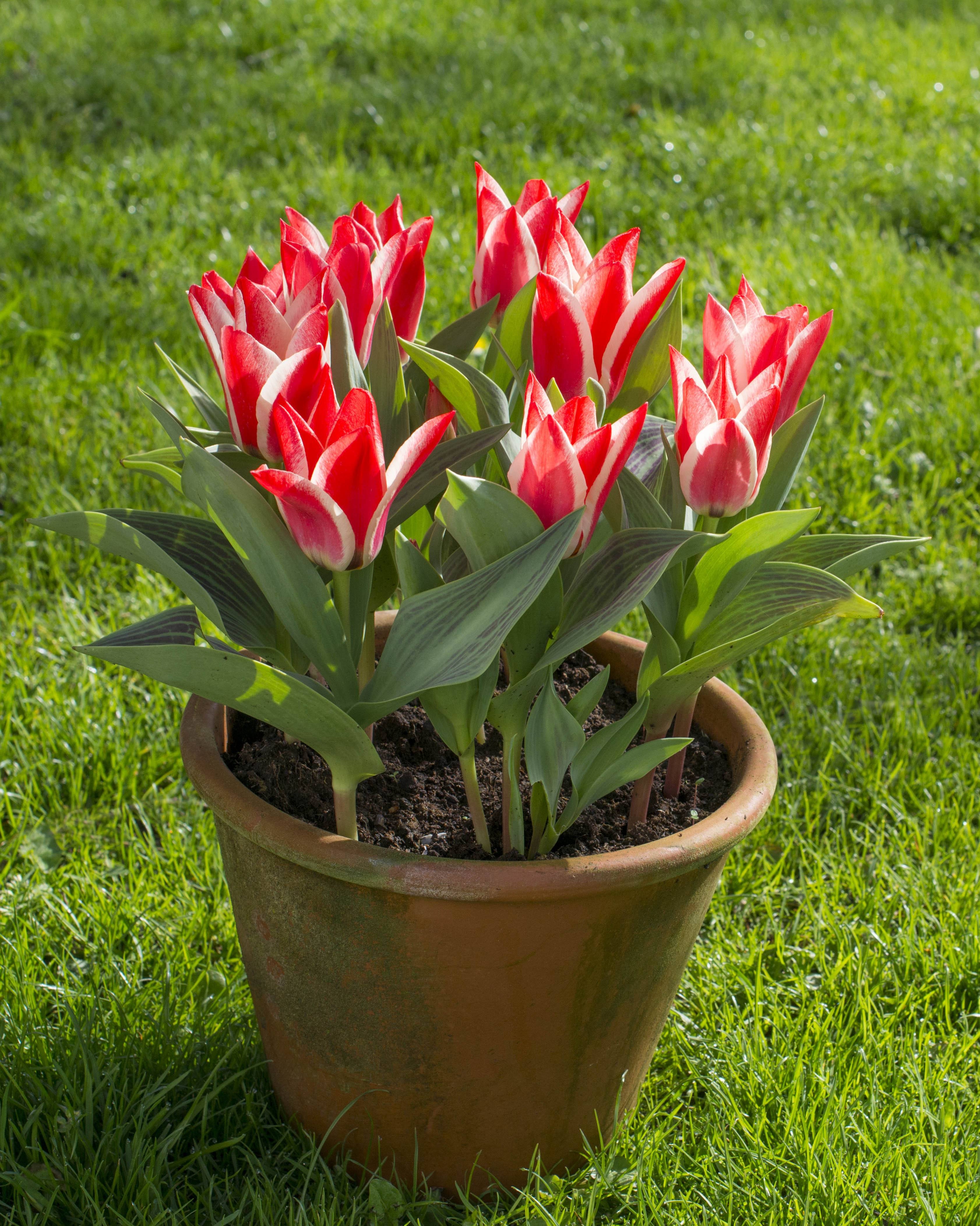 Use the startling flower colour of tulips to create a dramatic spectacle at the start of spring. Wide drifts of colour through your garden borders will lift your spirits and attract a lot of attention. As the season develops tulips of many shapes and sizes can be used to create bold, harmonious and certainly sophisticated combinations with the other plants growing in your garden. From the small-growing wild species to the colourful mid-season varieties and those that grow very tall and flower late, there are endless possibilities here to be explored by the adventurous gardener.