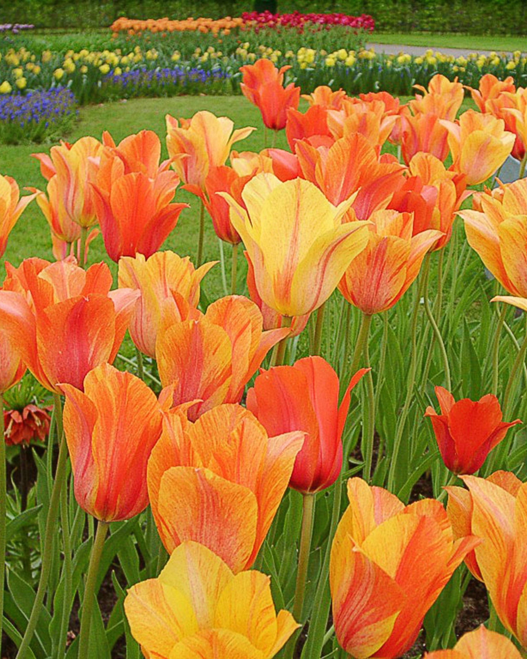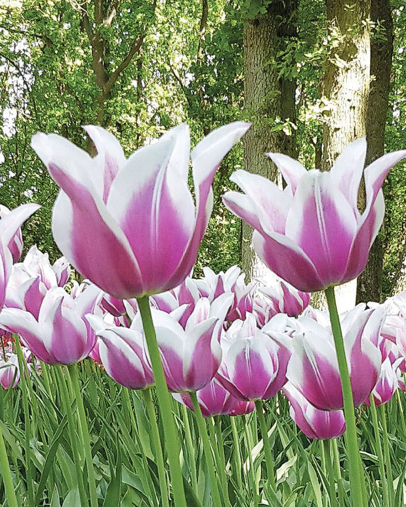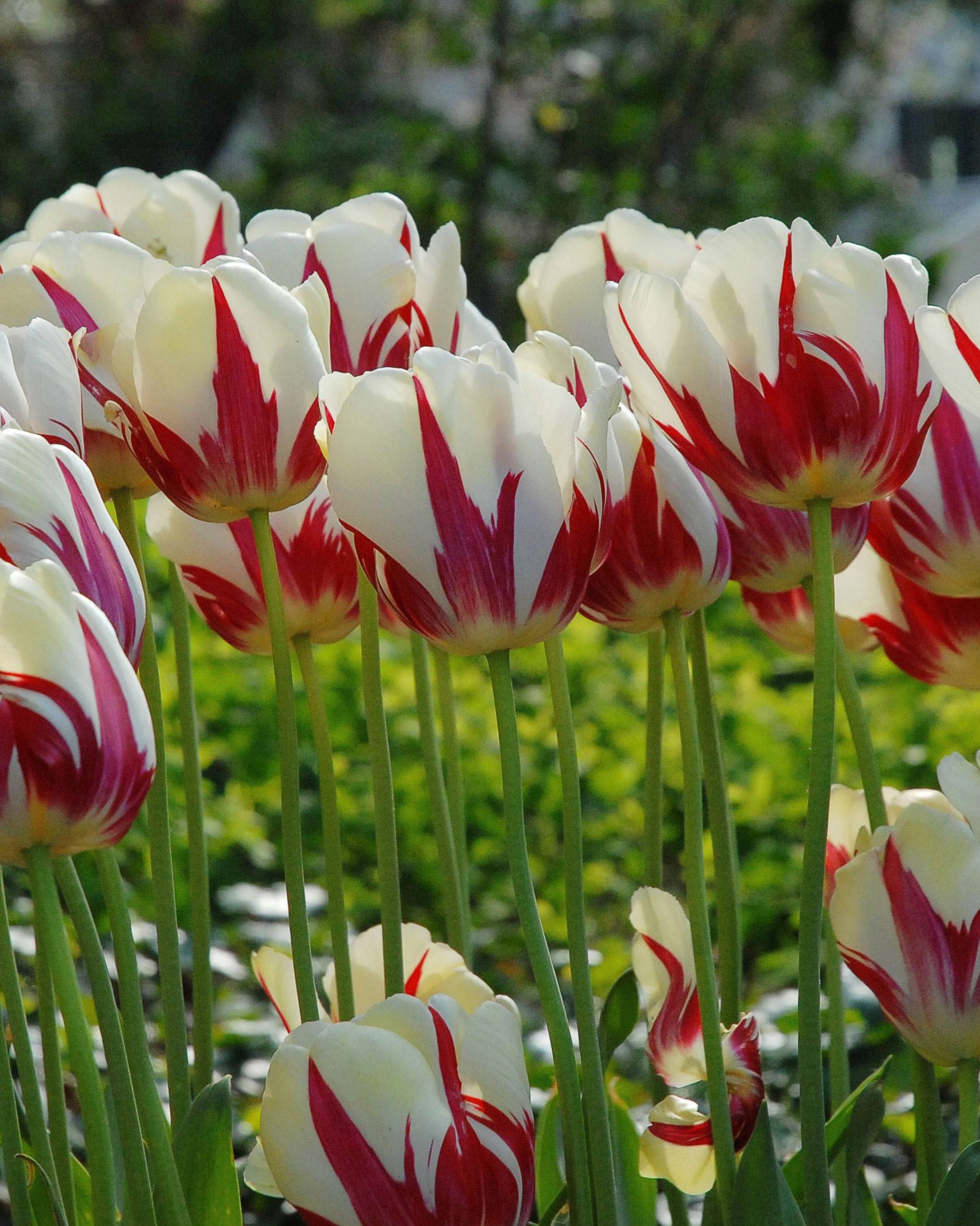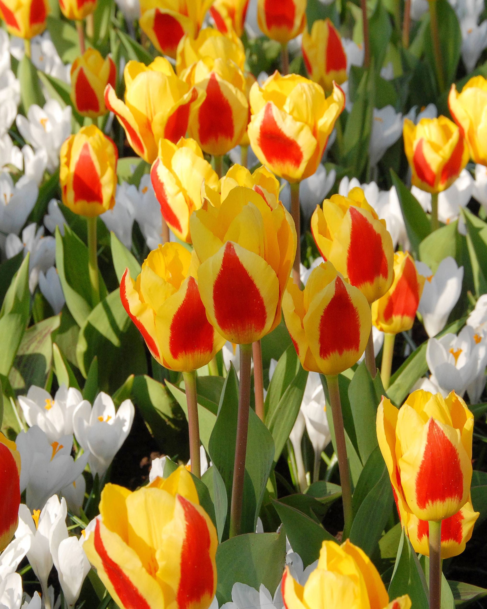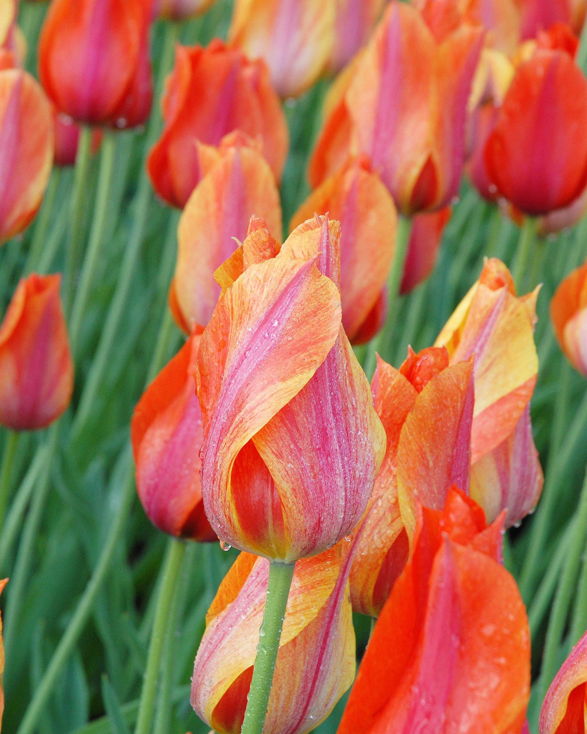 Use the startling flower colour of tulips to create a dramatic spectacle at the start of spring. Wide drifts of colour through your garden borders will lift your spirits and attract a lot of attention. As the season develops tulips of many shapes and sizes can be used to create bold, harmonious and certainly sophisticated combinations with the other plants growing in your garden. From the small-growing wild species to the colourful mid-season varieties and those that grow very tall and flower late, there are endless possibilities here to be explored by the adventurous gardener.