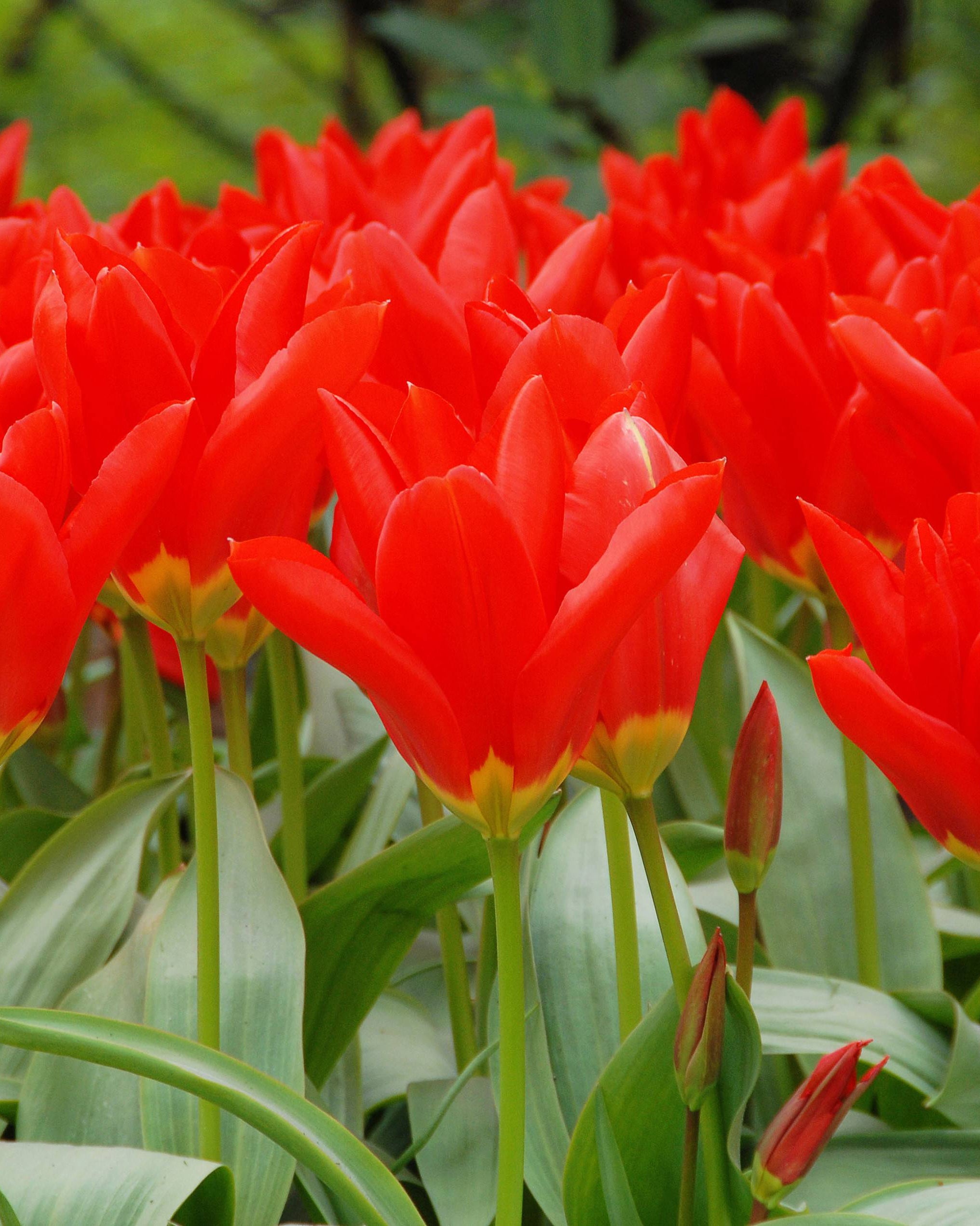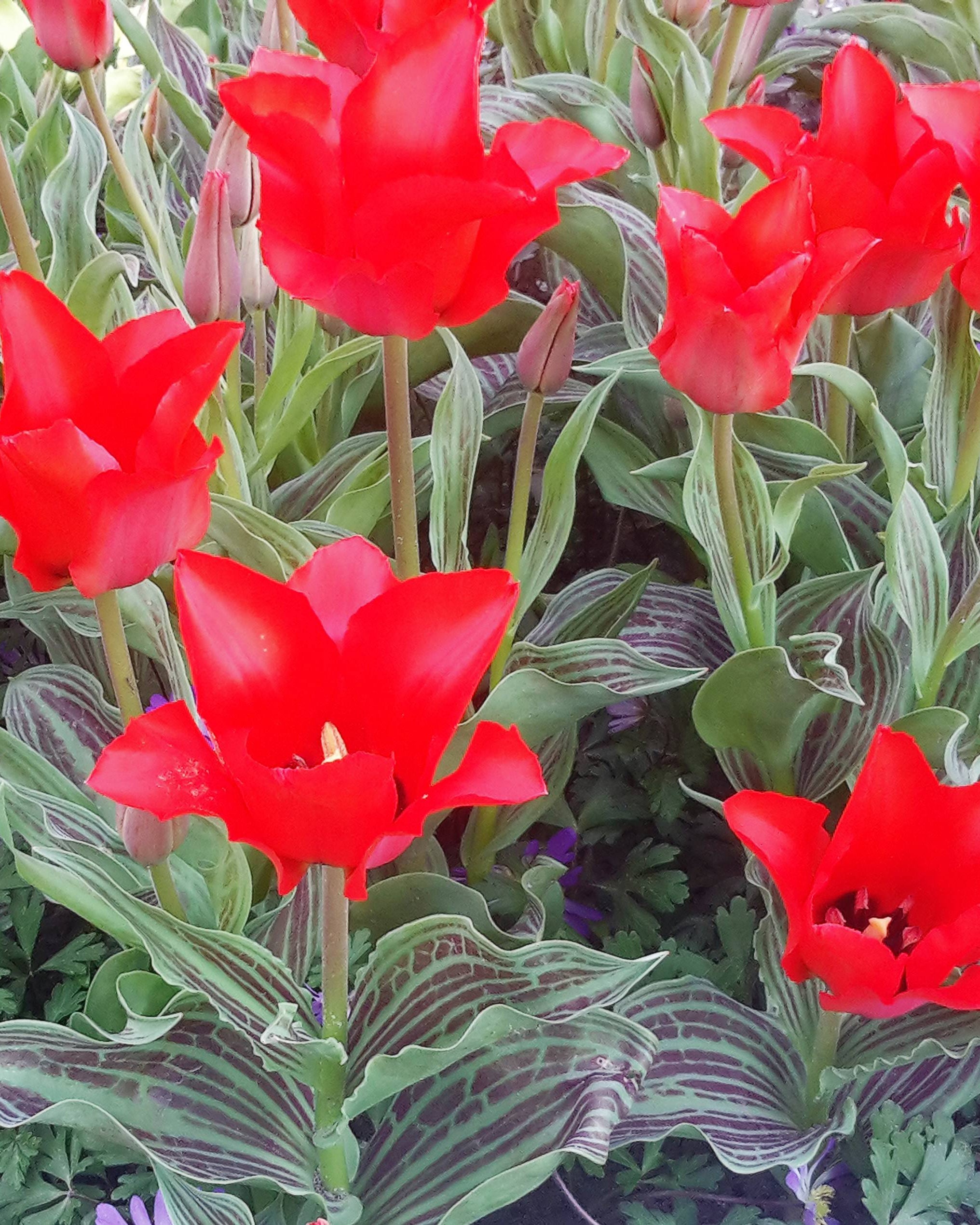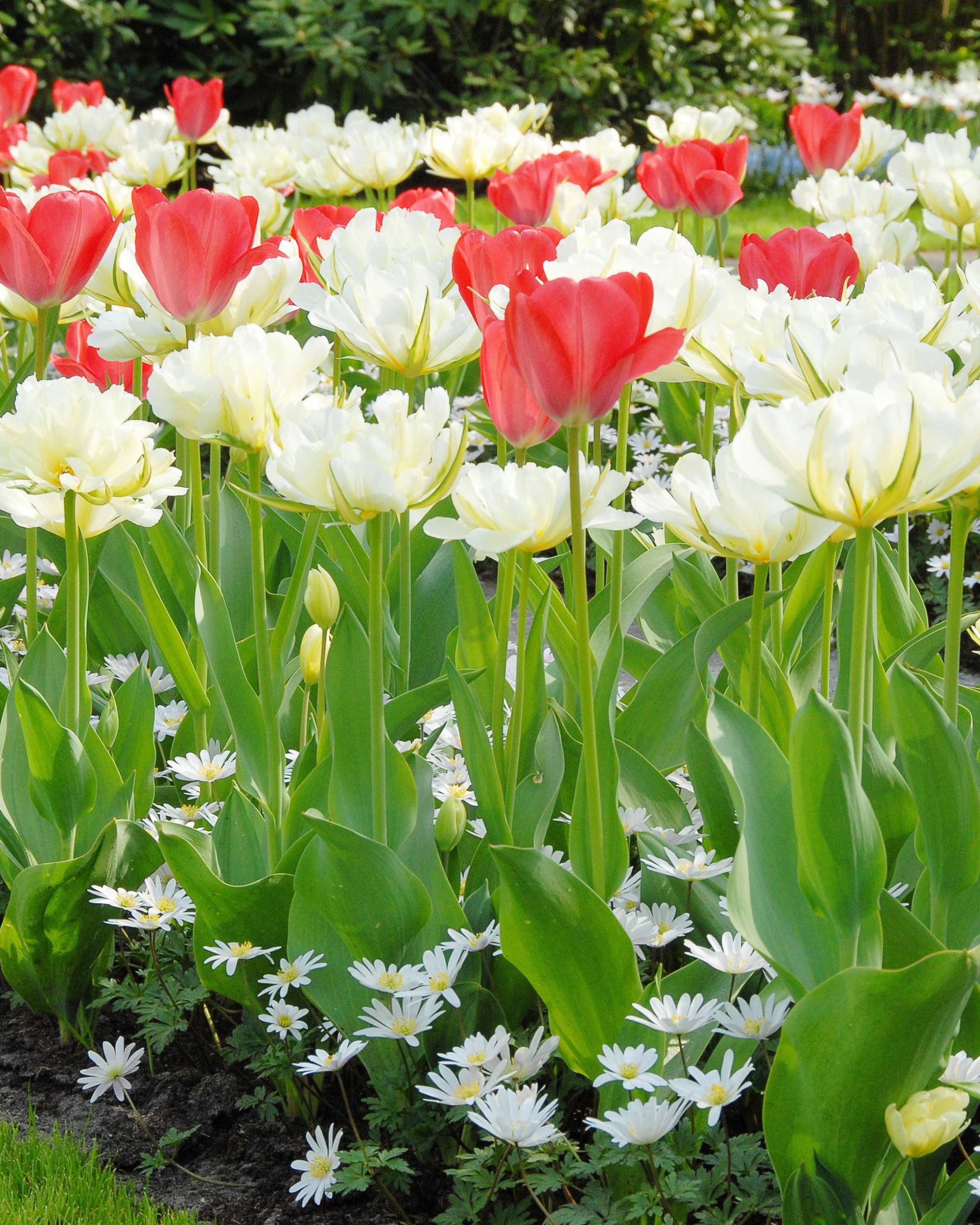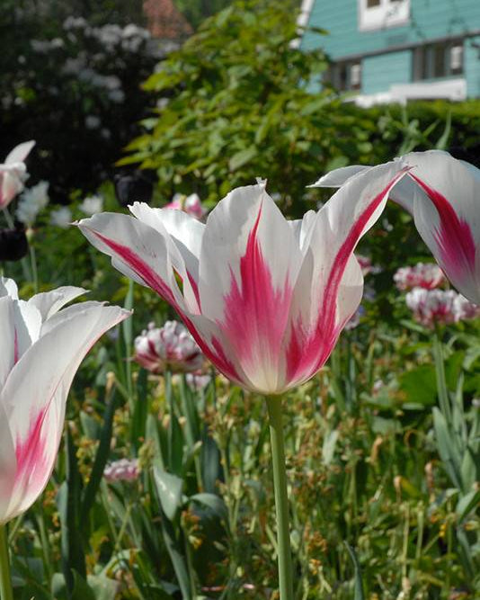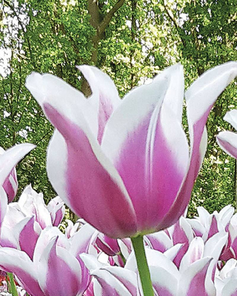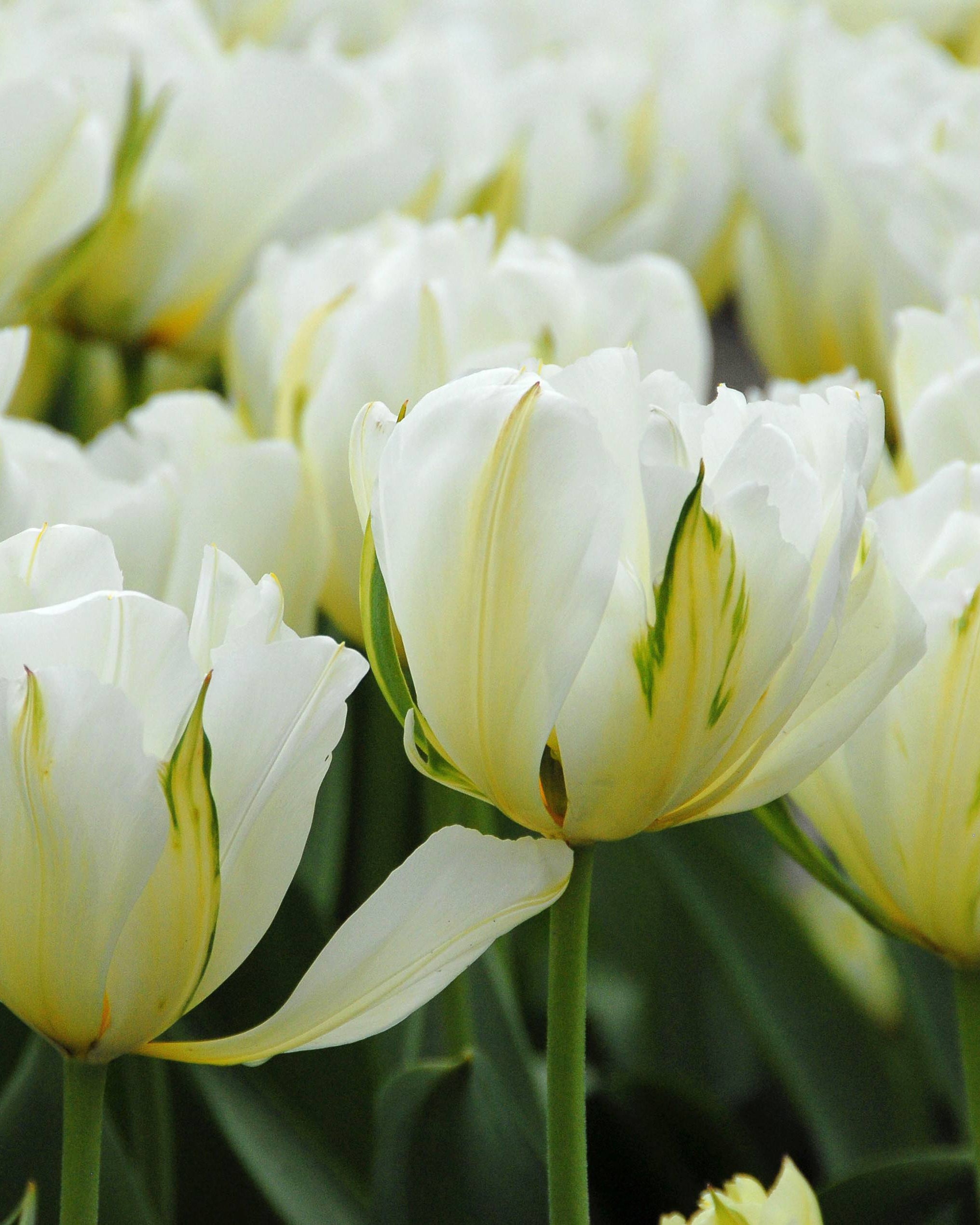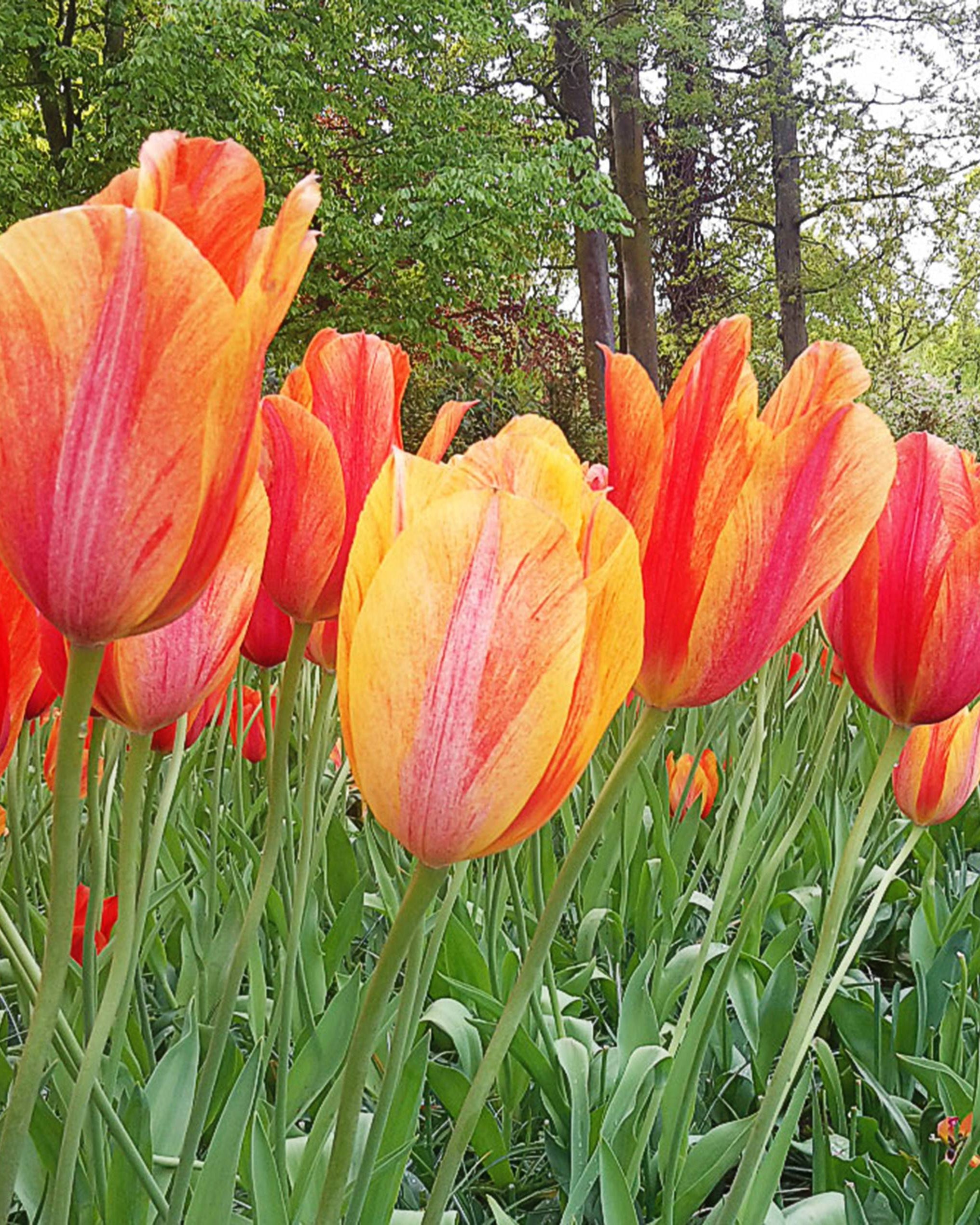 Use the startling flower colour of tulips to create a dramatic spectacle at the start of spring. Wide drifts of colour through your garden borders will lift your spirits and attract a lot of attention. As the season develops tulips of many shapes and sizes can be used to create bold, harmonious and certainly sophisticated combinations with the other plants growing in your garden. From the small-growing wild species to the colourful mid-season varieties and those that grow very tall and flower late, there are endless possibilities here to be explored by the adventurous gardener.
