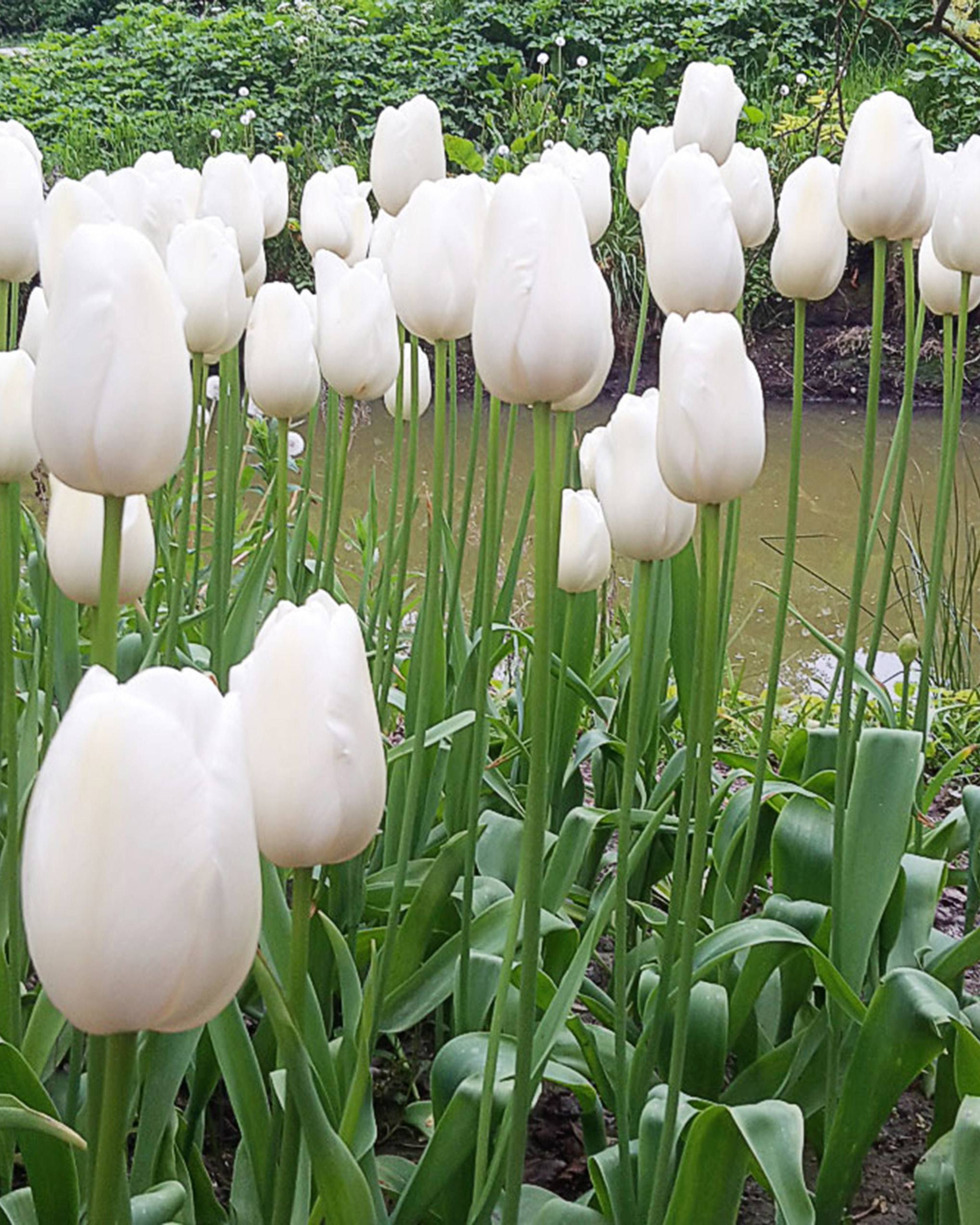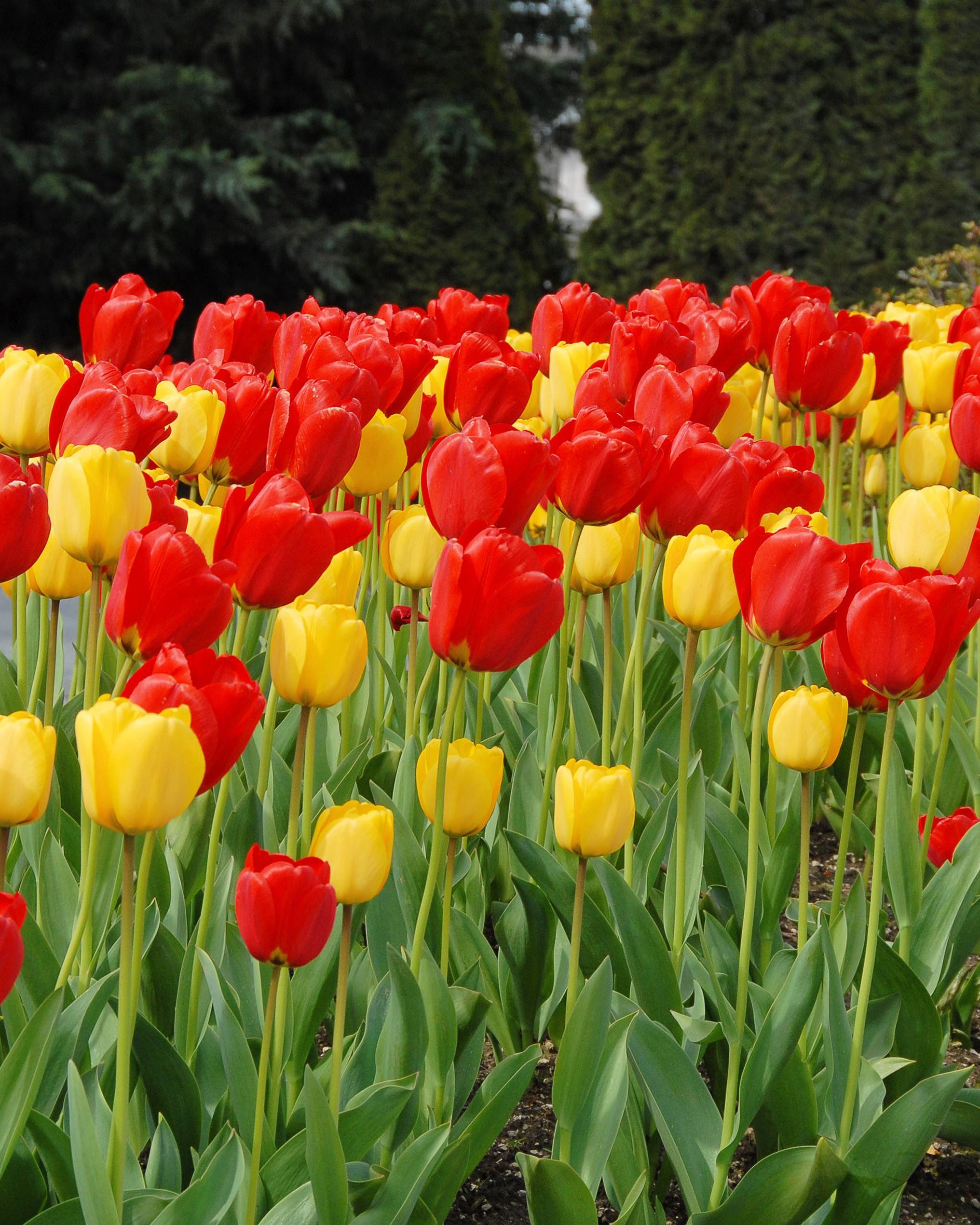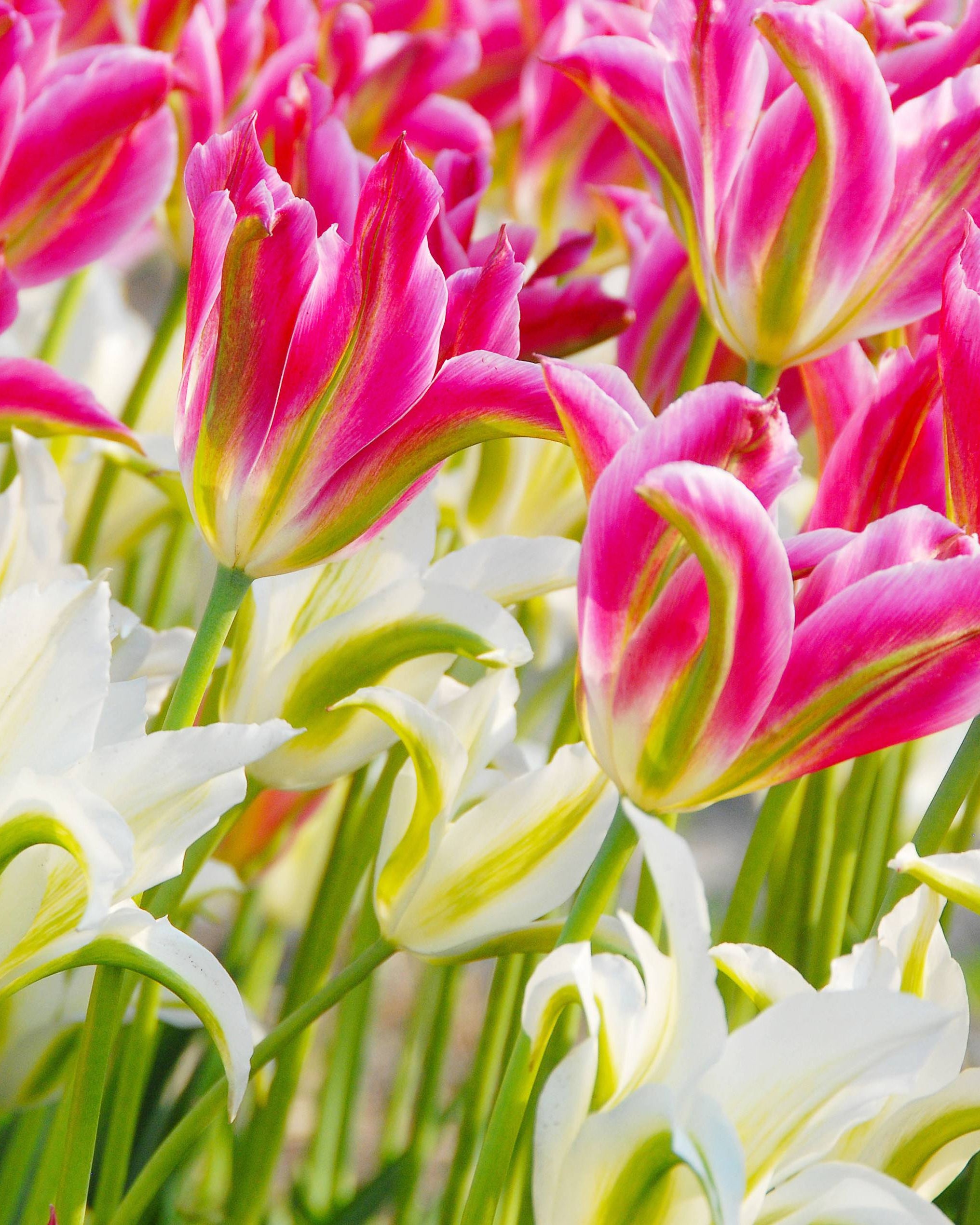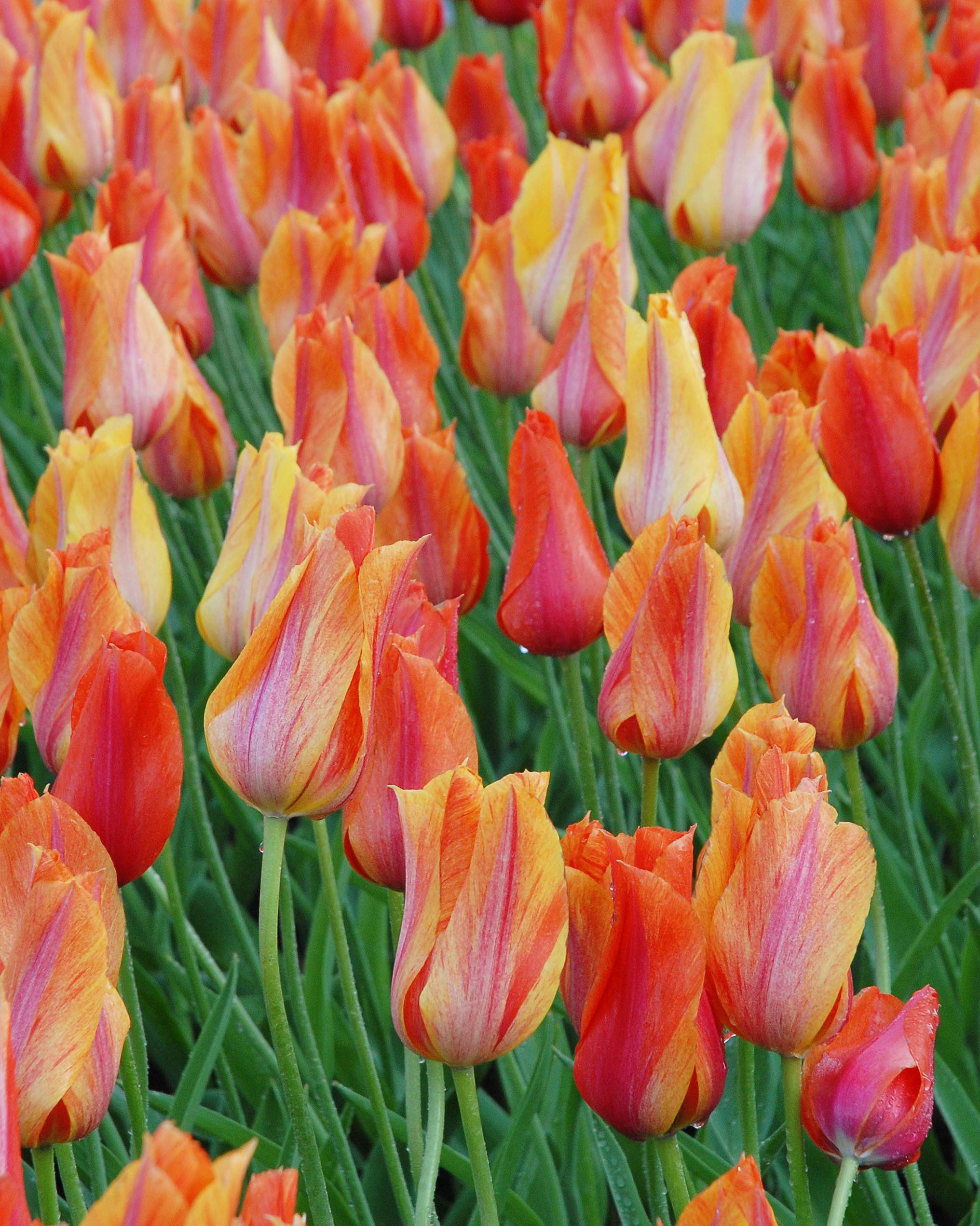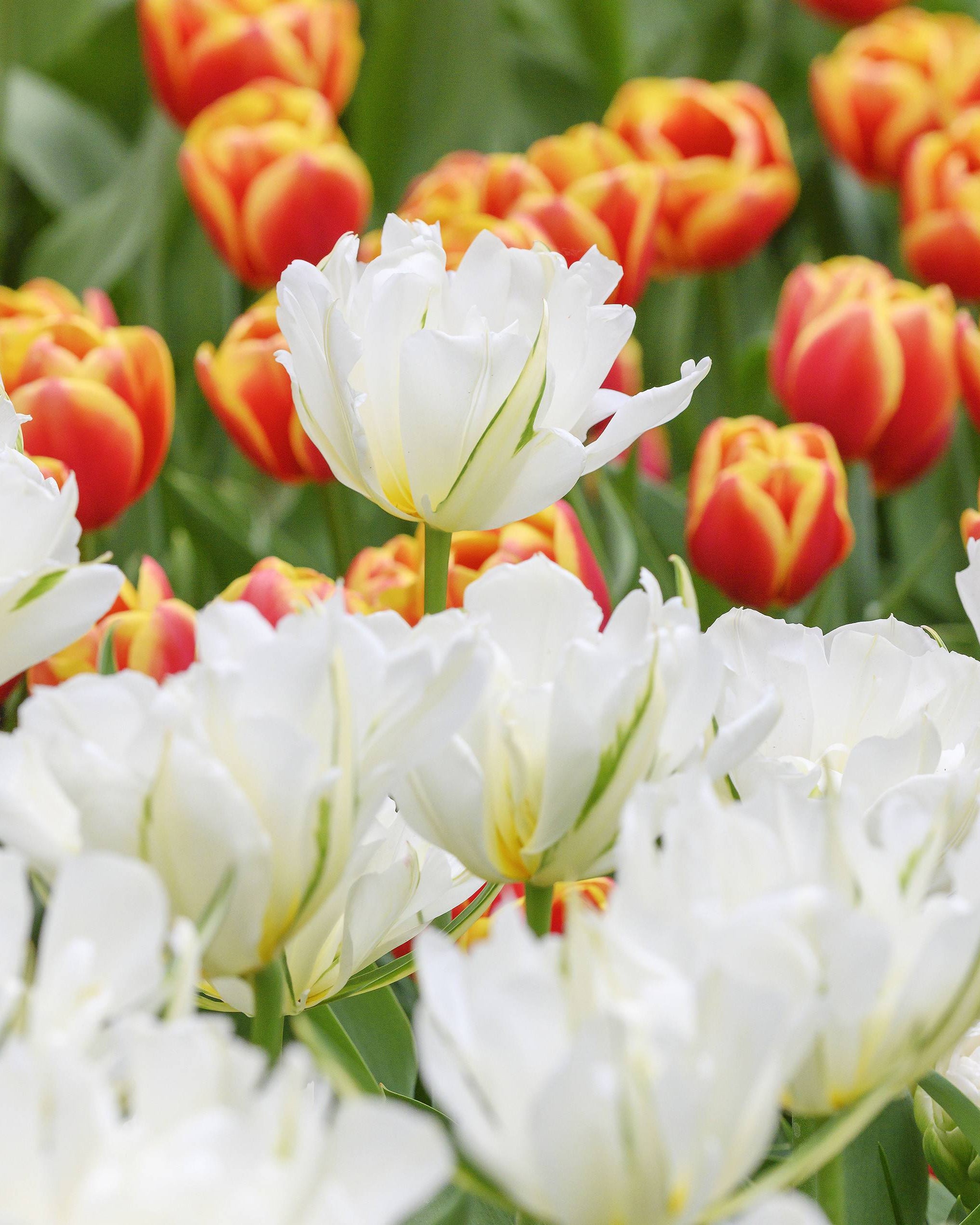 Use the startling flower colour of tulips to create a dramatic spectacle at the start of spring. Wide drifts of colour through your garden borders will lift your spirits and attract a lot of attention. As the season develops tulips of many shapes and sizes can be used to create bold, harmonious and certainly sophisticated combinations with the other plants growing in your garden. From the small-growing wild species to the colourful mid-season varieties and those that grow very tall and flower late, there are endless possibilities here to be explored by the adventurous gardener.