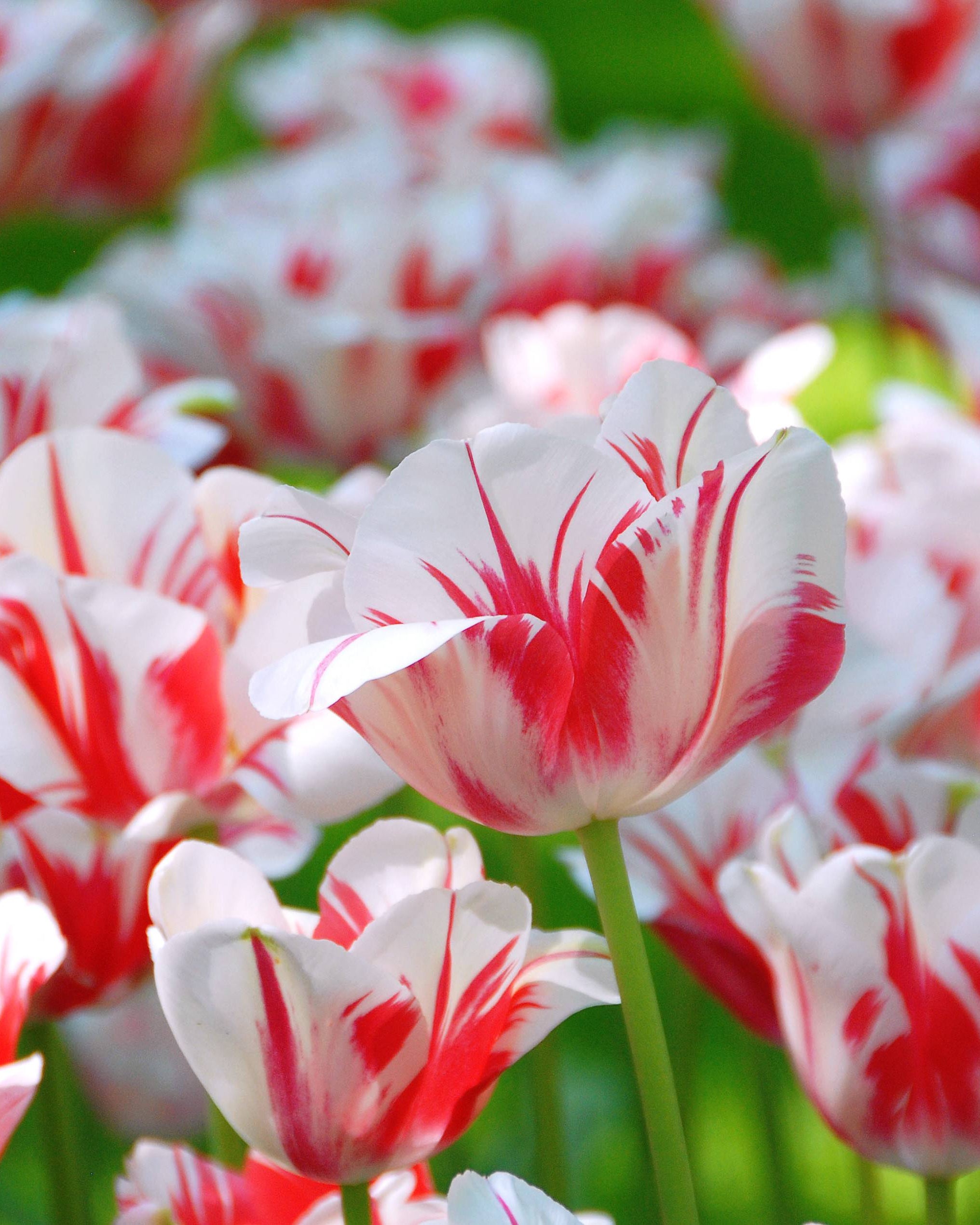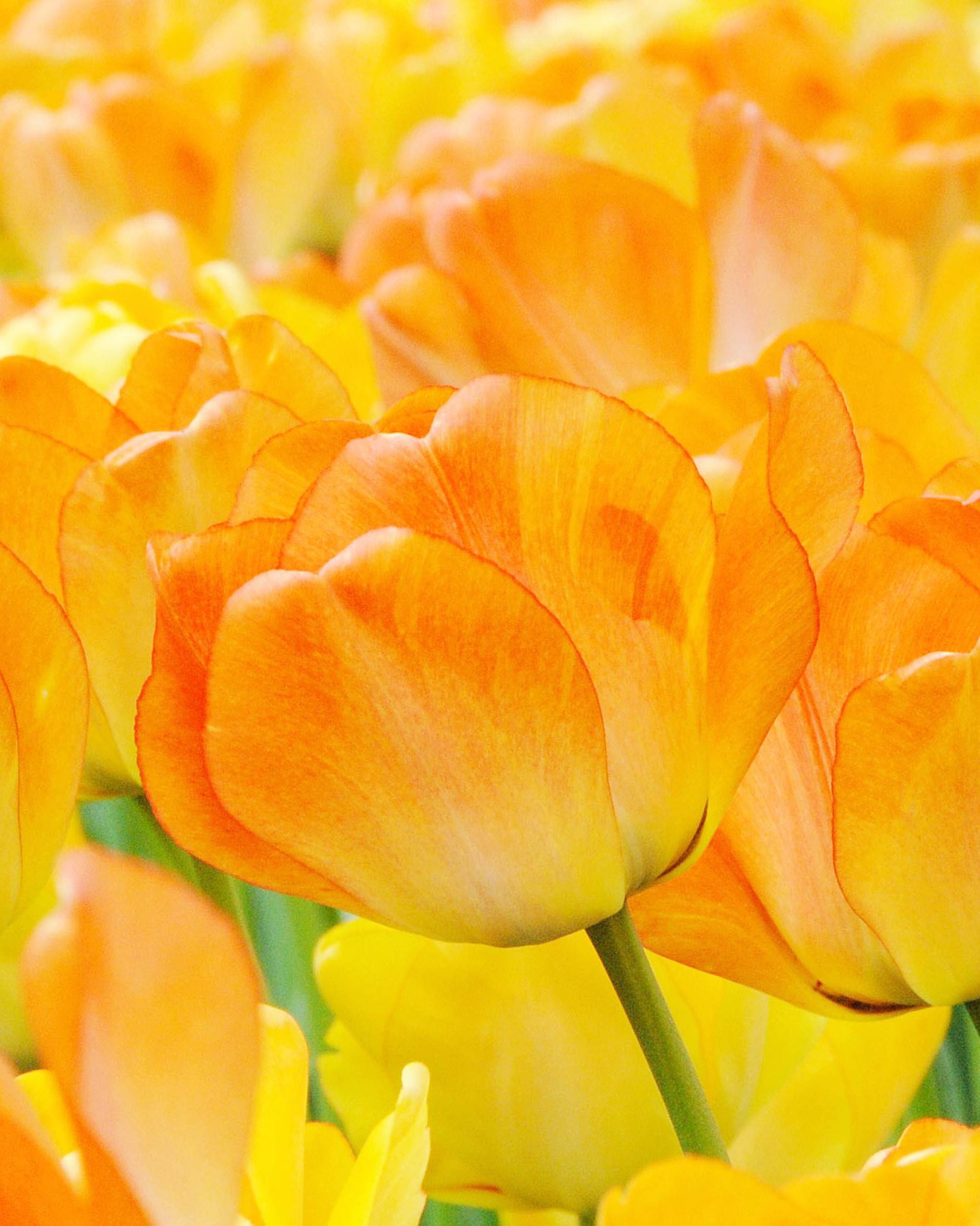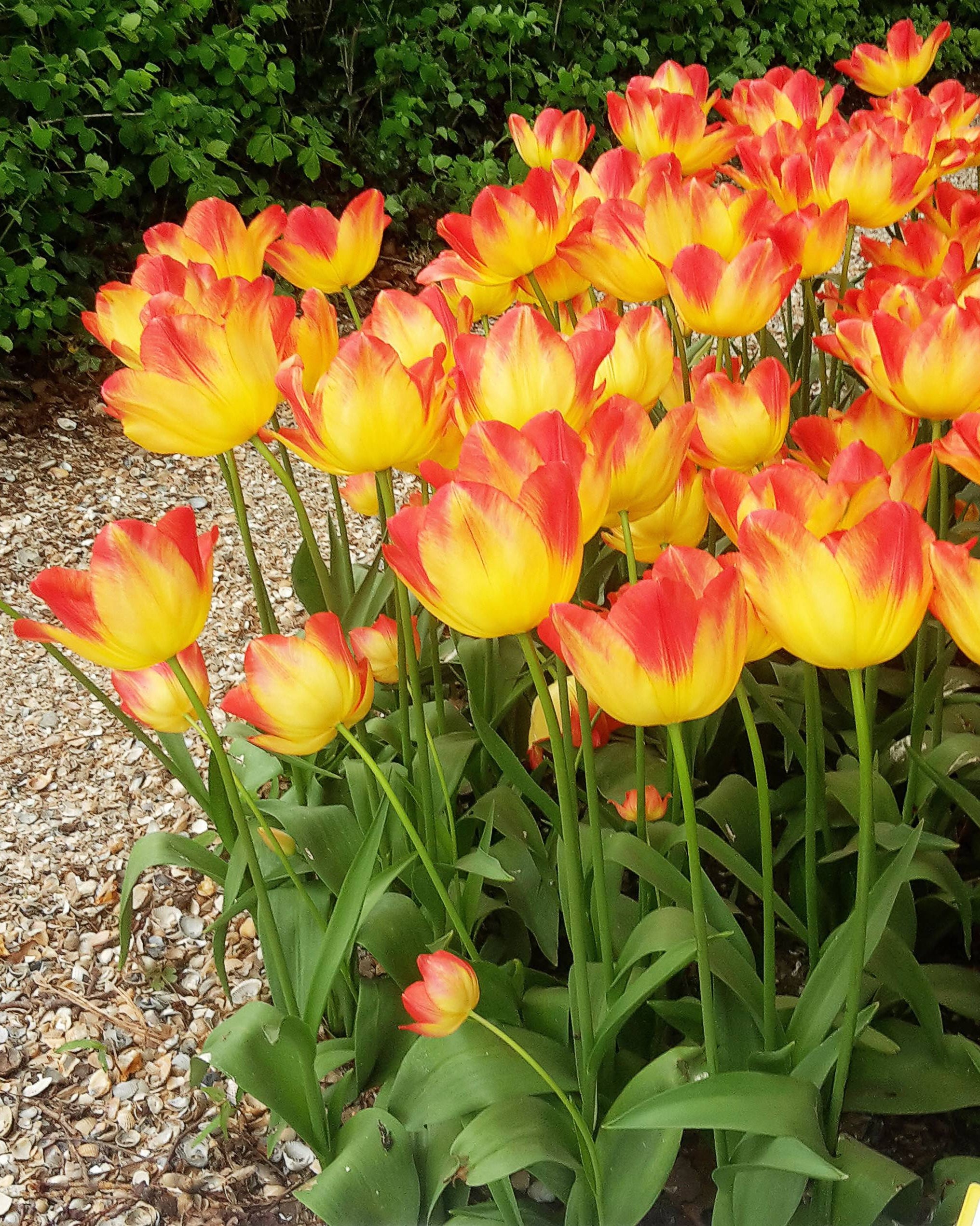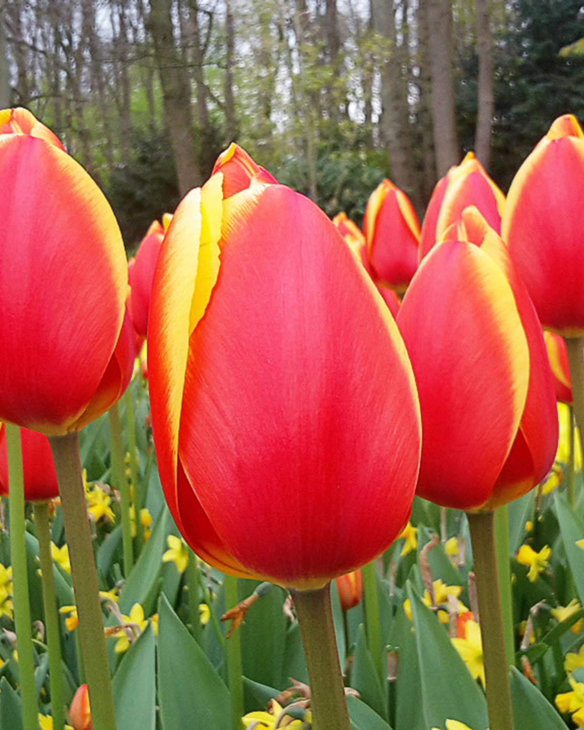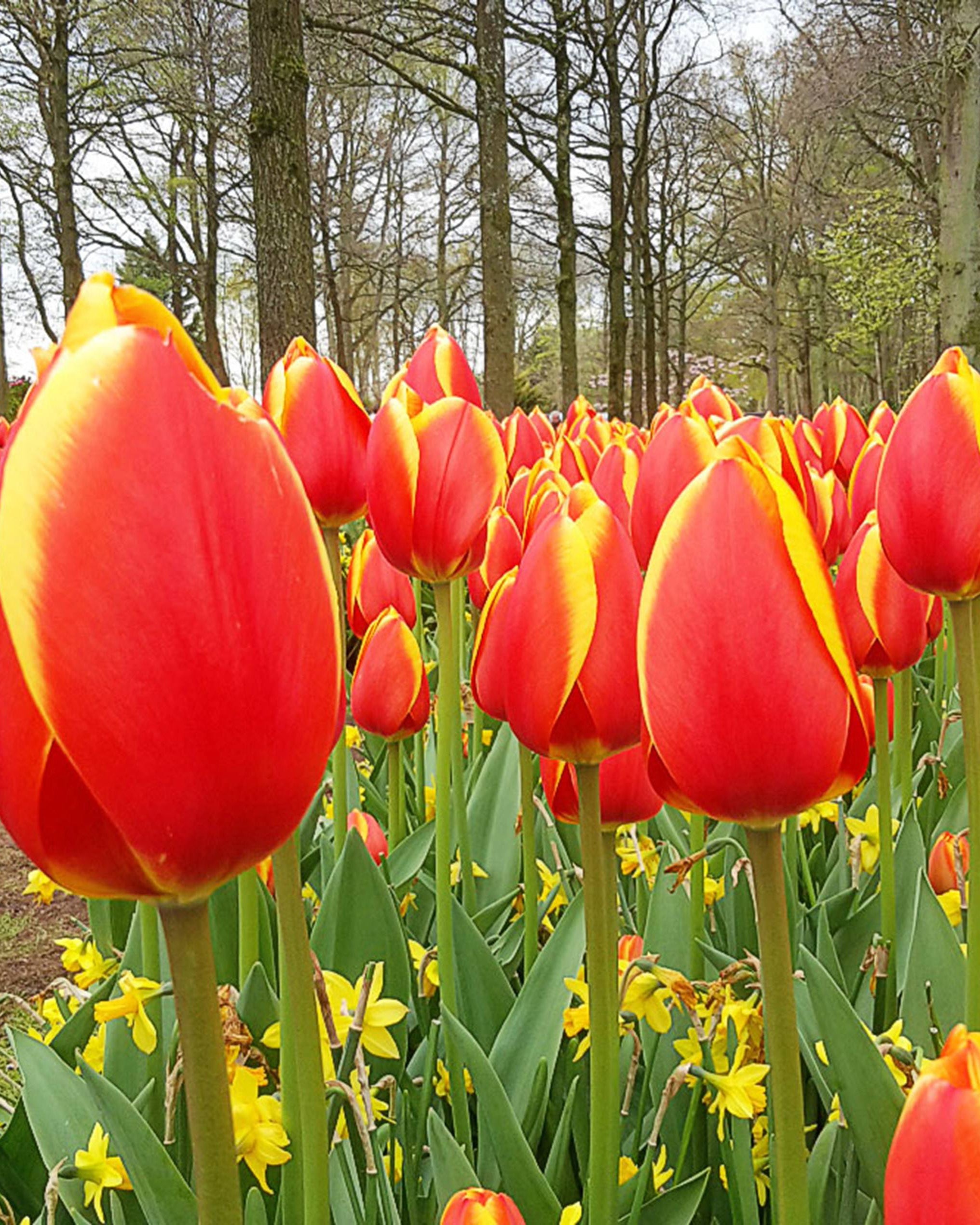 Use the startling flower colour of tulips to create a dramatic spectacle at the start of spring. Wide drifts of colour through your garden borders will lift your spirits and attract a lot of attention. As the season develops tulips of many shapes and sizes can be used to create bold, harmonious and certainly sophisticated combinations with the other plants growing in your garden. From the small-growing wild species to the colourful mid-season varieties and those that grow very tall and flower late, there are endless possibilities here to be explored by the adventurous gardener.