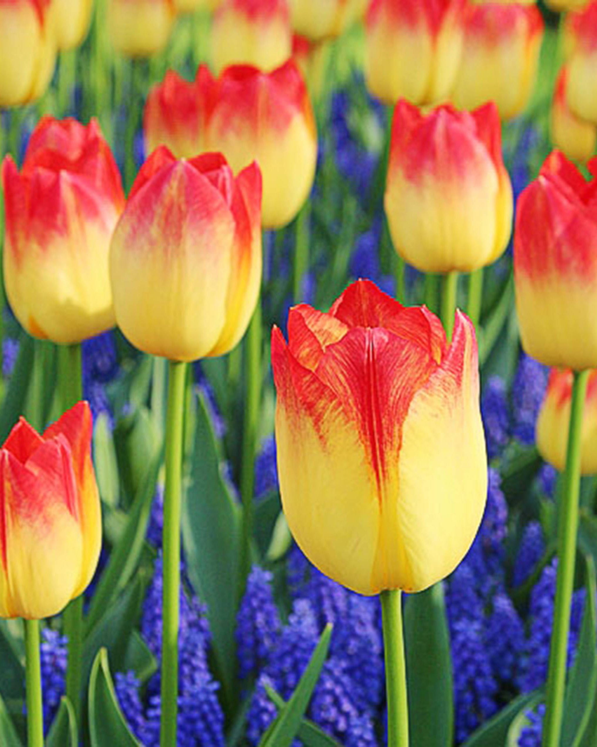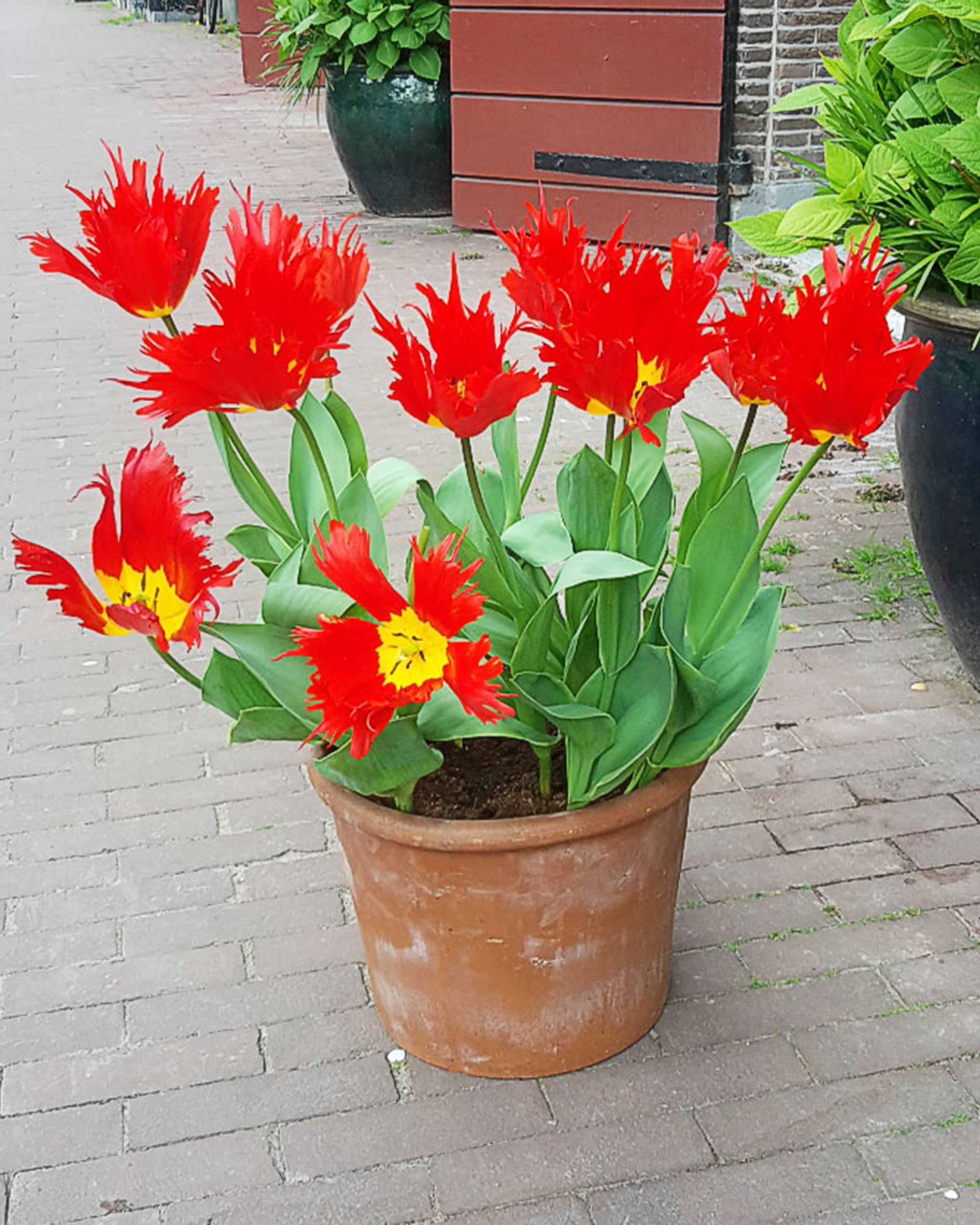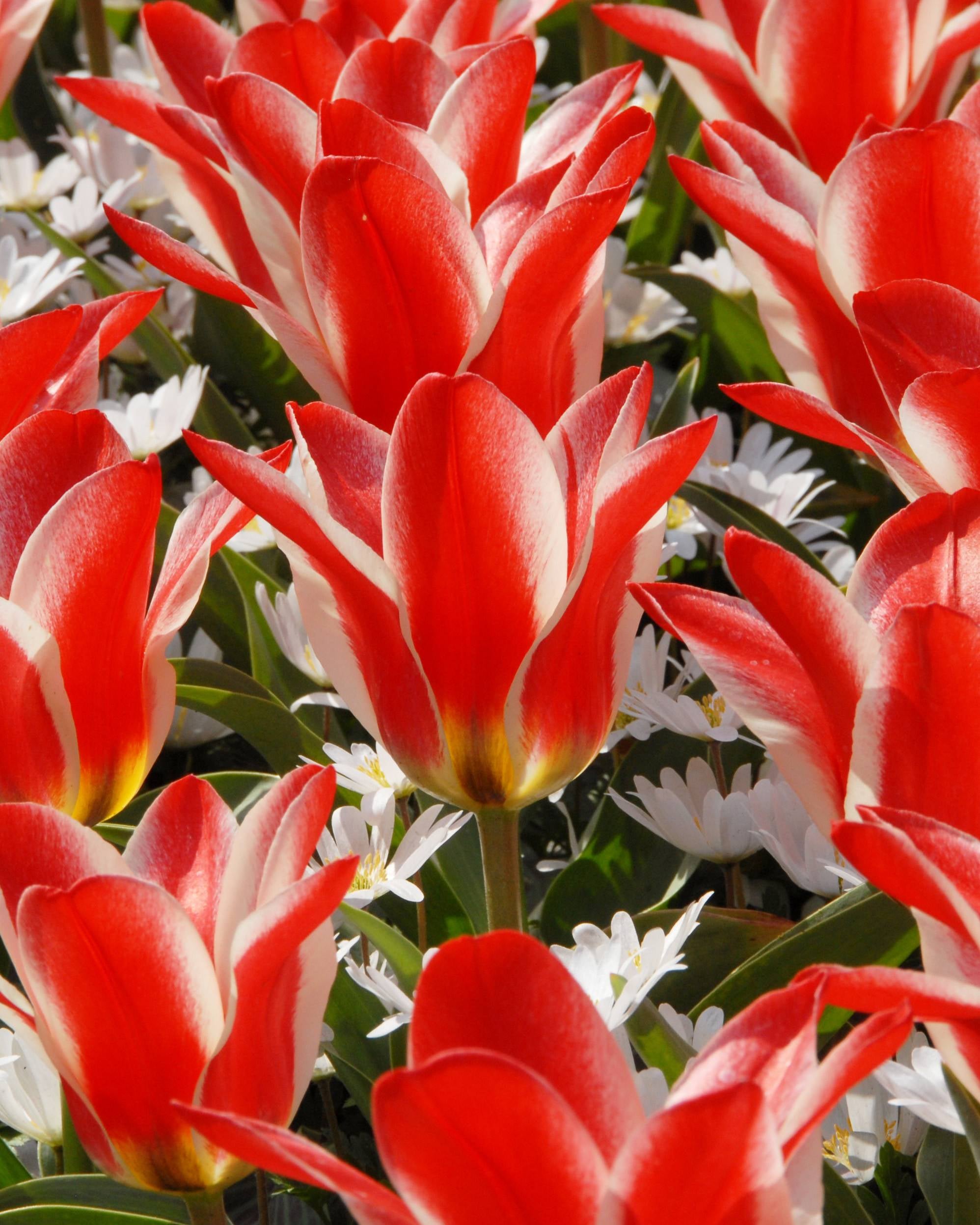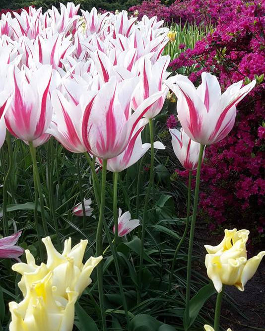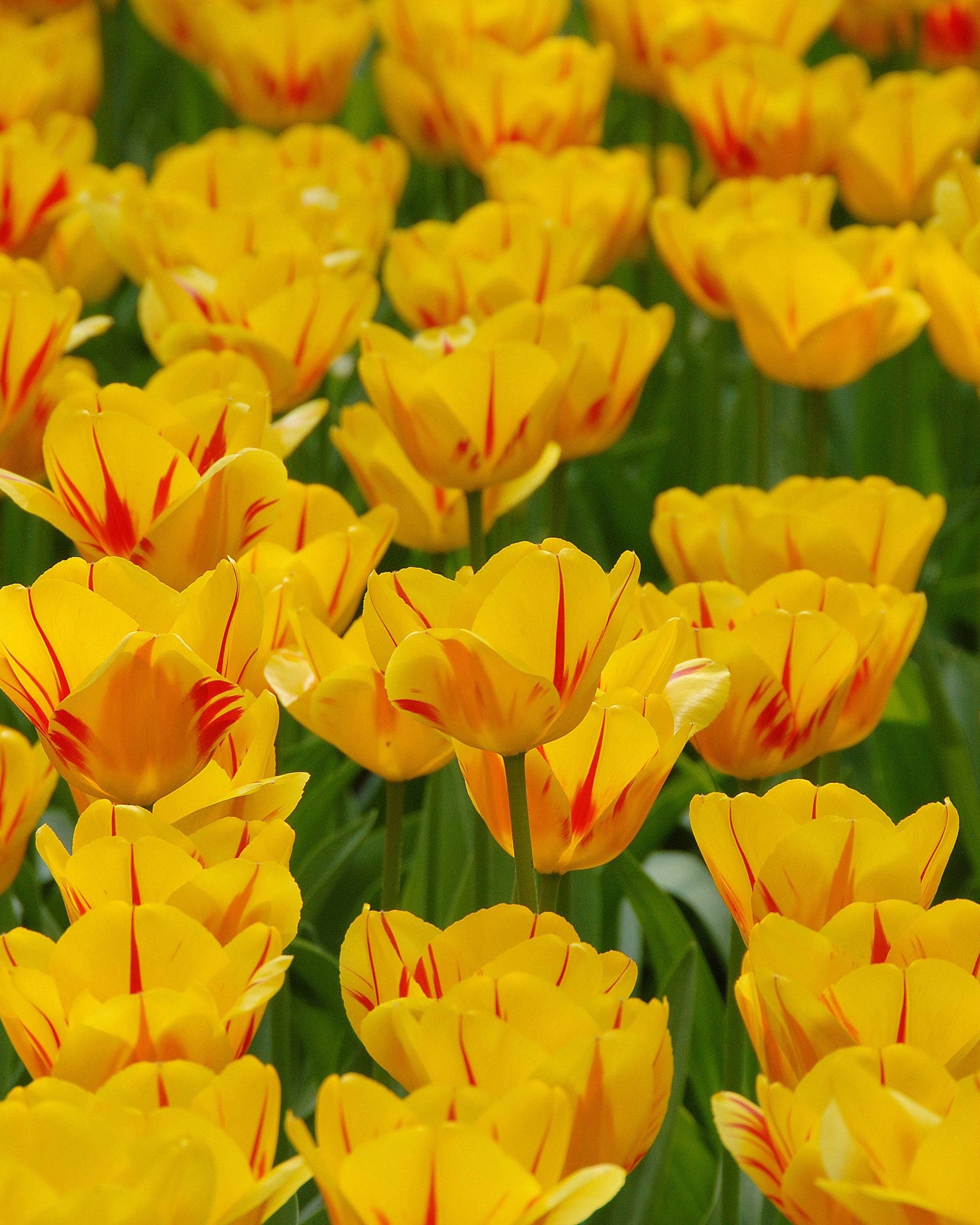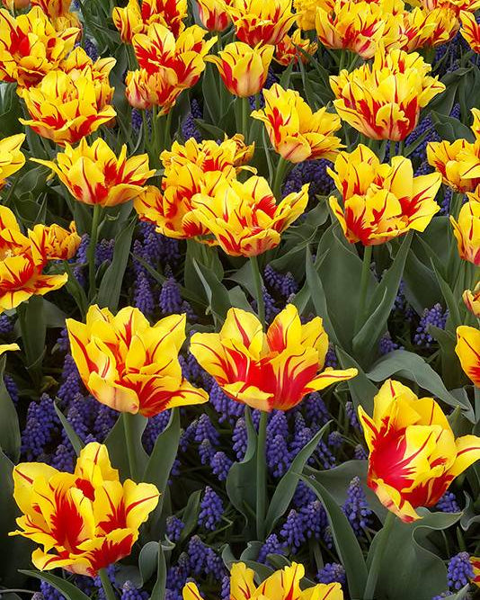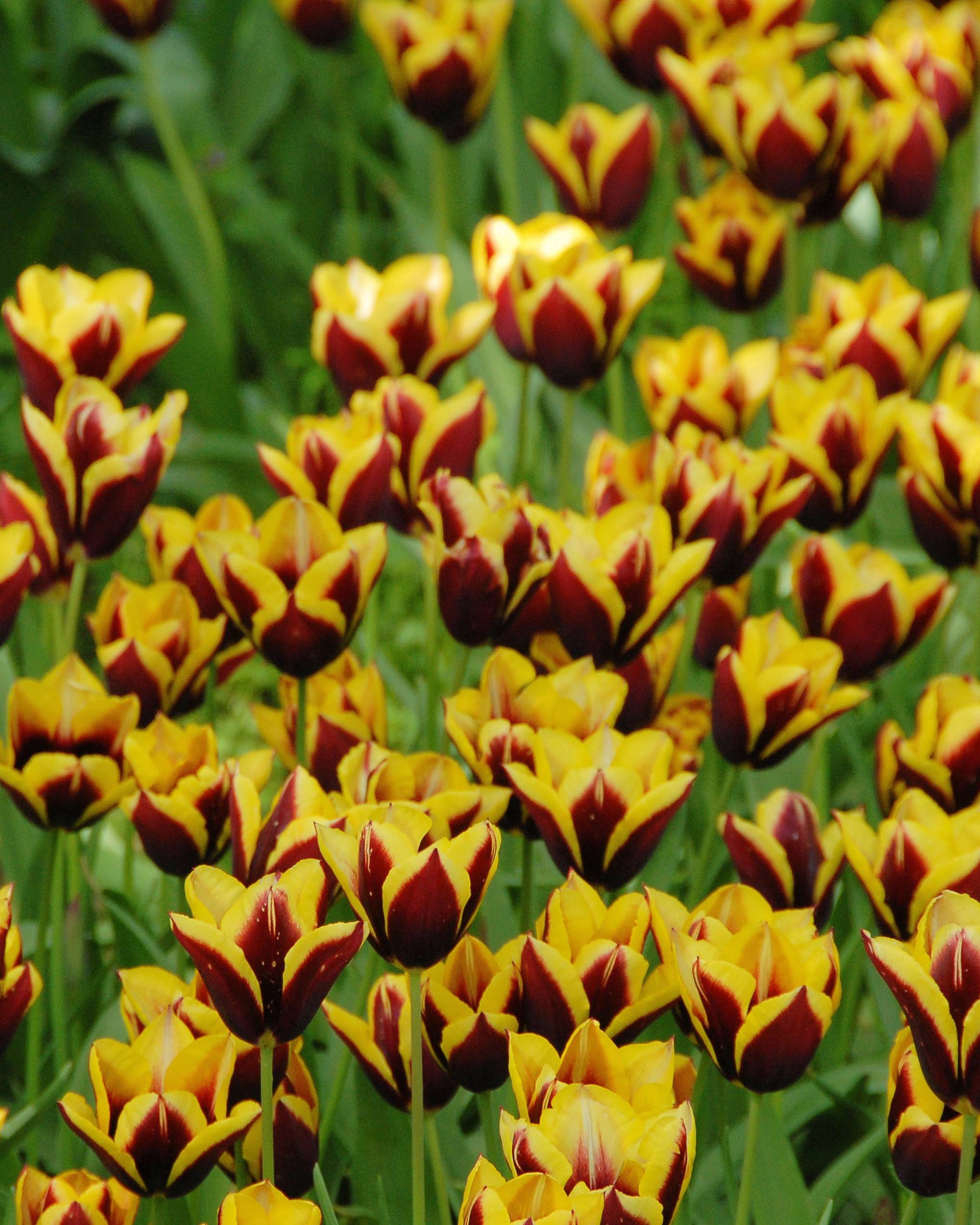 Use the startling flower colour of tulips to create a dramatic spectacle at the start of spring. Wide drifts of colour through your garden borders will lift your spirits and attract a lot of attention. As the season develops tulips of many shapes and sizes can be used to create bold, harmonious and certainly sophisticated combinations with the other plants growing in your garden. From the small-growing wild species to the colourful mid-season varieties and those that grow very tall and flower late, there are endless possibilities here to be explored by the adventurous gardener.