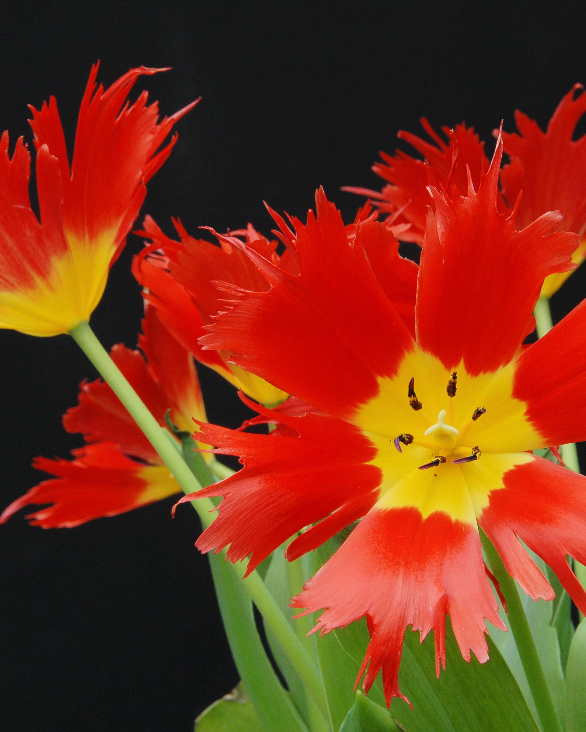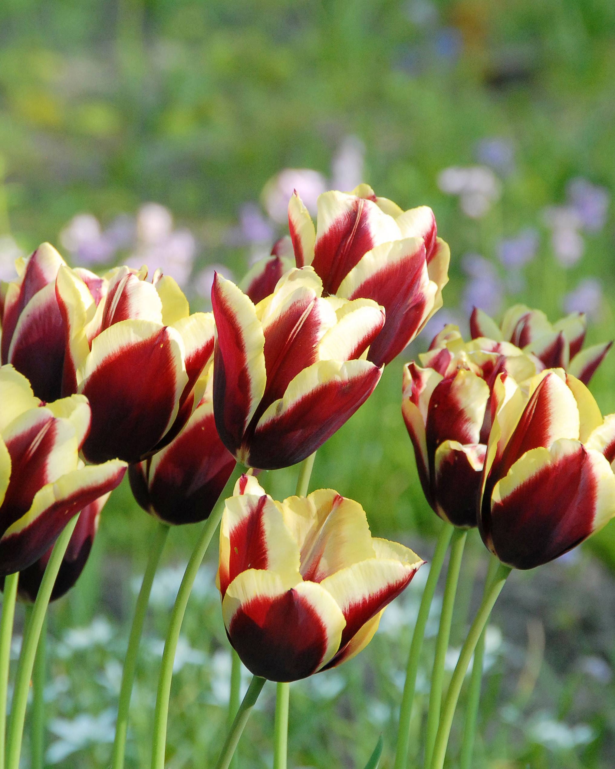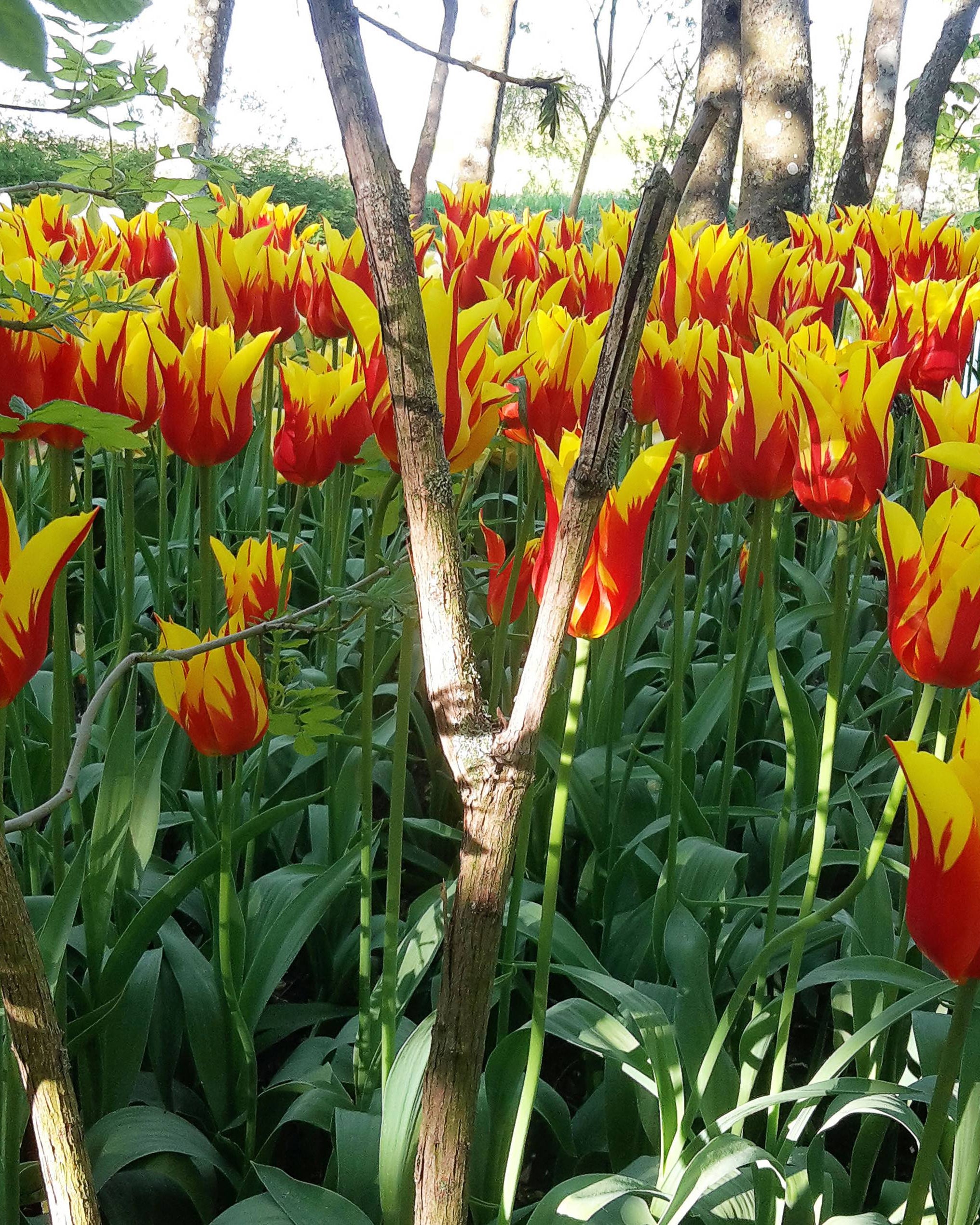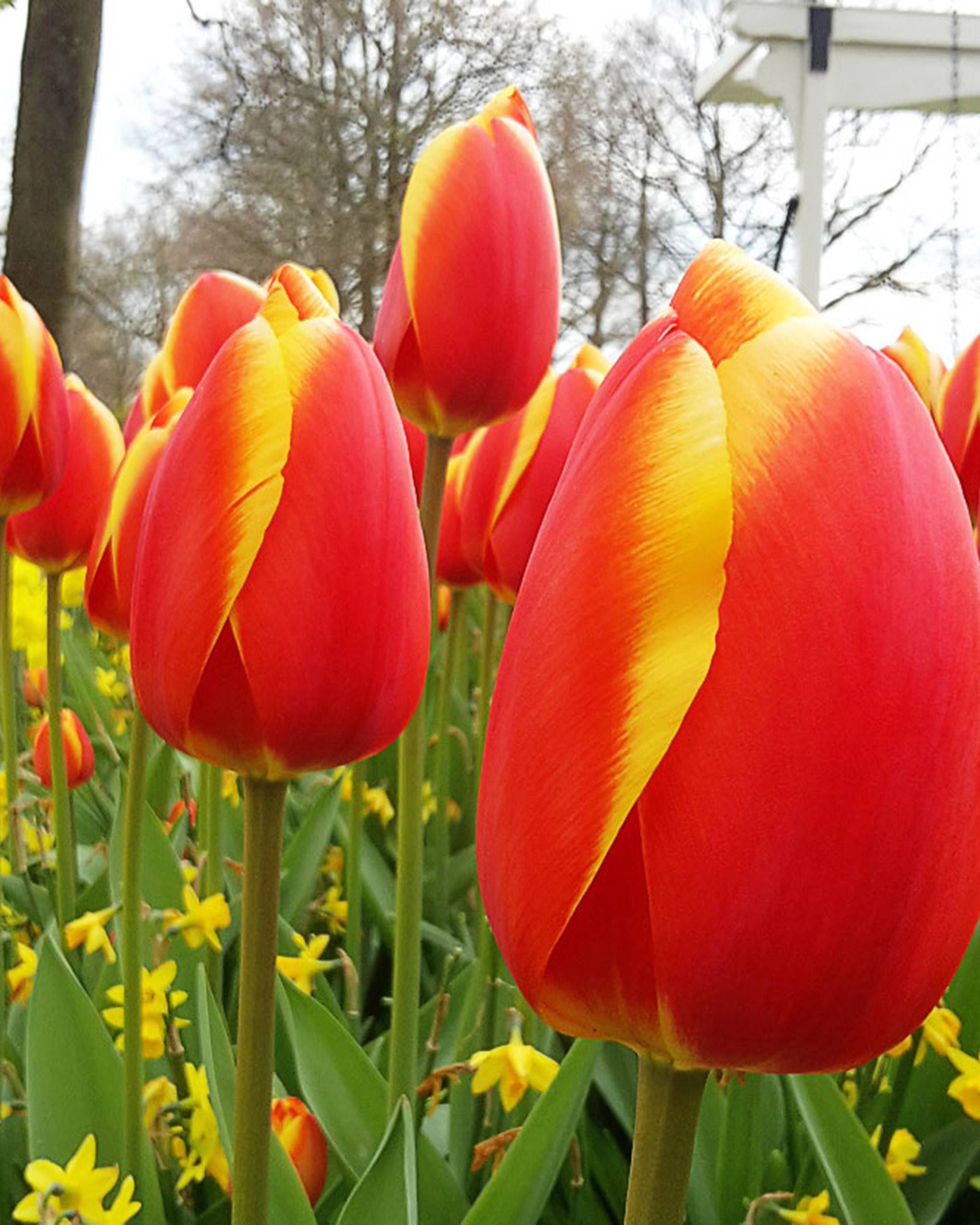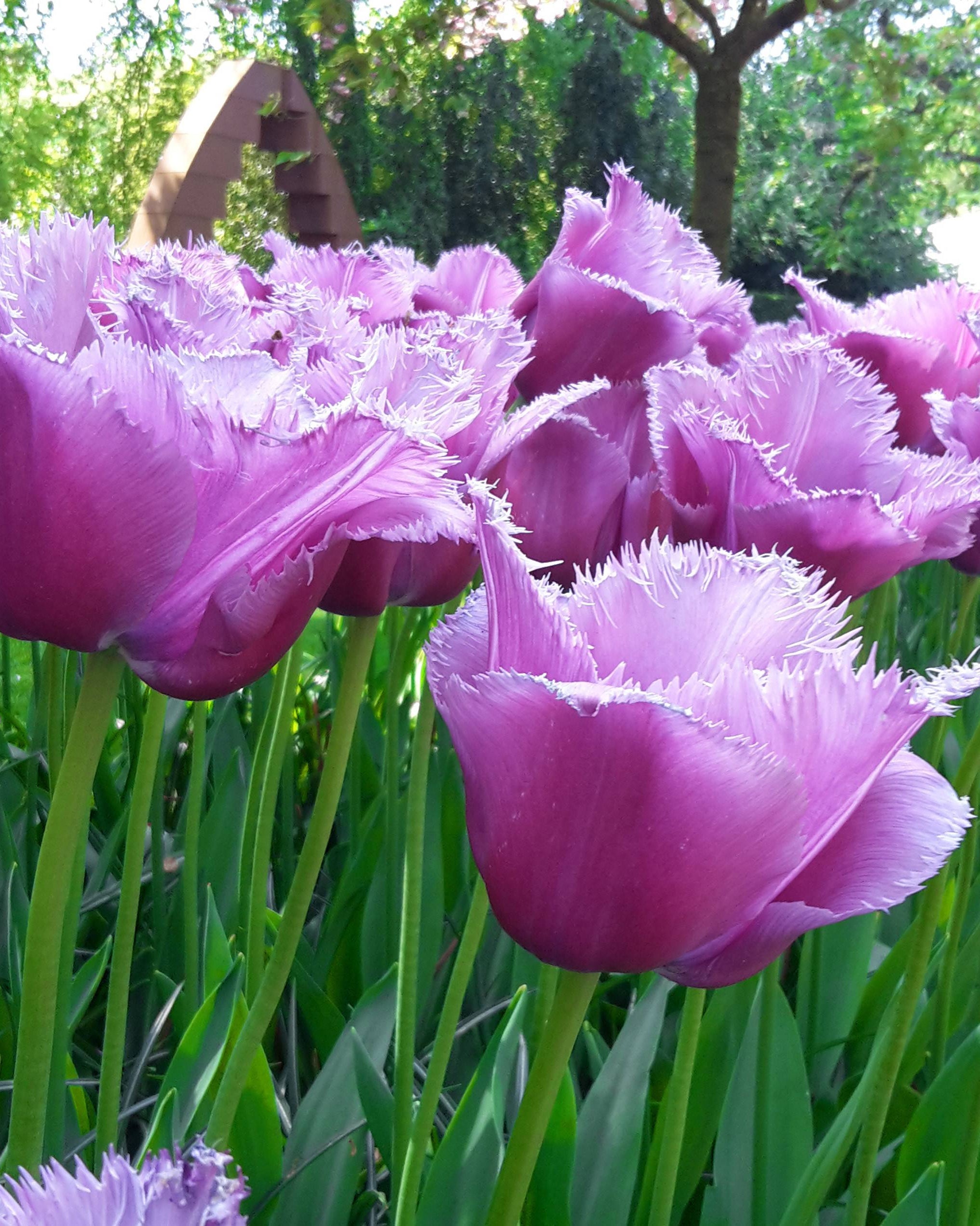Use the startling flower colour of tulips to create a dramatic spectacle at the start of spring. Wide drifts of colour through your garden borders will lift your spirits and attract a lot of attention. As the season develops tulips of many shapes and sizes can be used to create bold, harmonious and certainly sophisticated combinations with the other plants growing in your garden. From the small-growing wild species to the colourful mid-season varieties and those that grow very tall and flower late, there are endless possibilities here to be explored by the adventurous gardener.