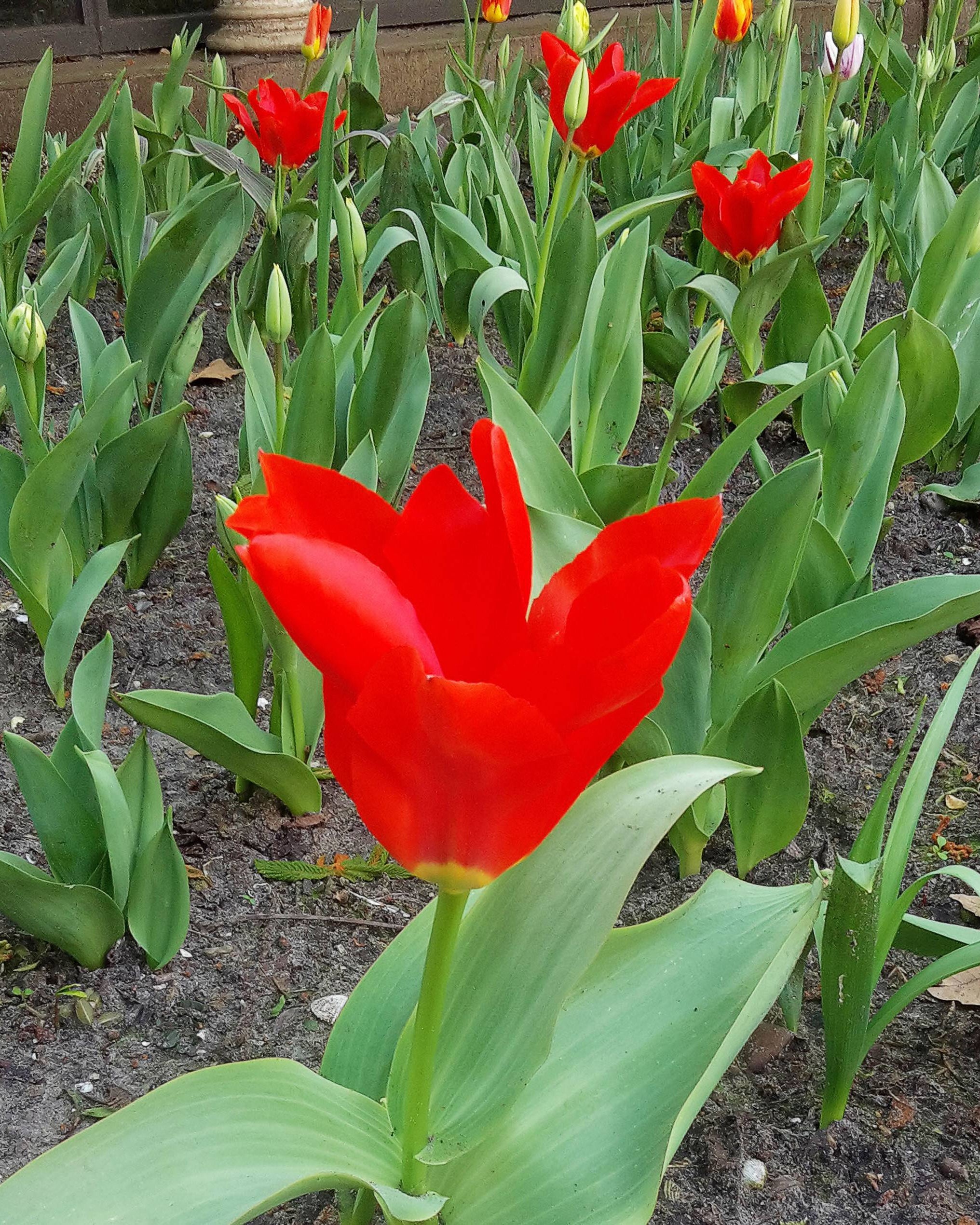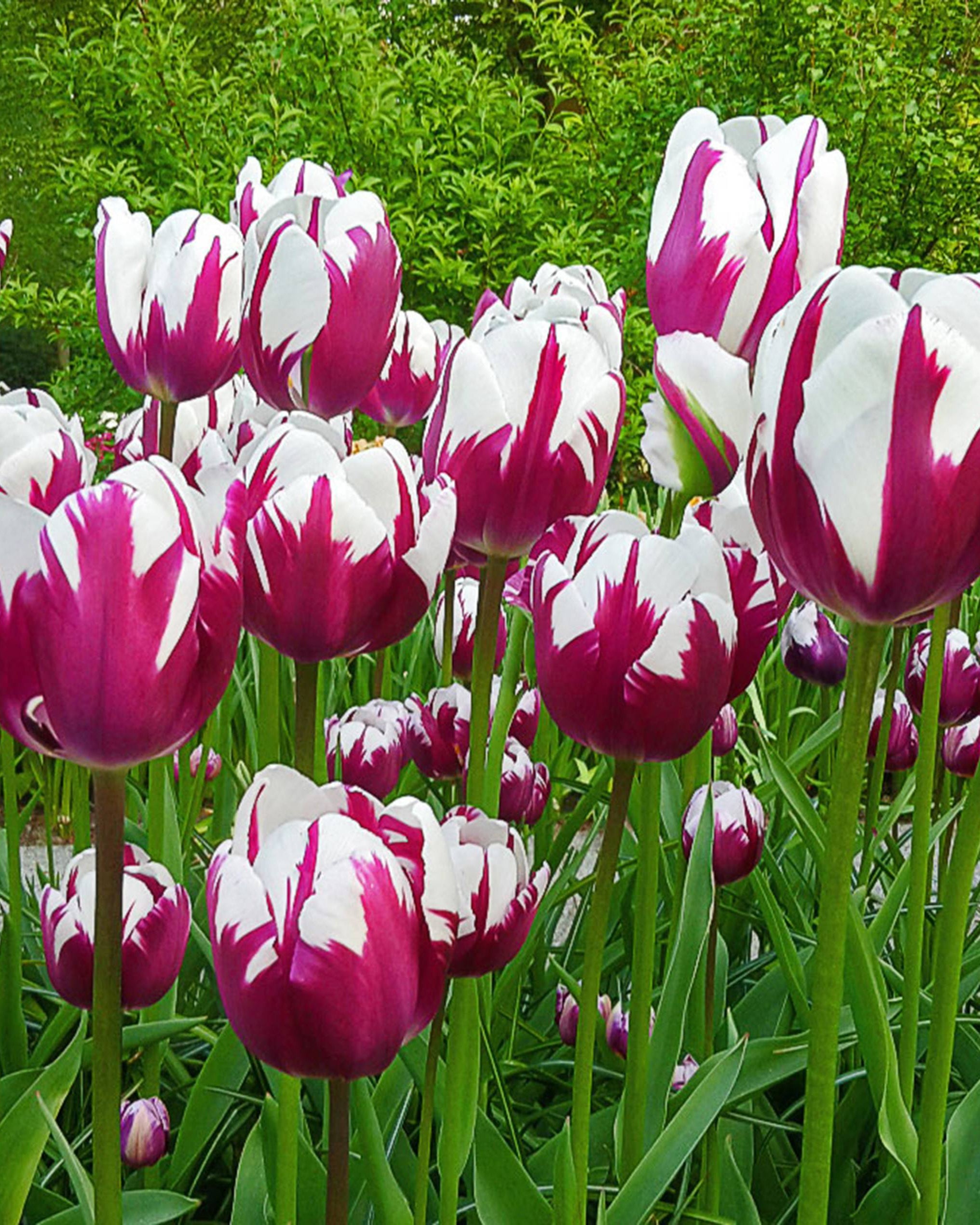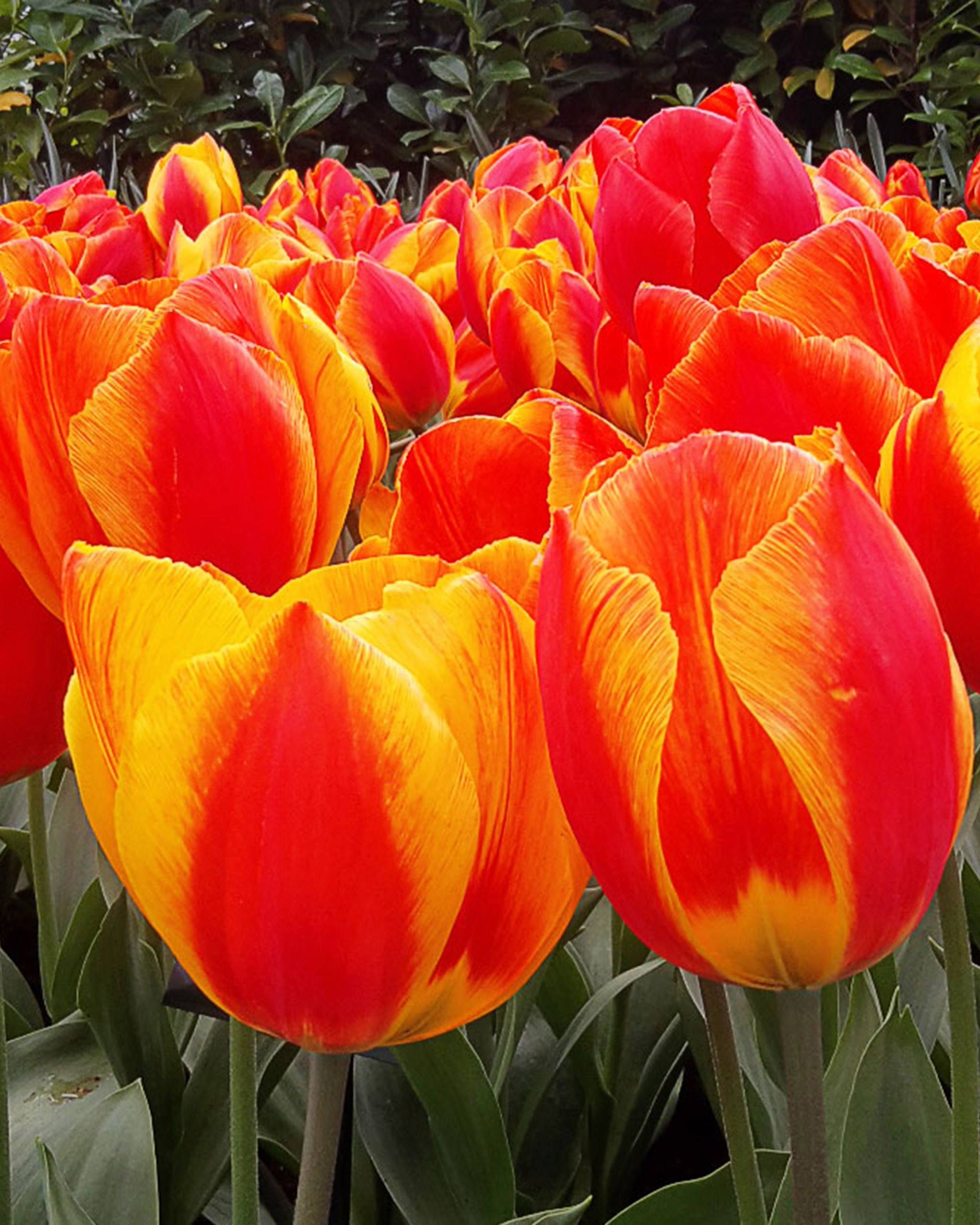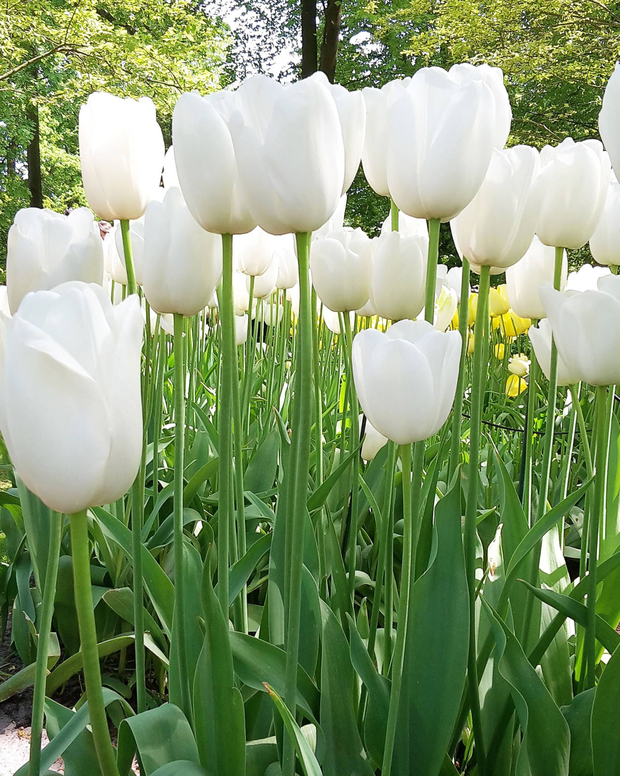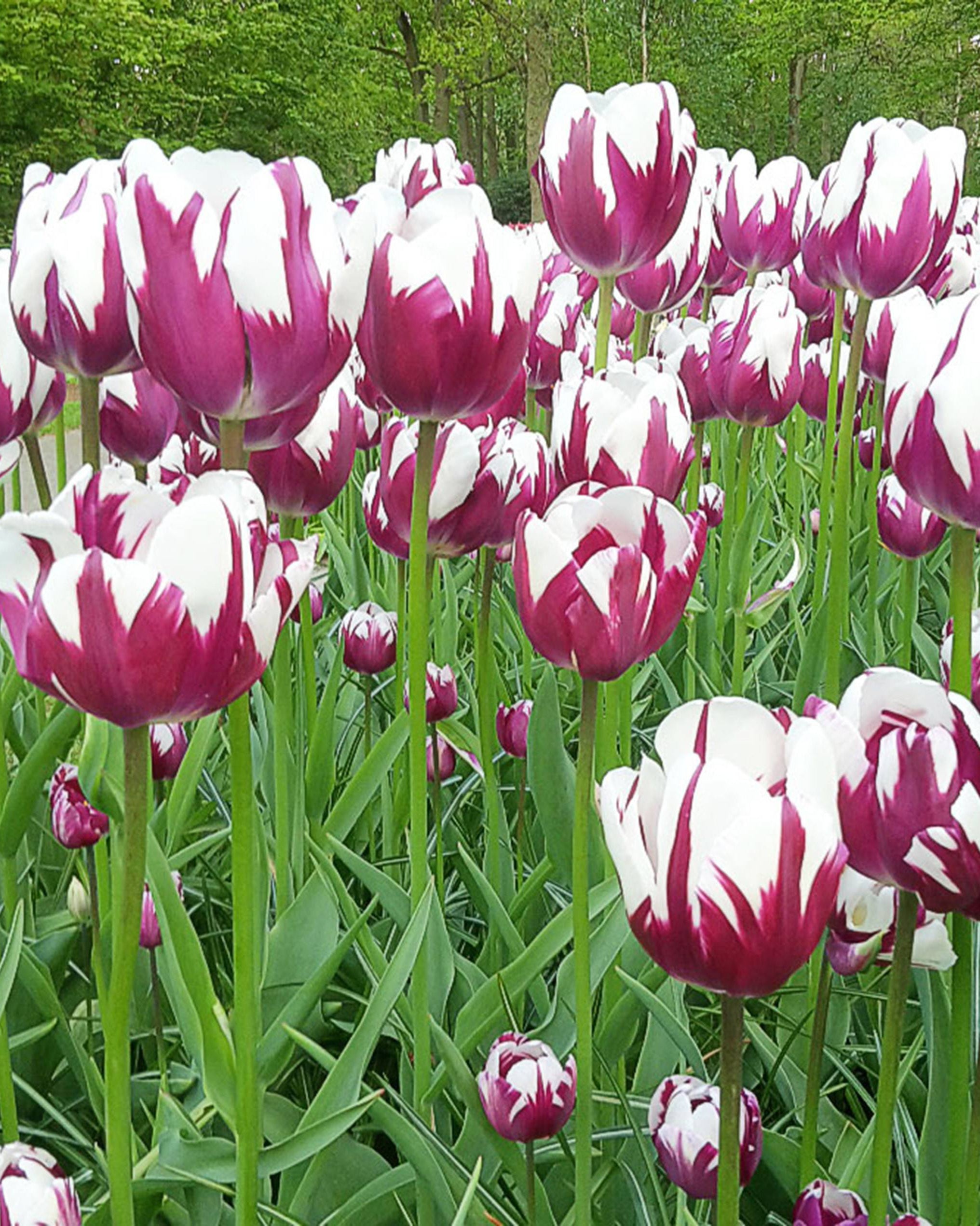 Use the startling flower colour of tulips to create a dramatic spectacle at the start of spring. Wide drifts of colour through your garden borders will lift your spirits and attract a lot of attention. As the season develops tulips of many shapes and sizes can be used to create bold, harmonious and certainly sophisticated combinations with the other plants growing in your garden. From the small-growing wild species to the colourful mid-season varieties and those that grow very tall and flower late, there are endless possibilities here to be explored by the adventurous gardener.