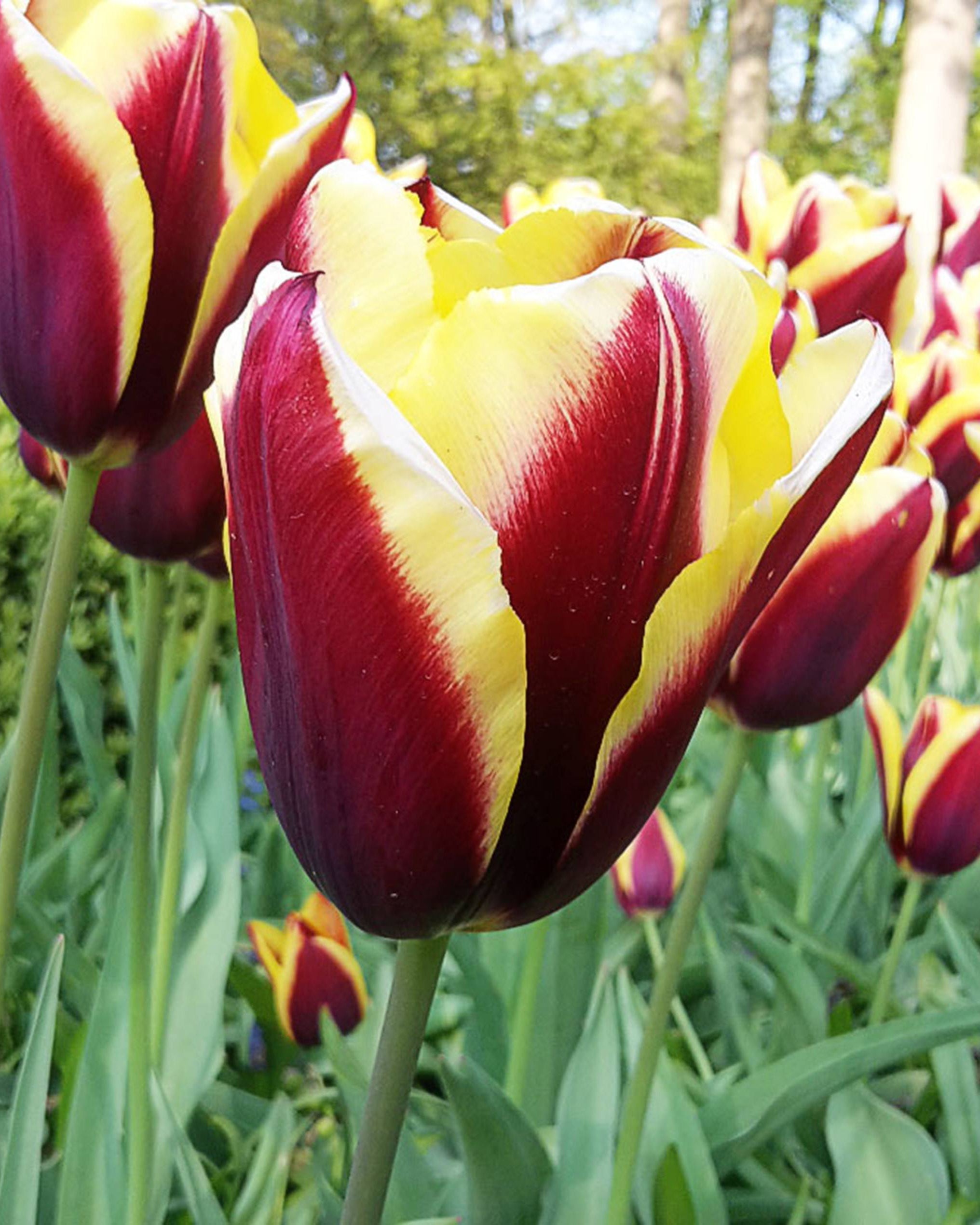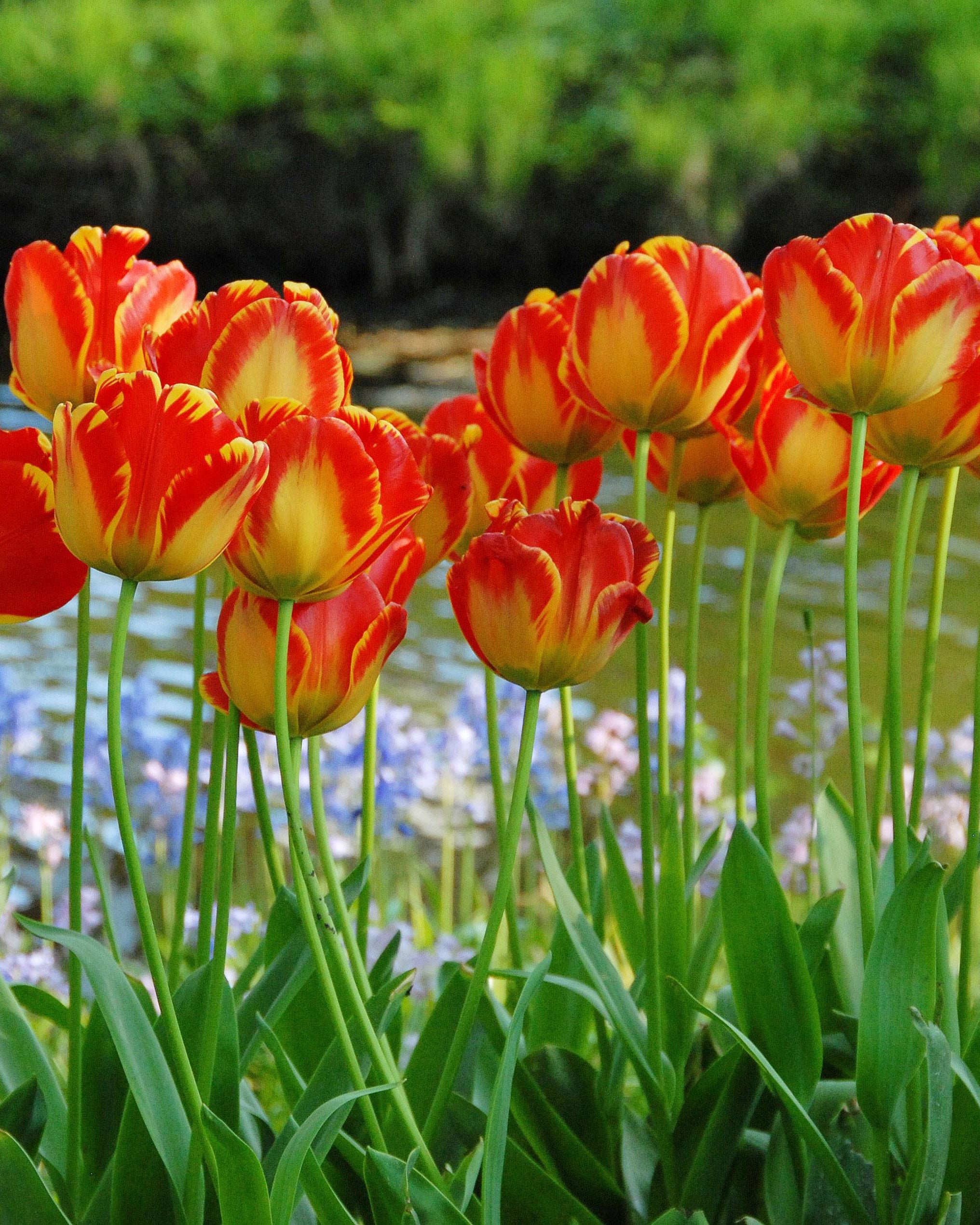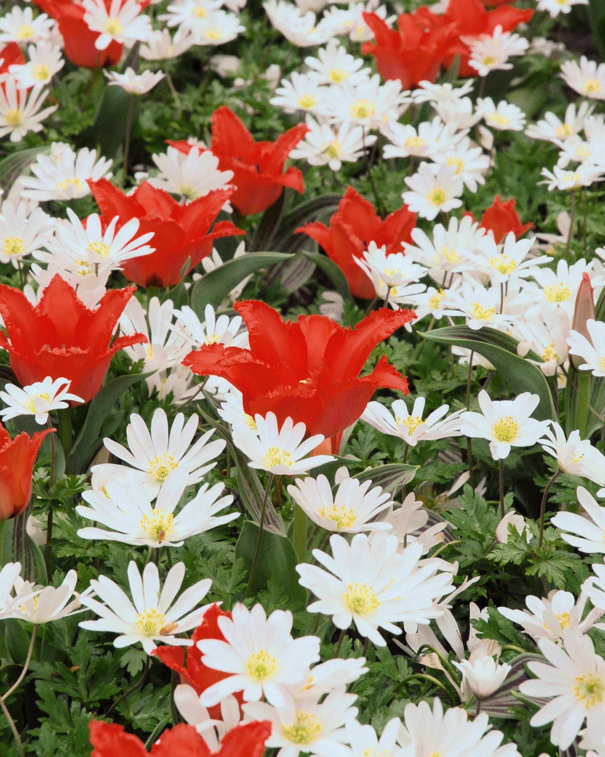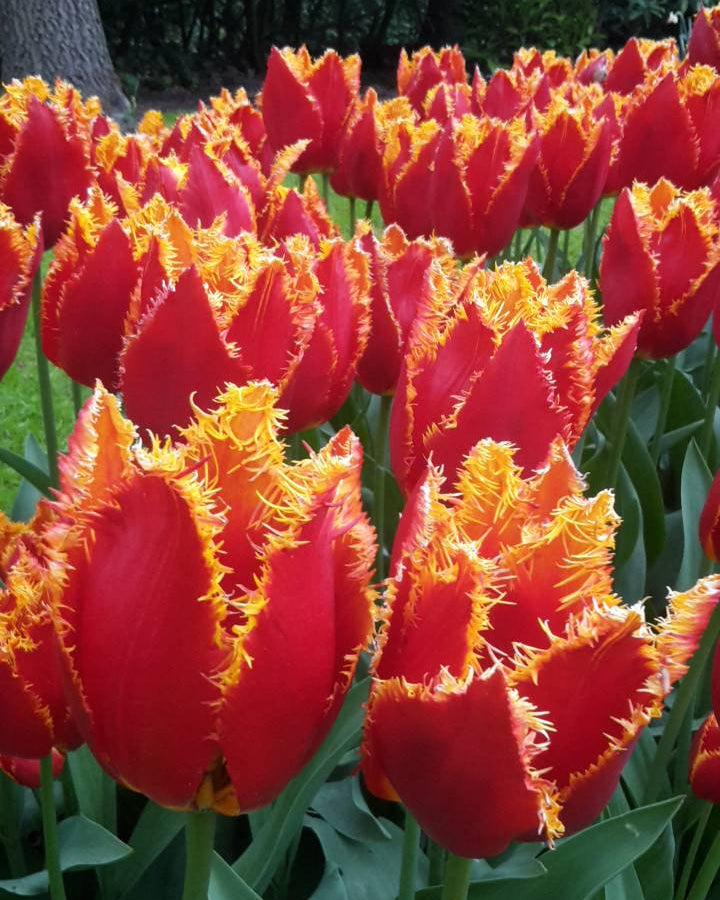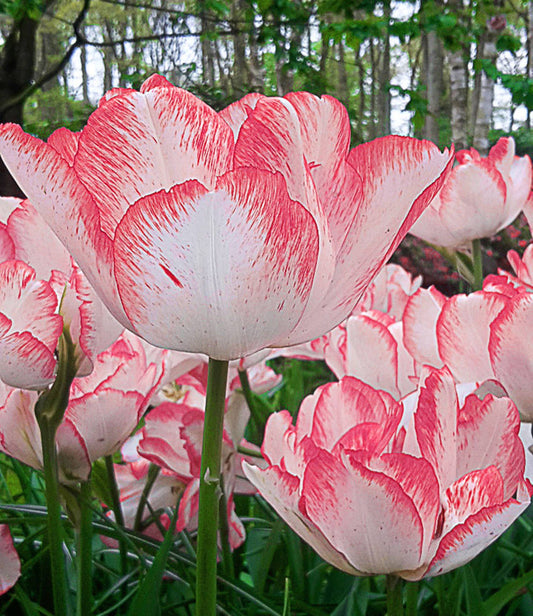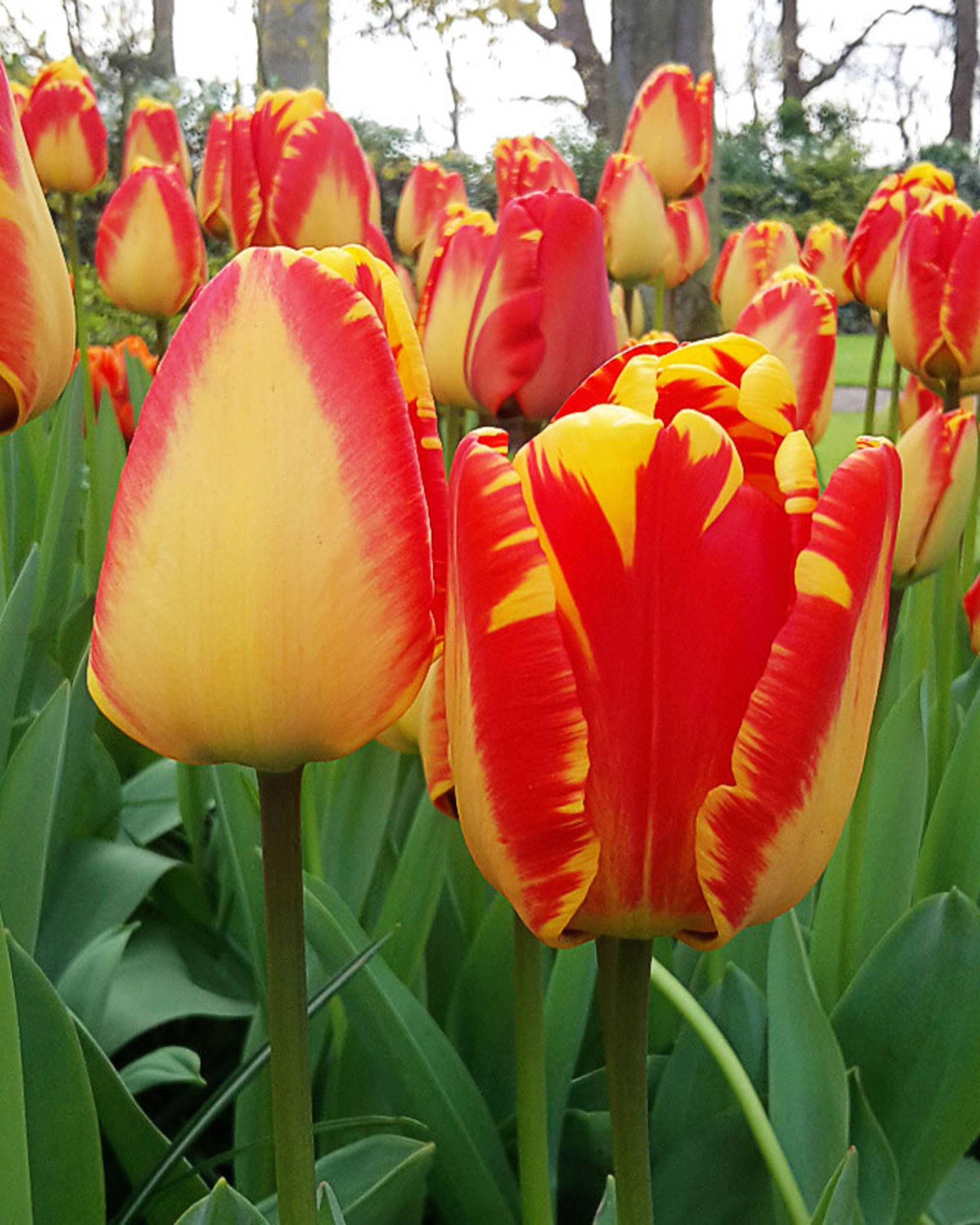 Use the startling flower colour of tulips to create a dramatic spectacle at the start of spring. Wide drifts of colour through your garden borders will lift your spirits and attract a lot of attention. As the season develops tulips of many shapes and sizes can be used to create bold, harmonious and certainly sophisticated combinations with the other plants growing in your garden. From the small-growing wild species to the colourful mid-season varieties and those that grow very tall and flower late, there are endless possibilities here to be explored by the adventurous gardener.