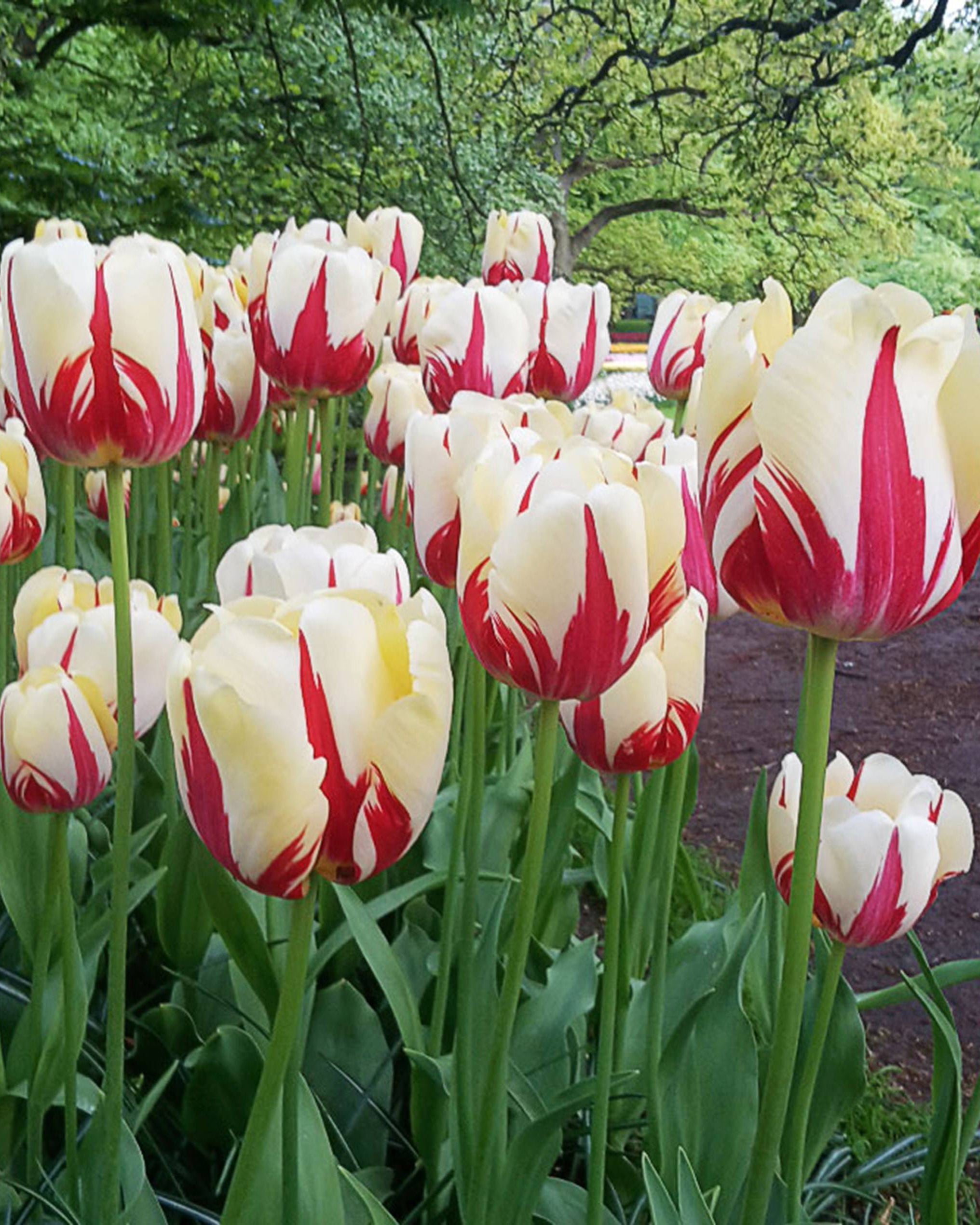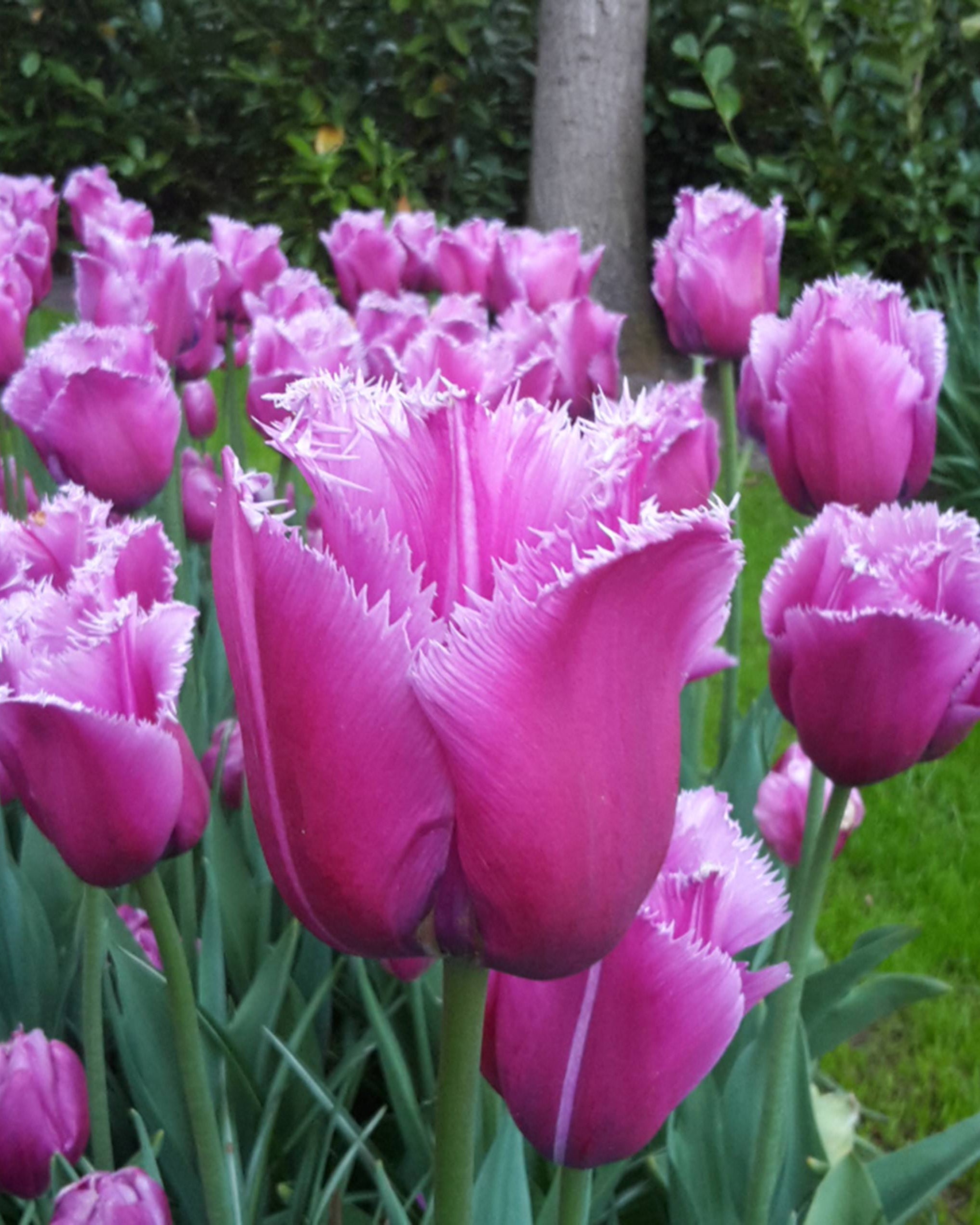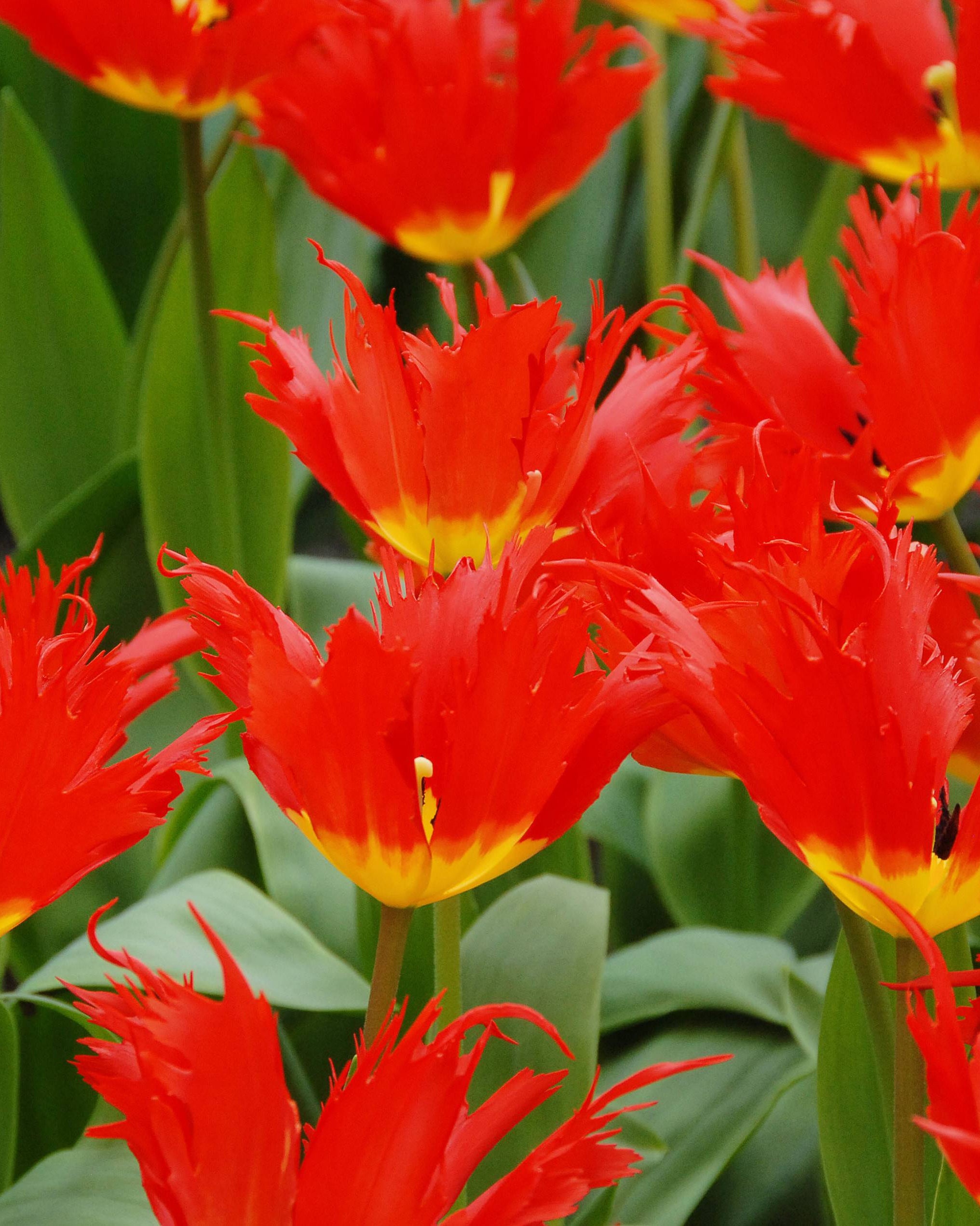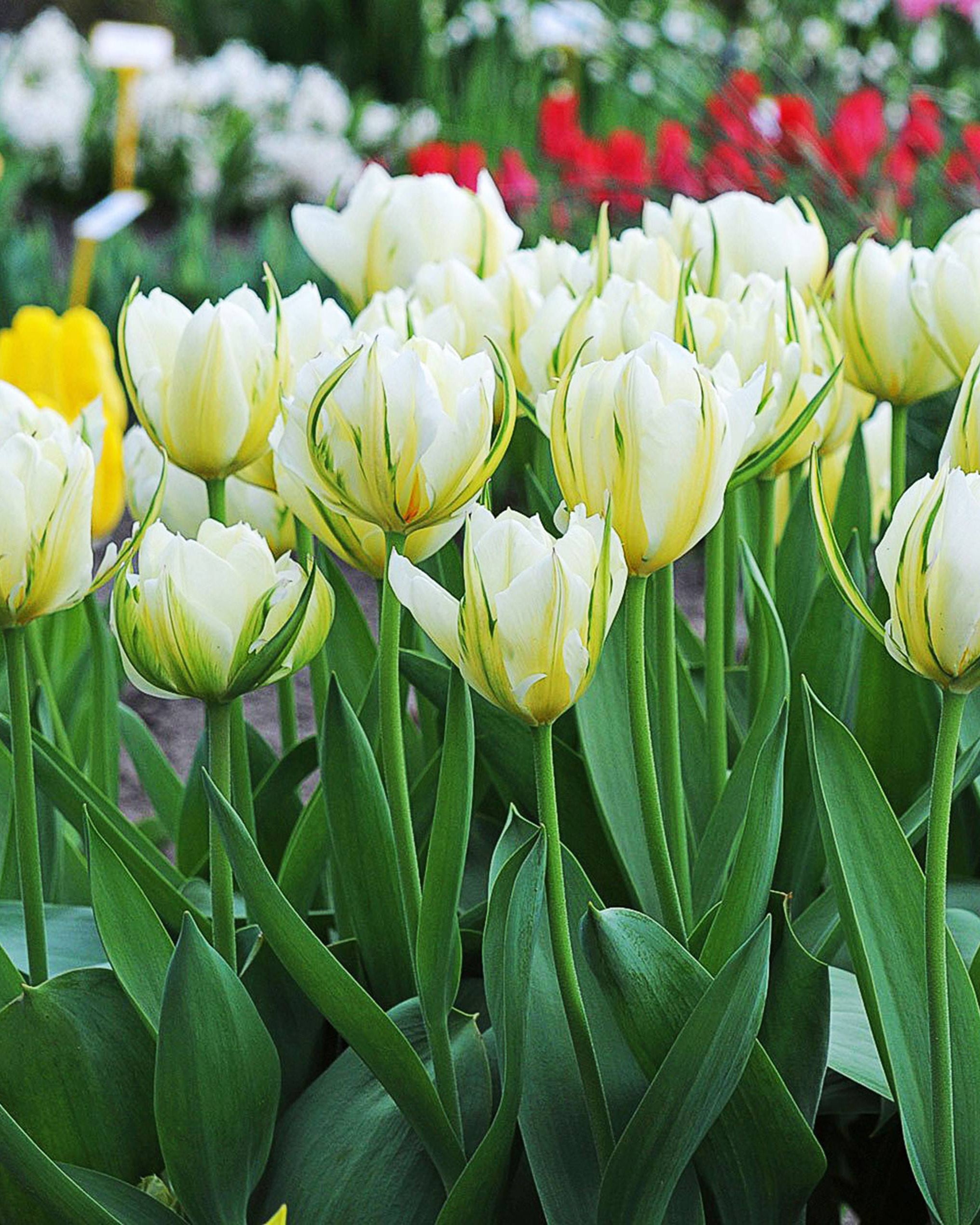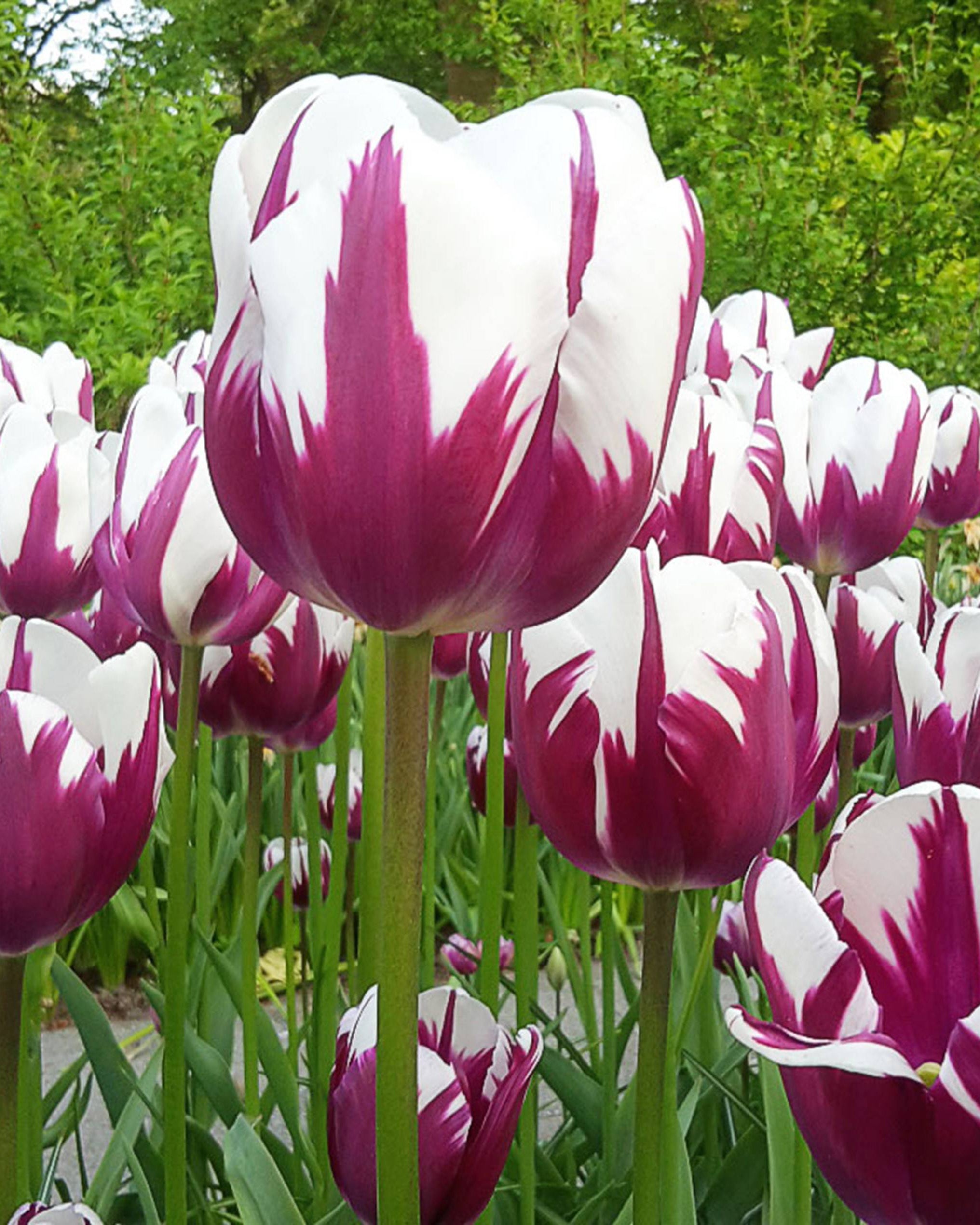 Use the startling flower colour of tulips to create a dramatic spectacle at the start of spring. Wide drifts of colour through your garden borders will lift your spirits and attract a lot of attention. As the season develops tulips of many shapes and sizes can be used to create bold, harmonious and certainly sophisticated combinations with the other plants growing in your garden. From the small-growing wild species to the colourful mid-season varieties and those that grow very tall and flower late, there are endless possibilities here to be explored by the adventurous gardener.
