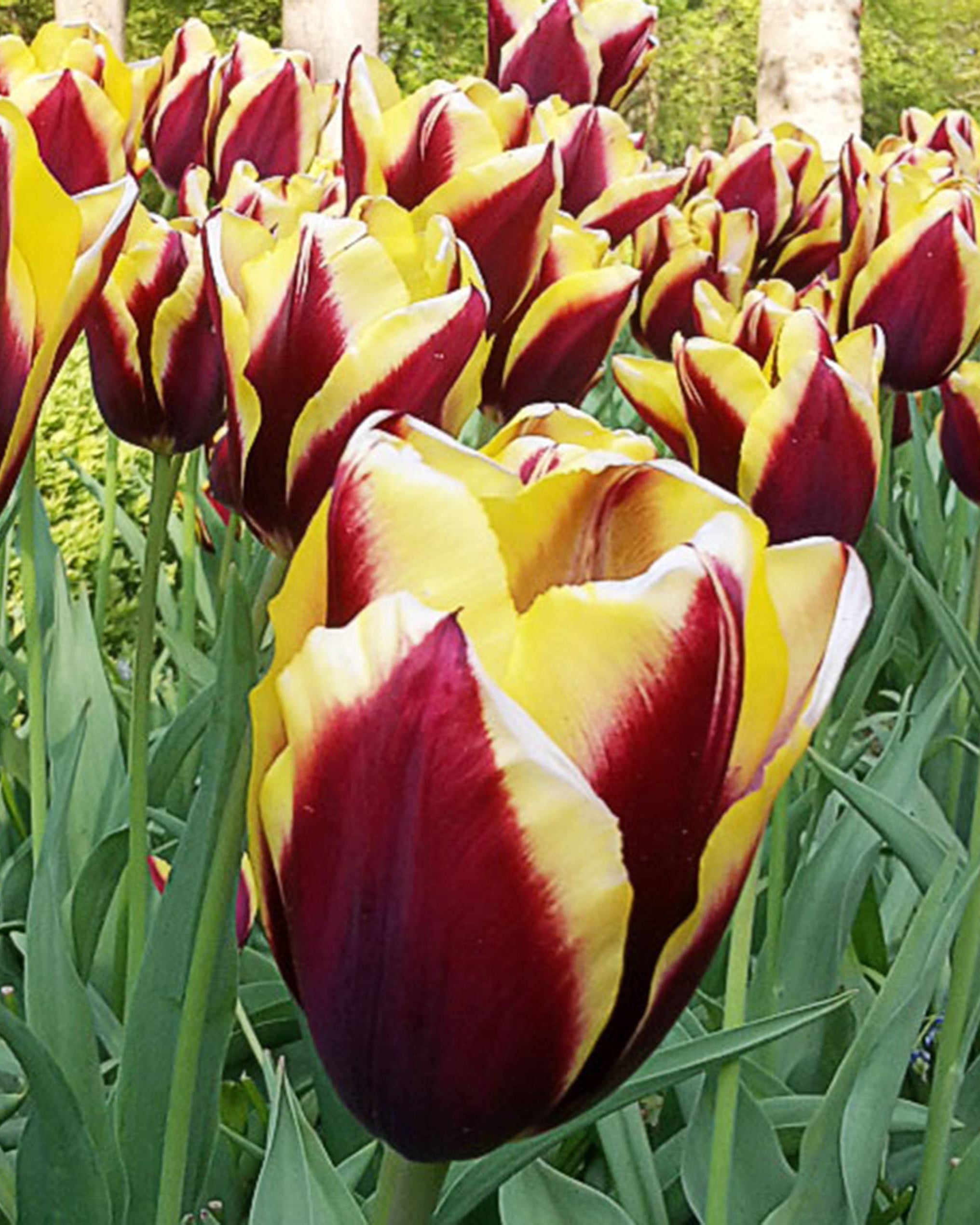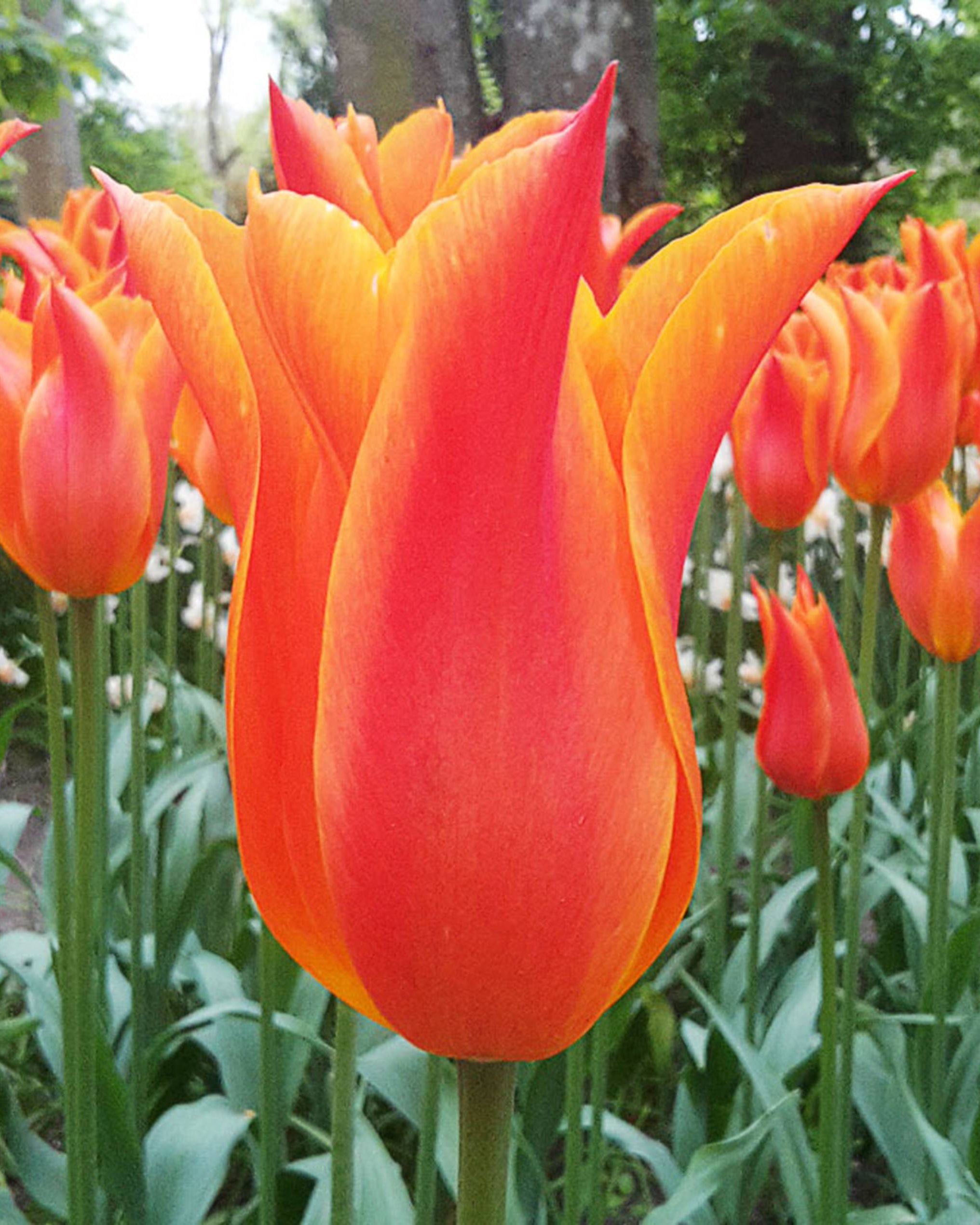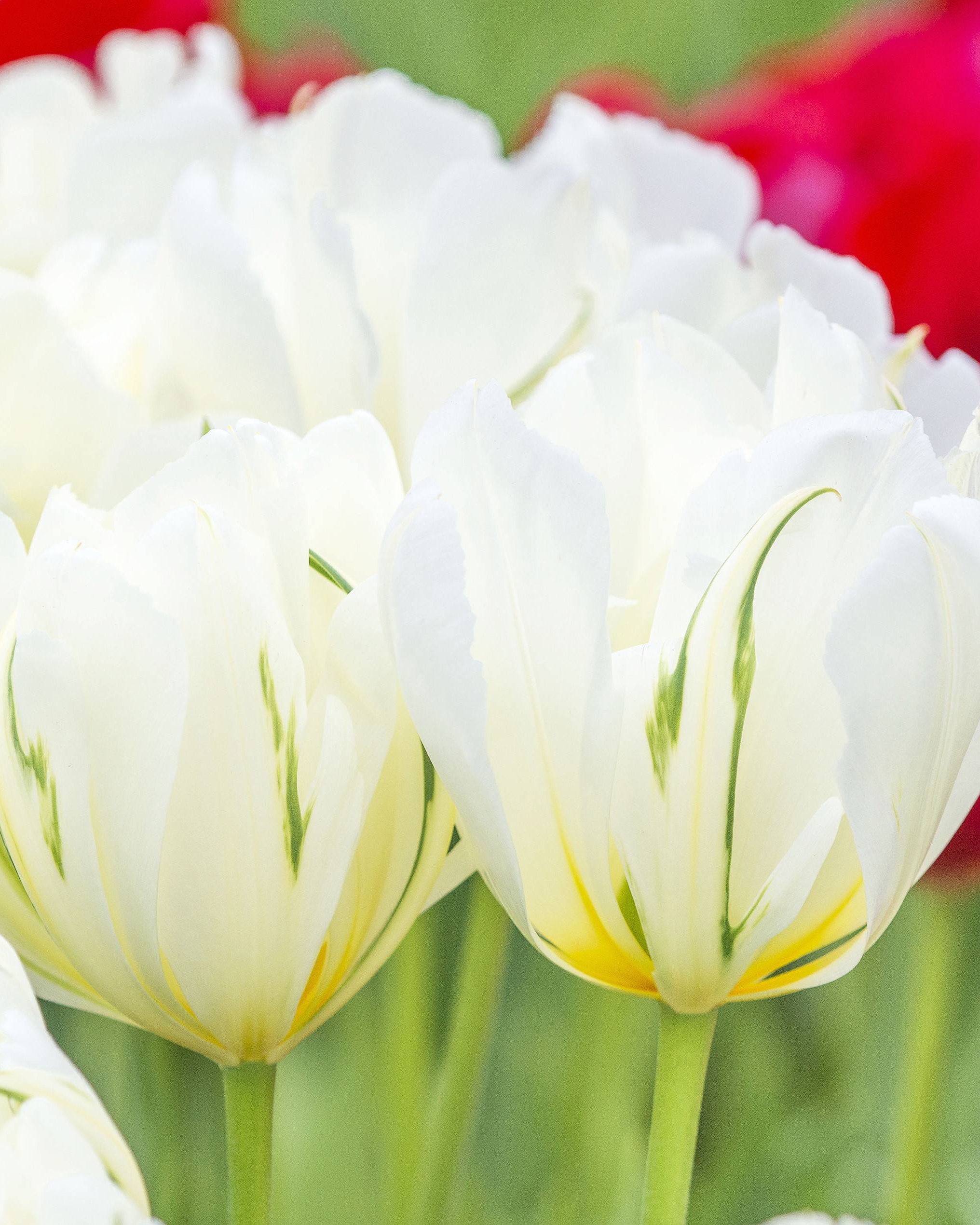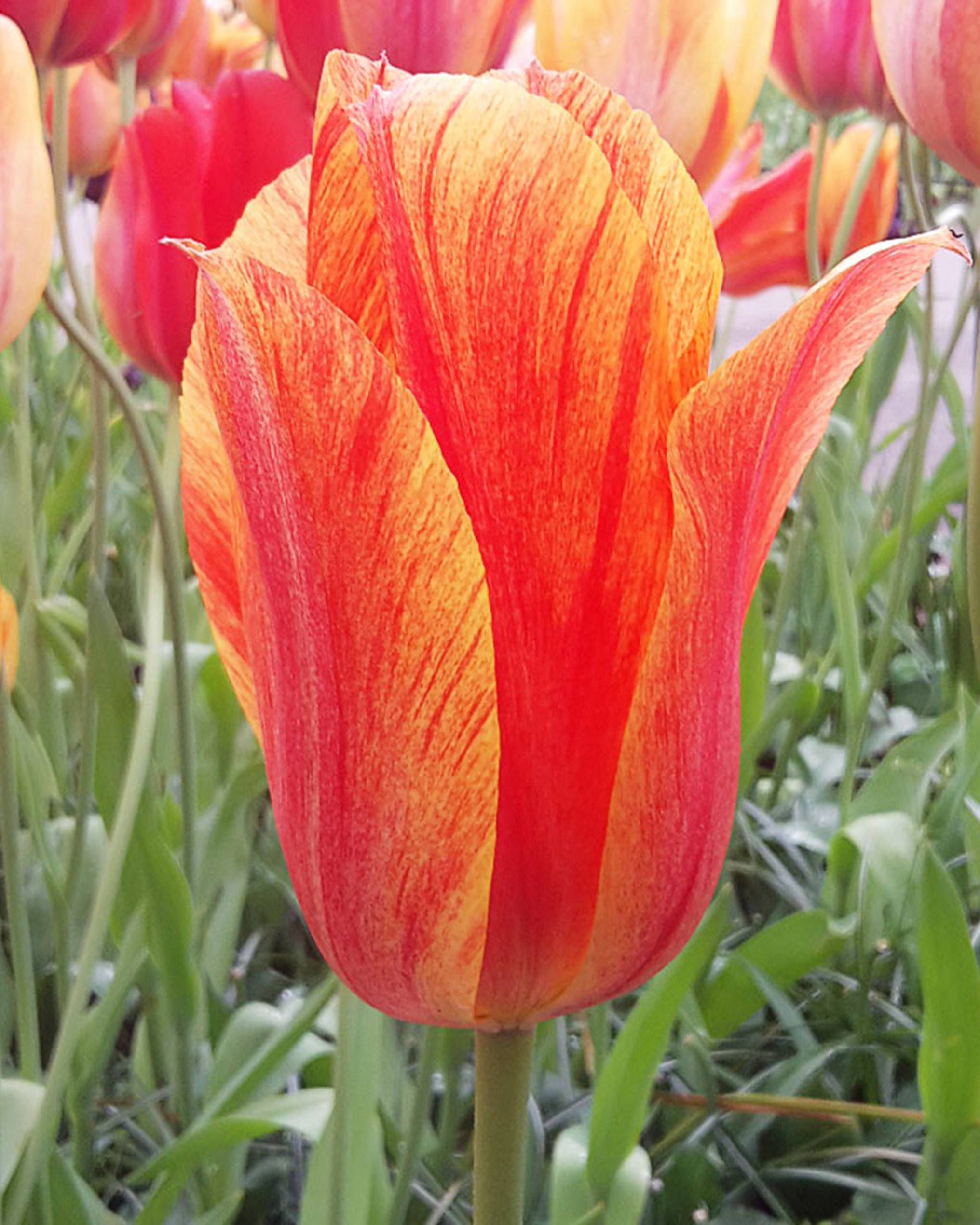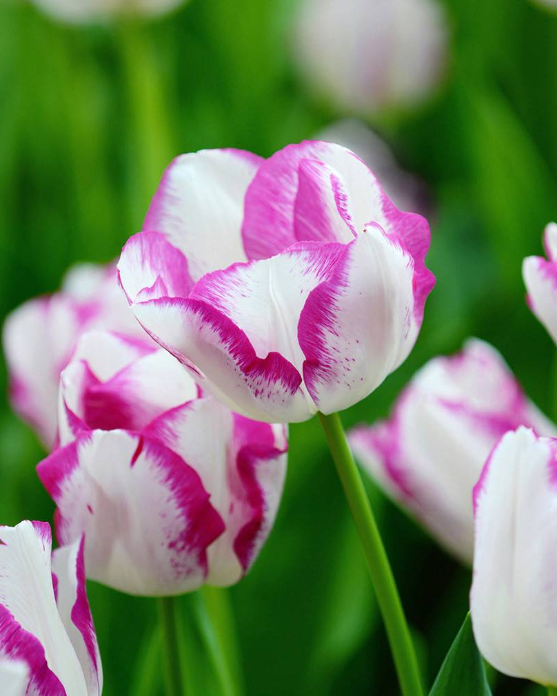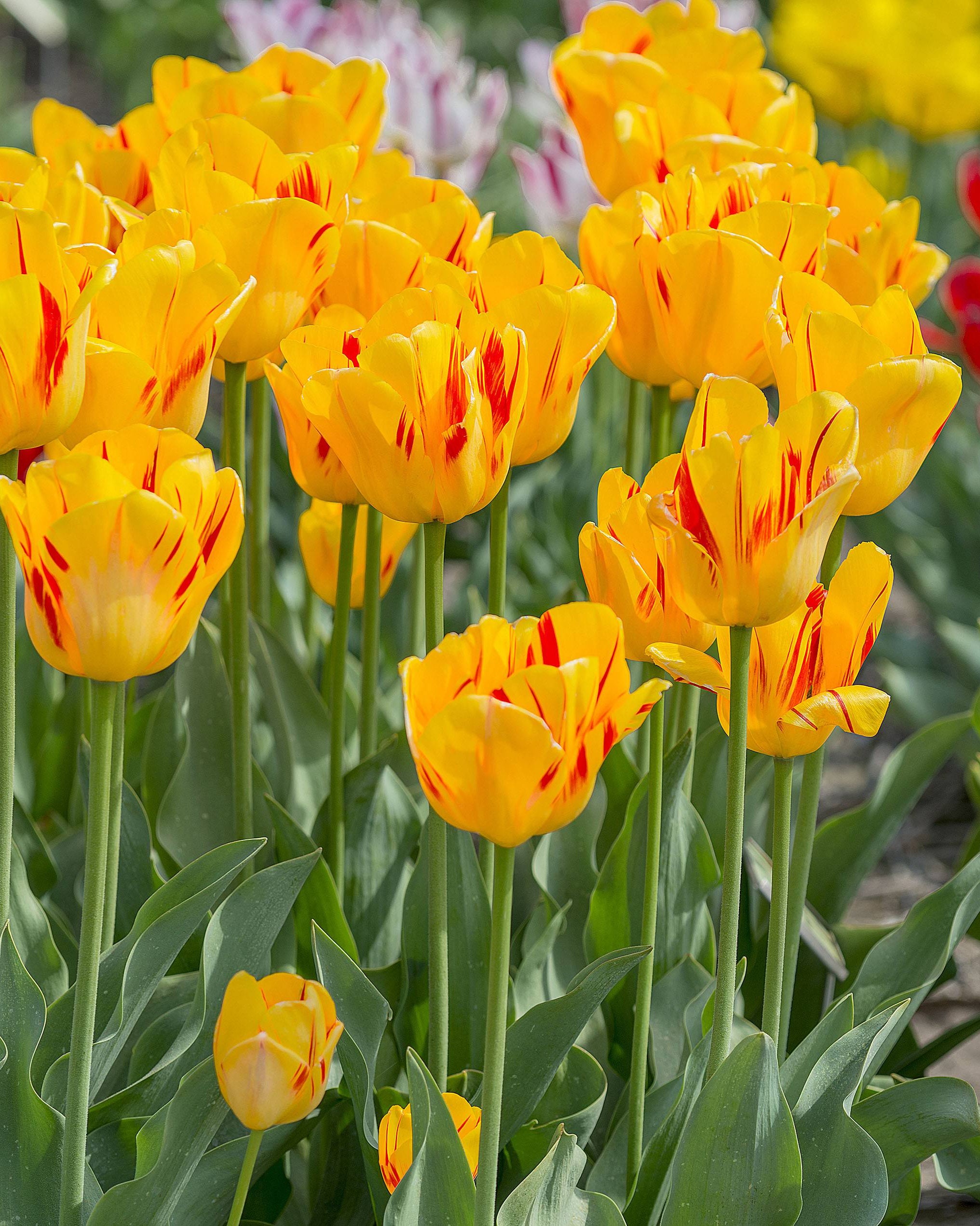 Use the startling flower colour of tulips to create a dramatic spectacle at the start of spring. Wide drifts of colour through your garden borders will lift your spirits and attract a lot of attention. As the season develops tulips of many shapes and sizes can be used to create bold, harmonious and certainly sophisticated combinations with the other plants growing in your garden. From the small-growing wild species to the colourful mid-season varieties and those that grow very tall and flower late, there are endless possibilities here to be explored by the adventurous gardener.