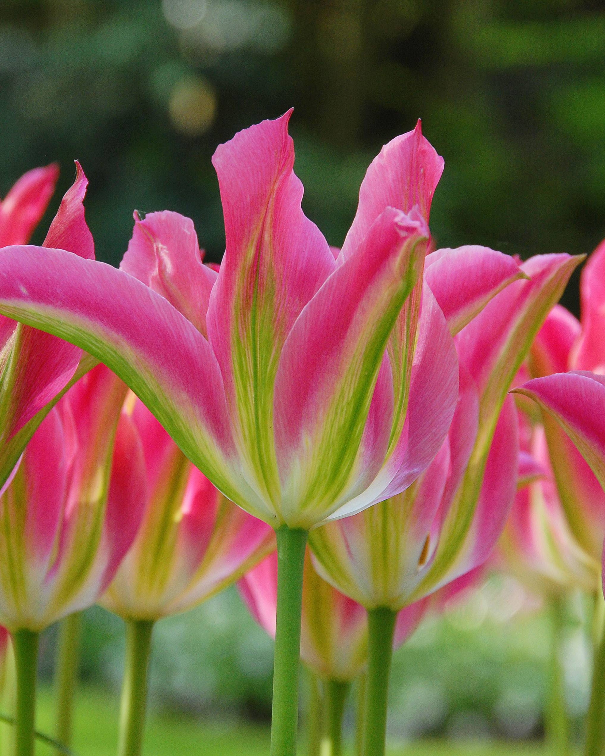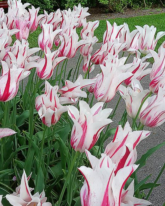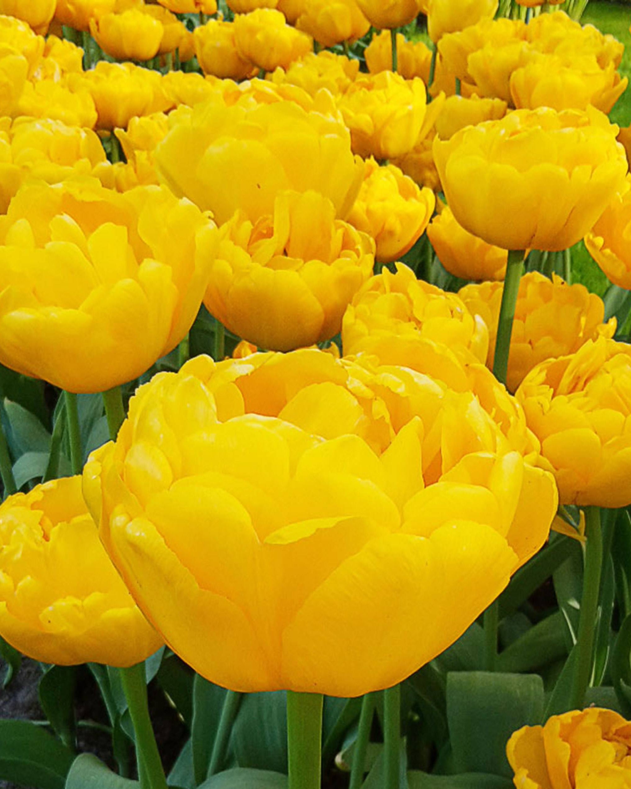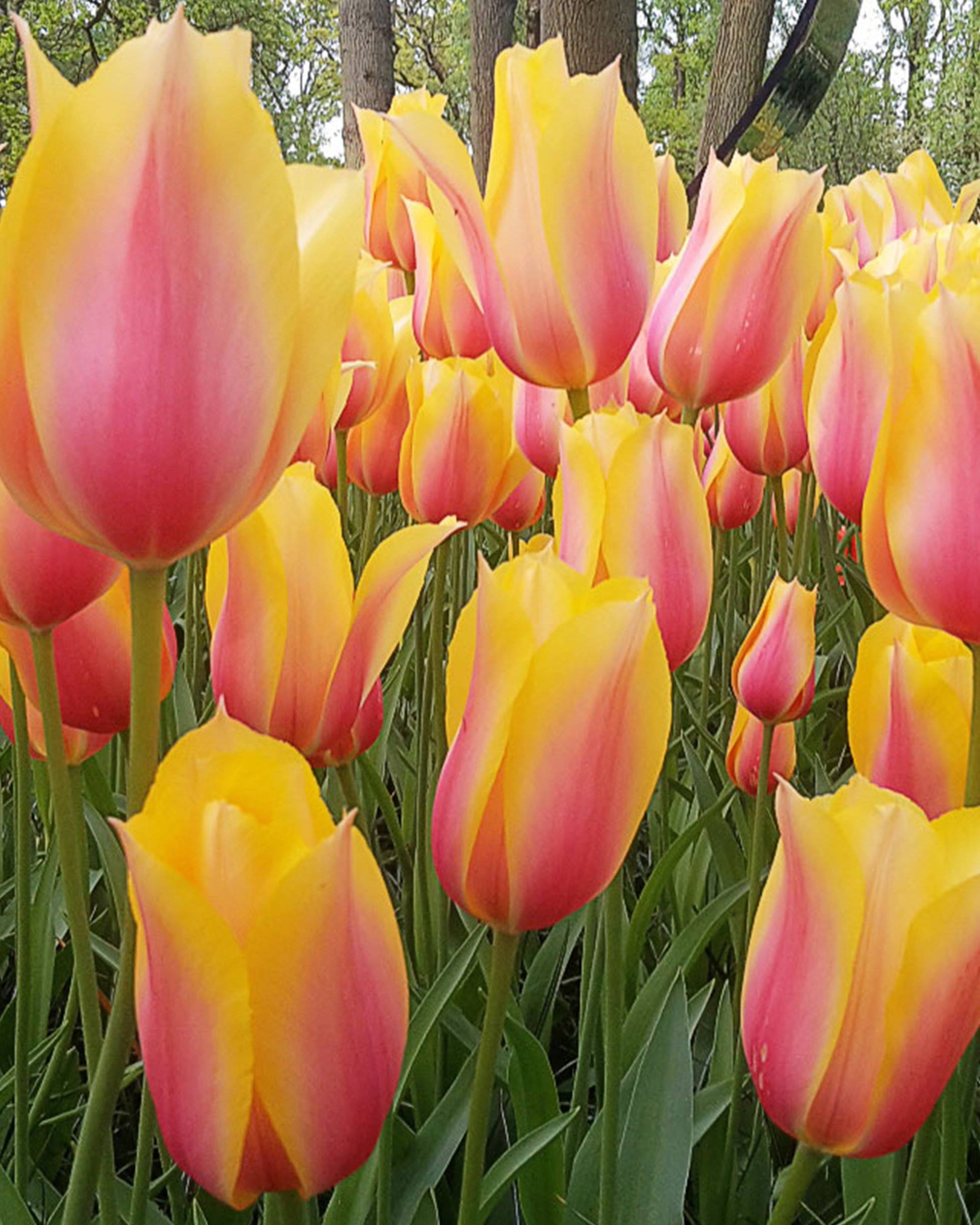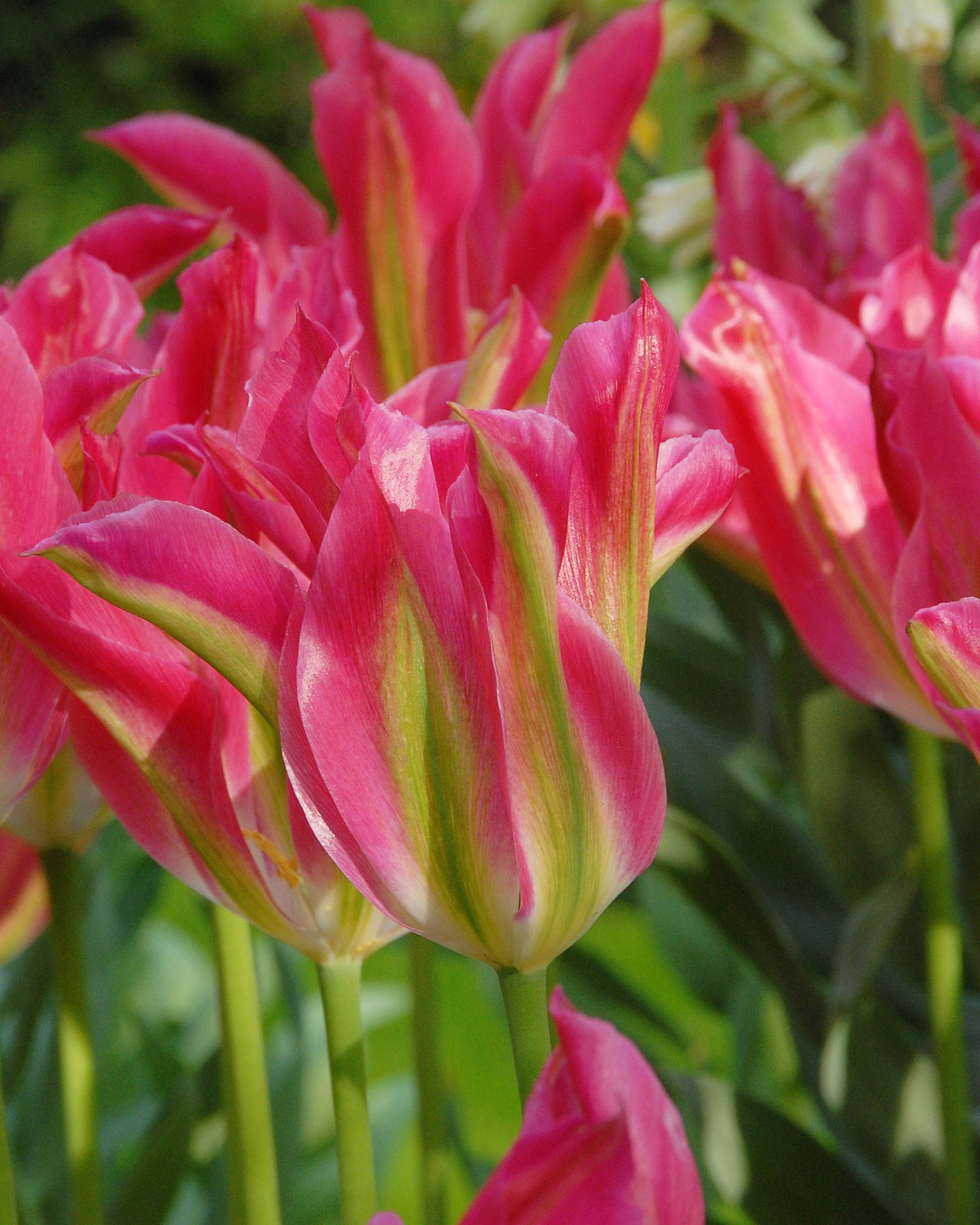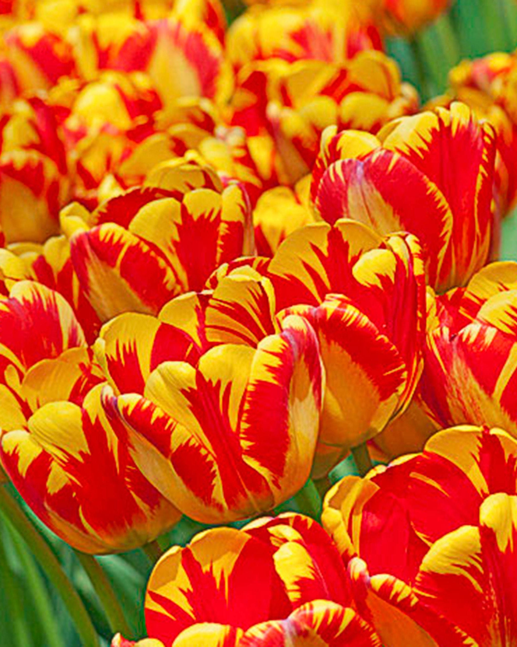 Use the startling flower colour of tulips to create a dramatic spectacle at the start of spring. Wide drifts of colour through your garden borders will lift your spirits and attract a lot of attention. As the season develops tulips of many shapes and sizes can be used to create bold, harmonious and certainly sophisticated combinations with the other plants growing in your garden. From the small-growing wild species to the colourful mid-season varieties and those that grow very tall and flower late, there are endless possibilities here to be explored by the adventurous gardener.
