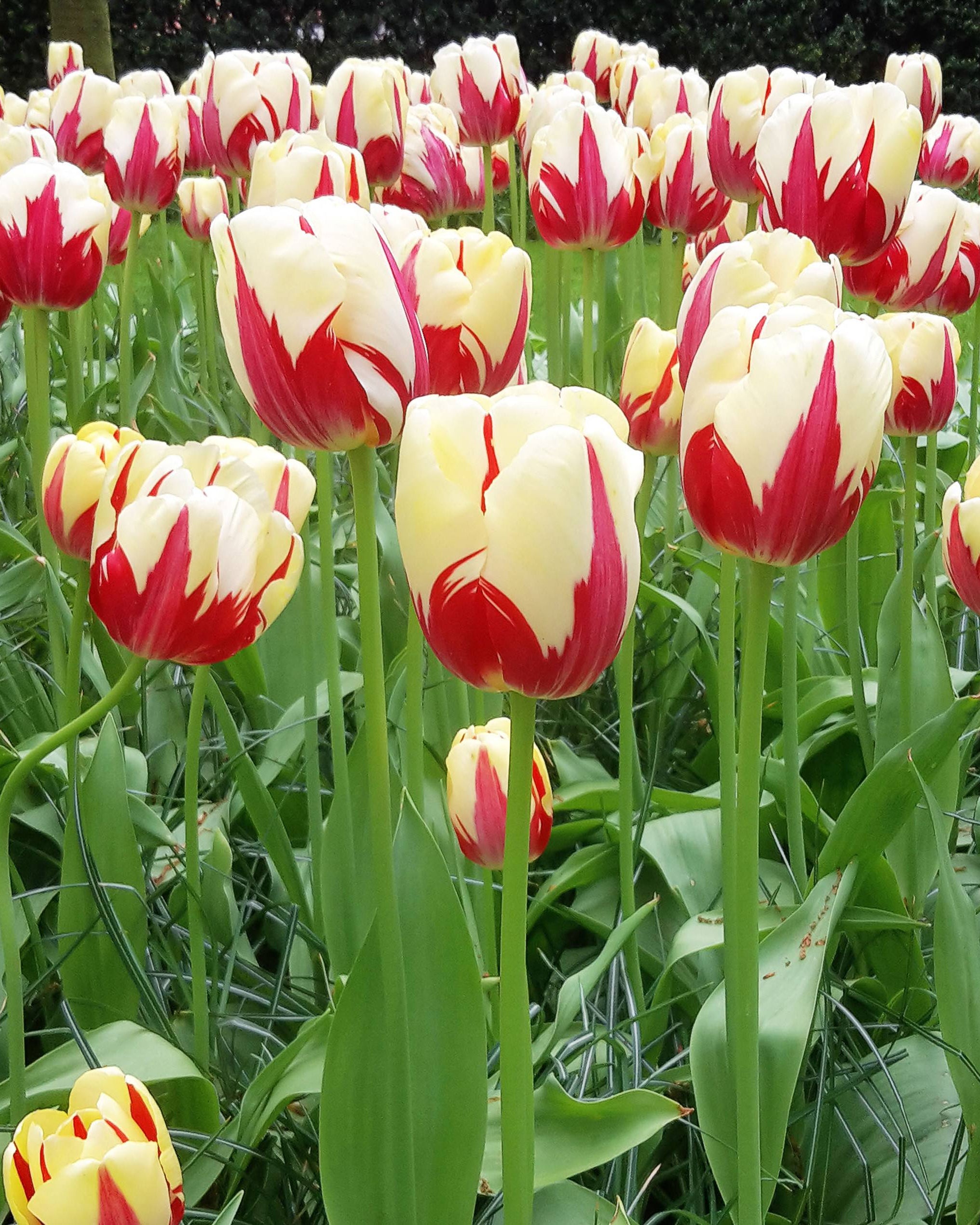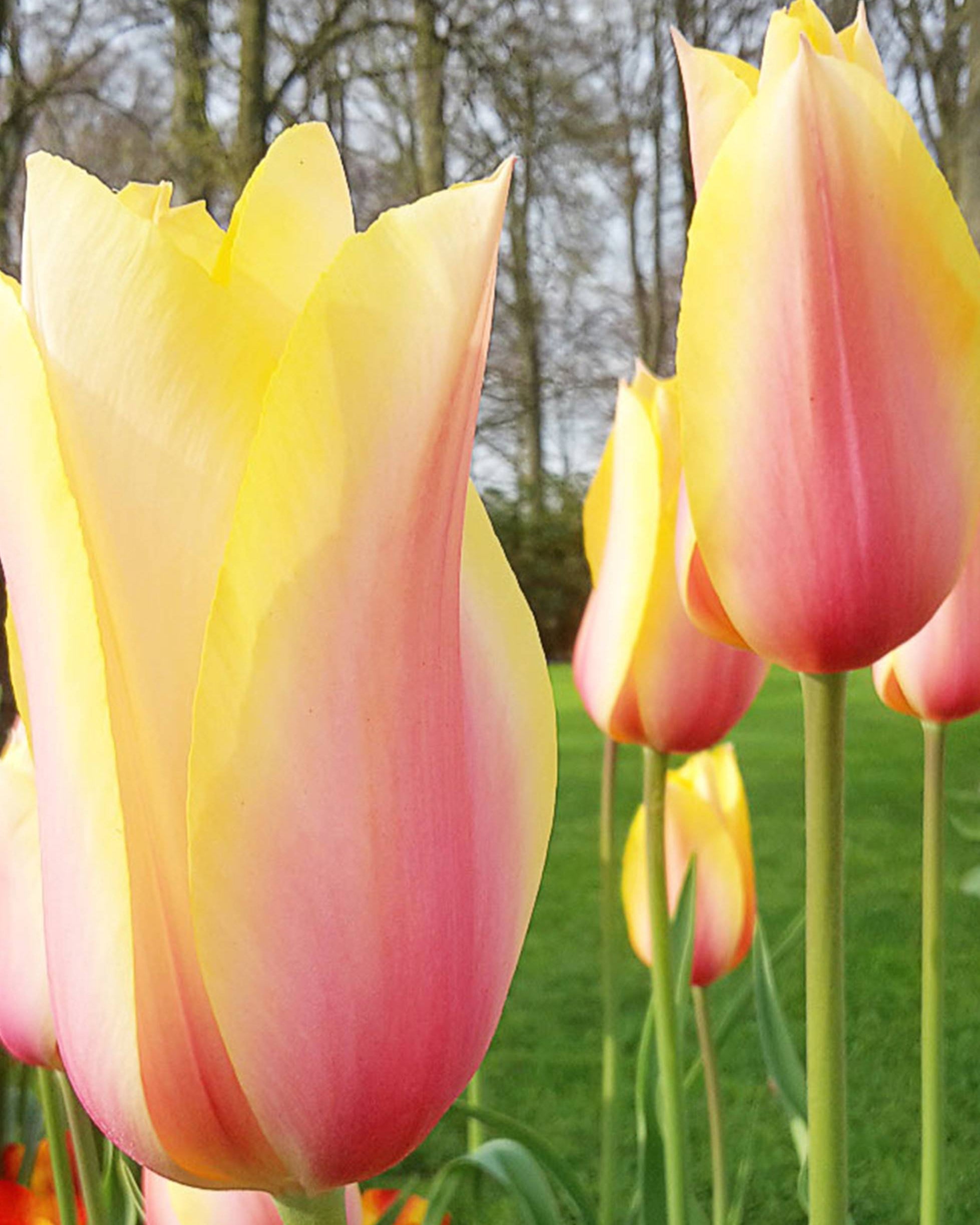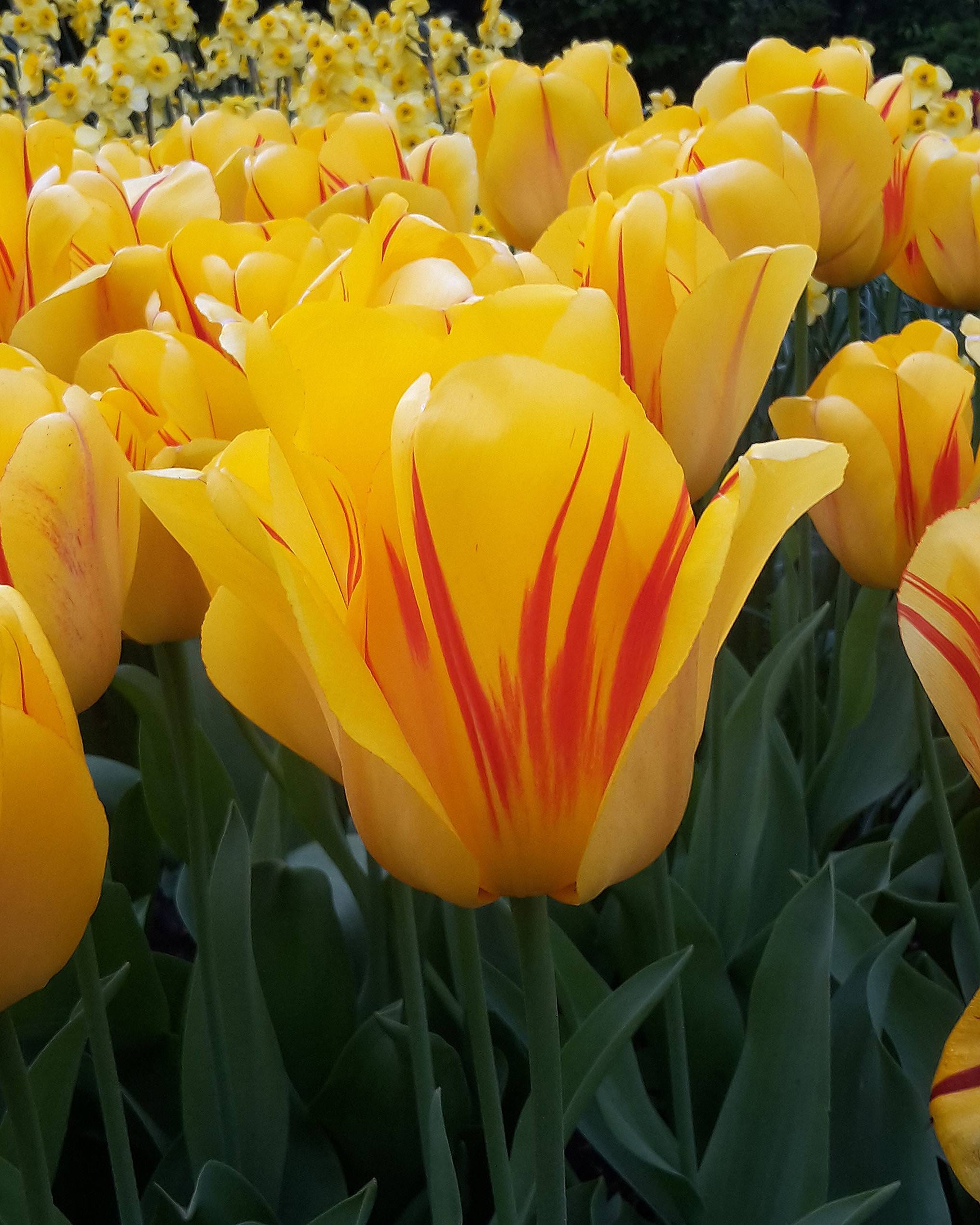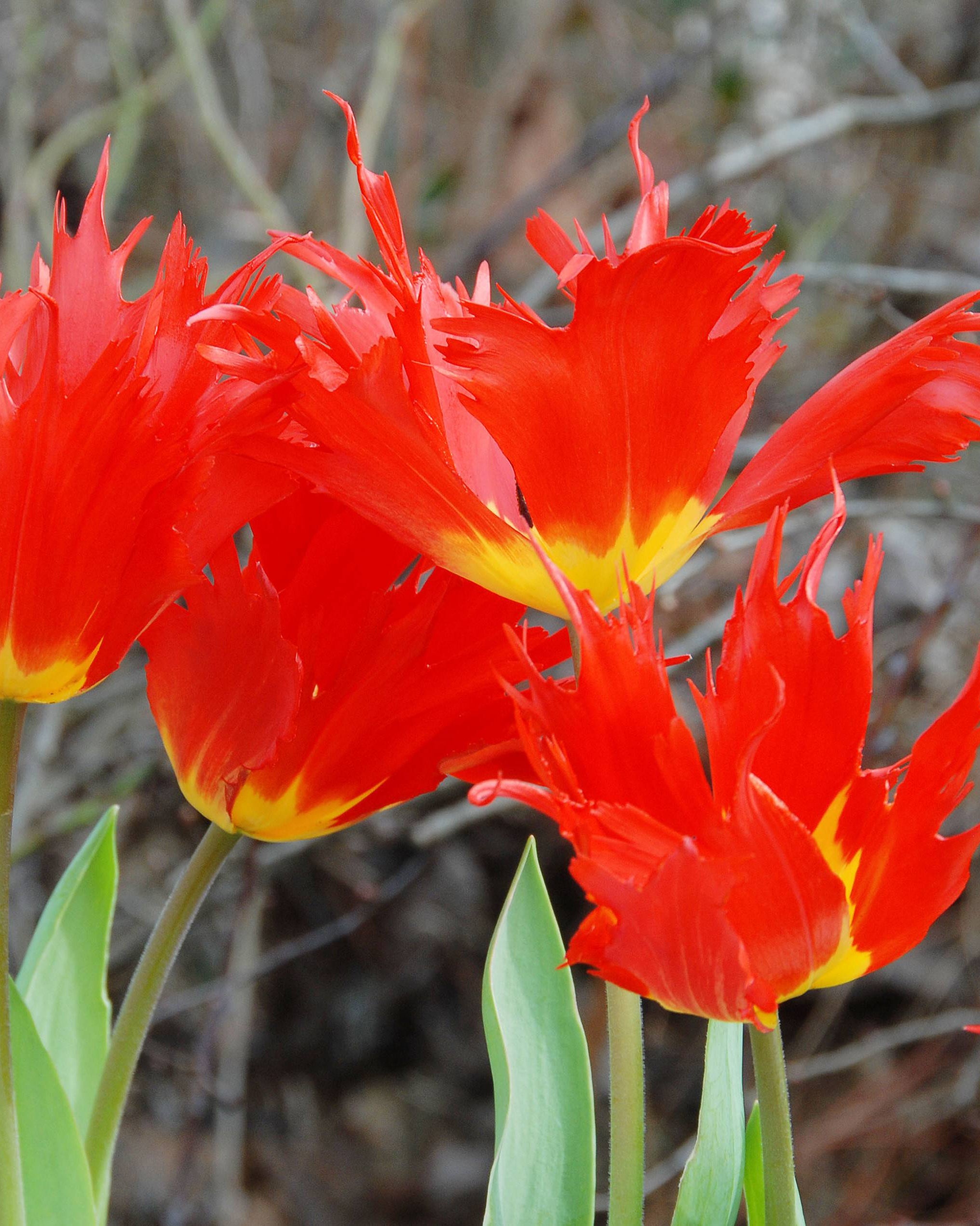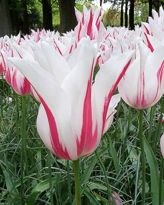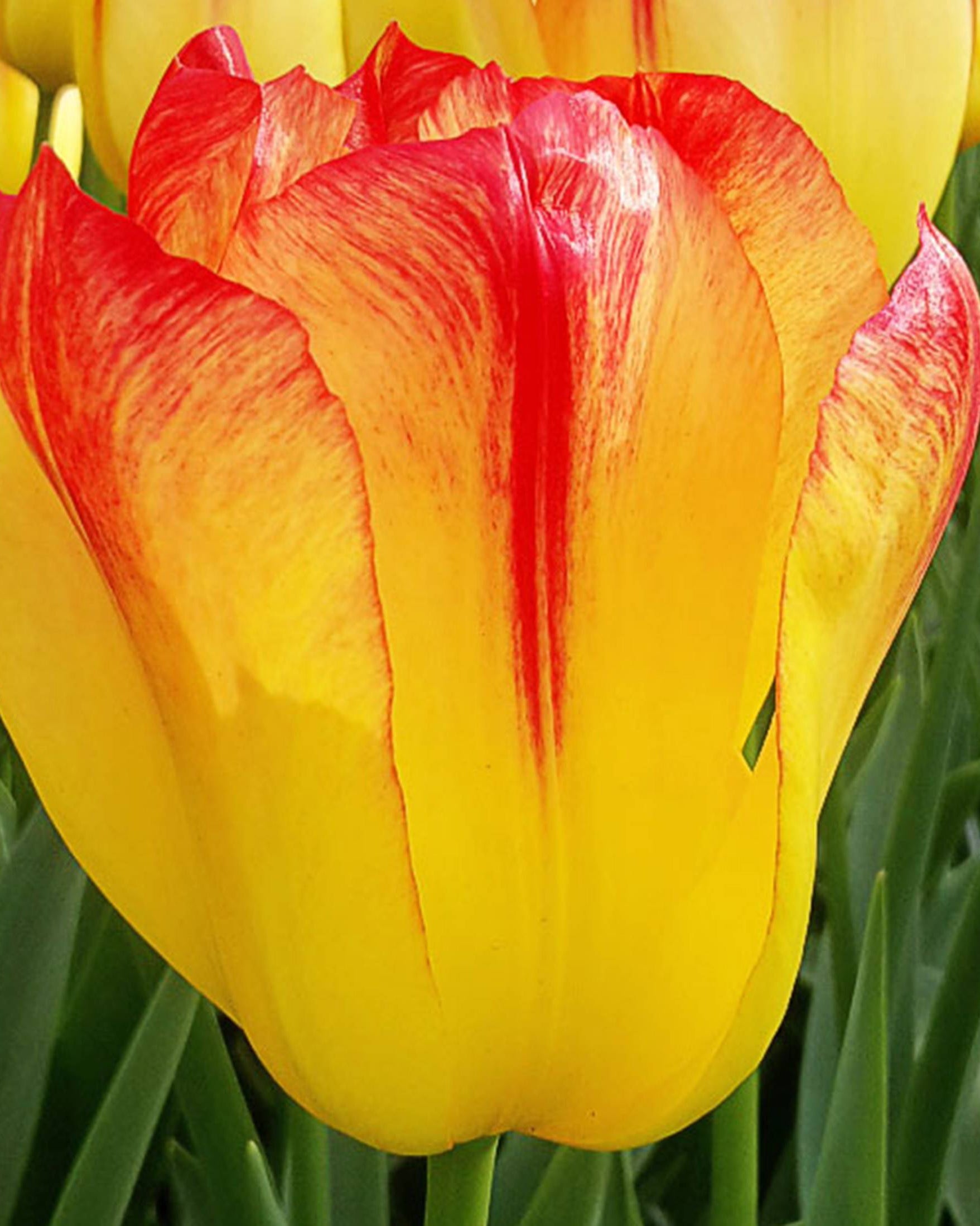 Use the startling flower colour of tulips to create a dramatic spectacle at the start of spring. Wide drifts of colour through your garden borders will lift your spirits and attract a lot of attention. As the season develops tulips of many shapes and sizes can be used to create bold, harmonious and certainly sophisticated combinations with the other plants growing in your garden. From the small-growing wild species to the colourful mid-season varieties and those that grow very tall and flower late, there are endless possibilities here to be explored by the adventurous gardener.