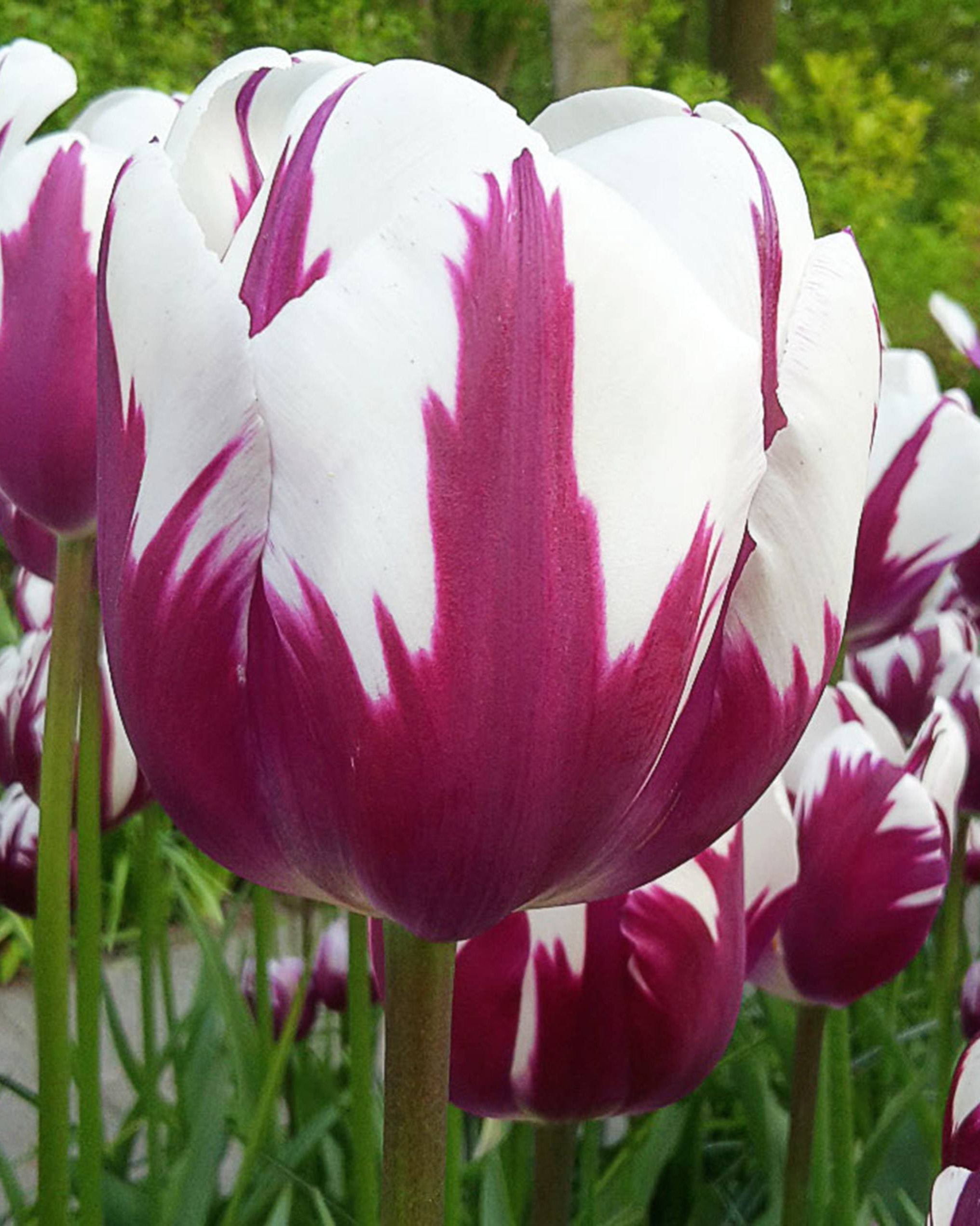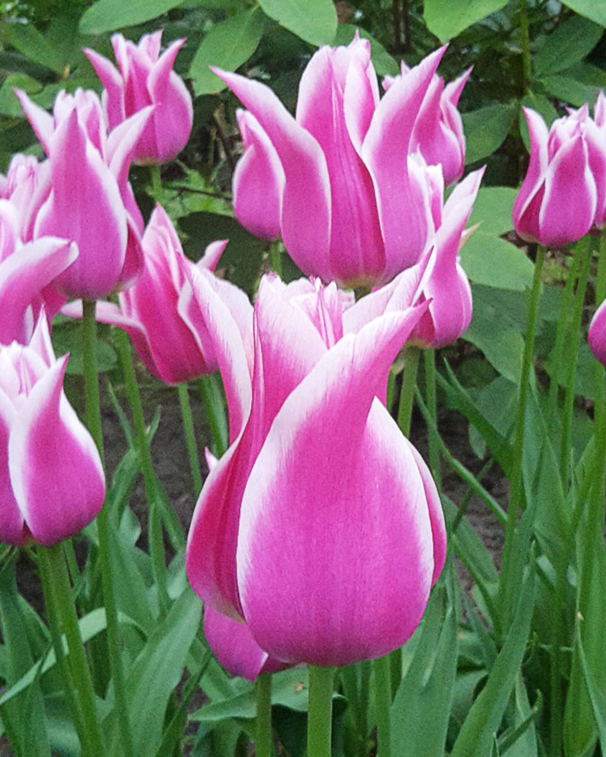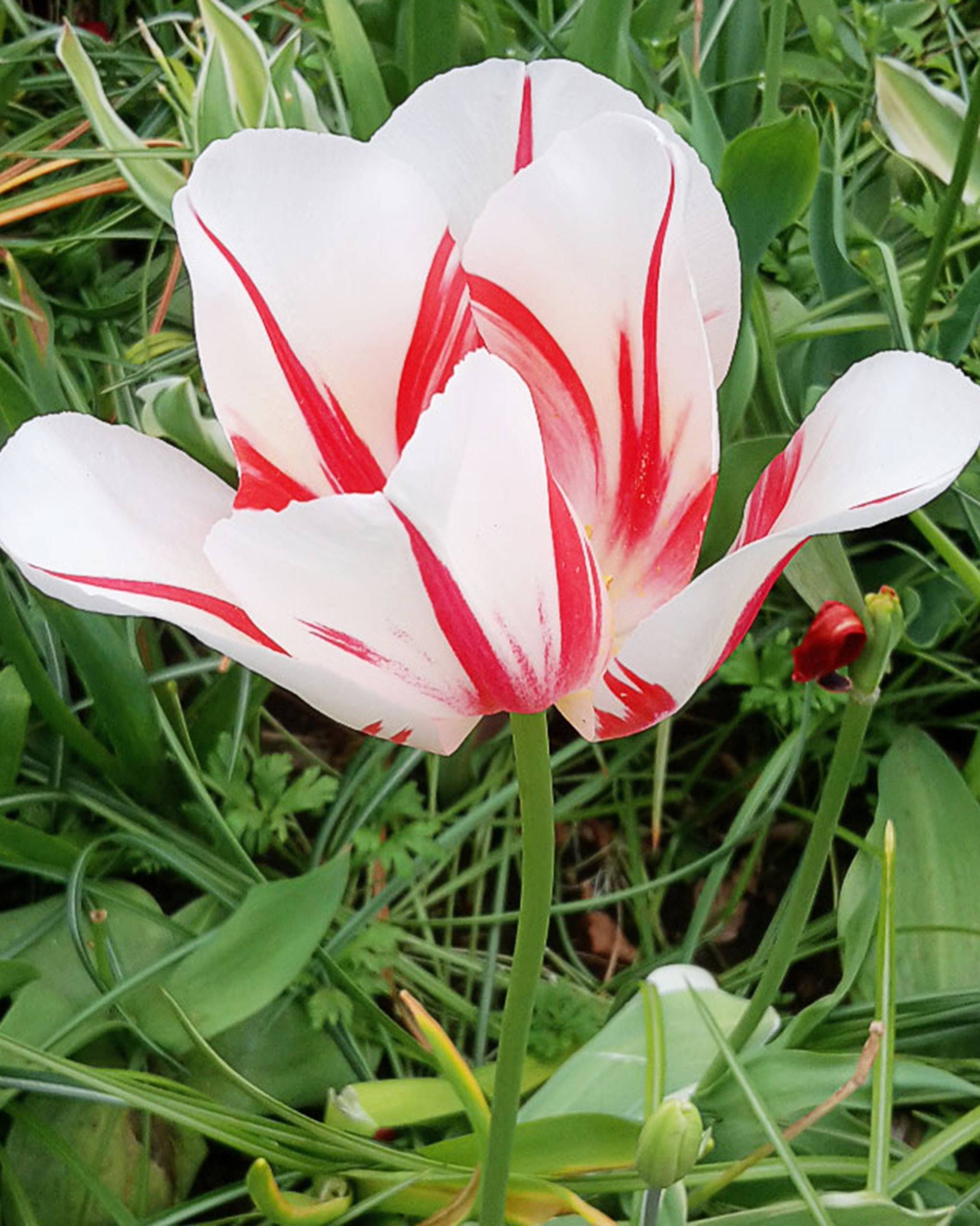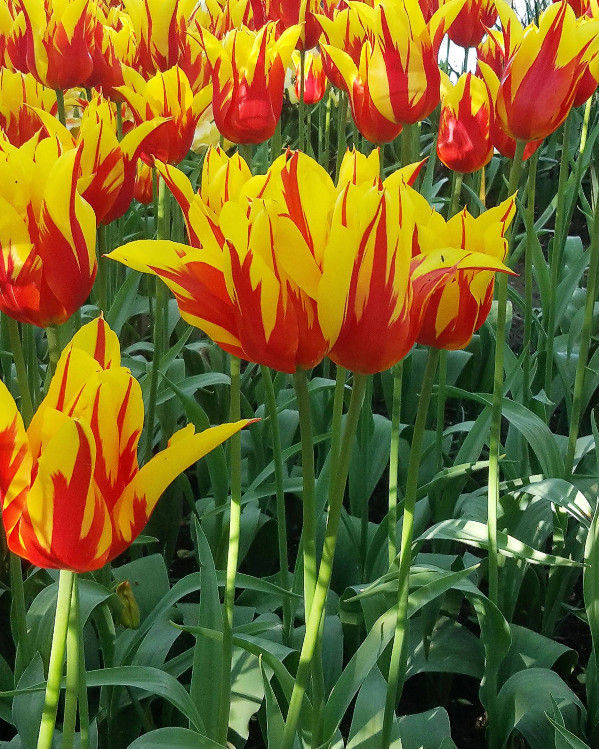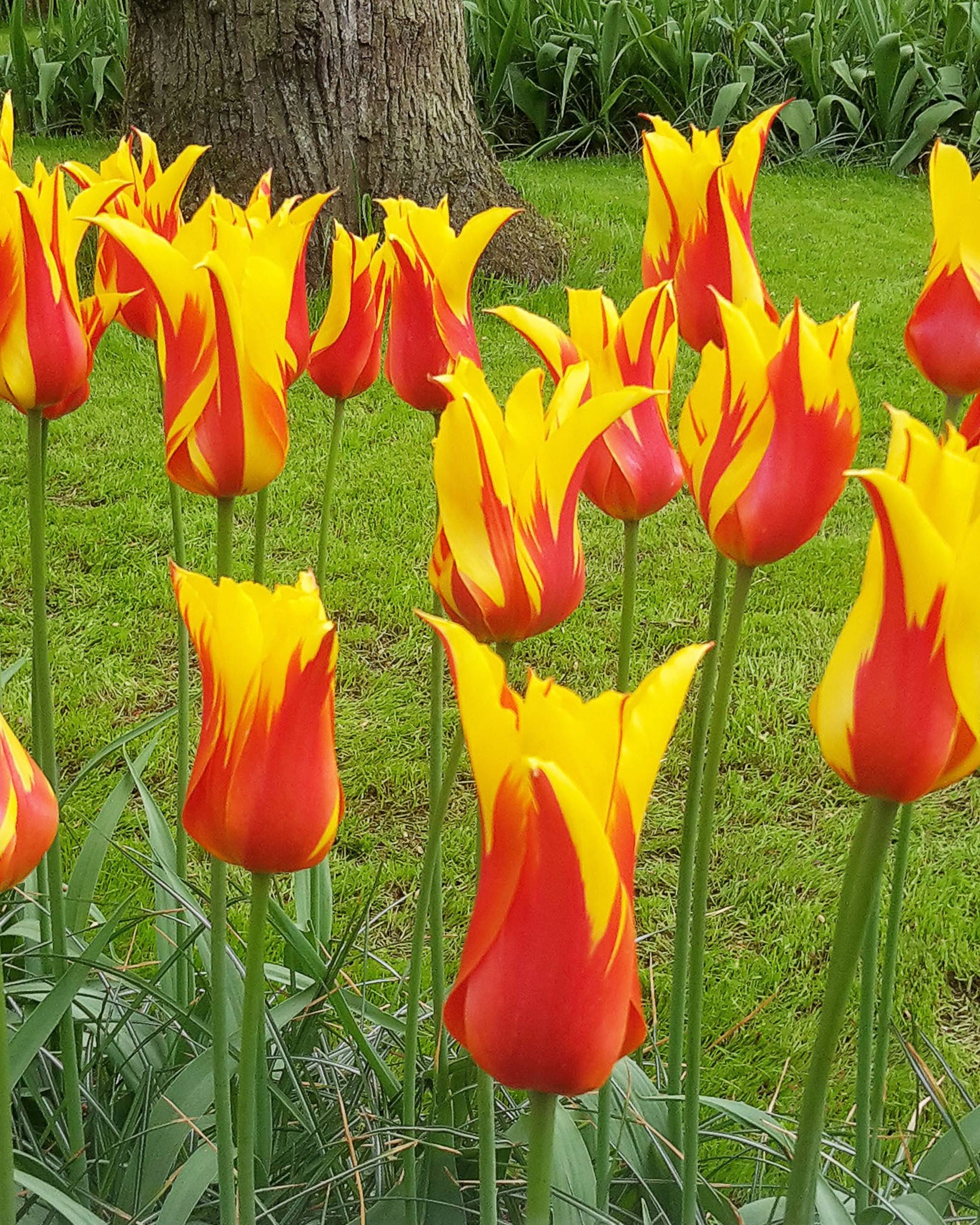 Use the startling flower colour of tulips to create a dramatic spectacle at the start of spring. Wide drifts of colour through your garden borders will lift your spirits and attract a lot of attention. As the season develops tulips of many shapes and sizes can be used to create bold, harmonious and certainly sophisticated combinations with the other plants growing in your garden. From the small-growing wild species to the colourful mid-season varieties and those that grow very tall and flower late, there are endless possibilities here to be explored by the adventurous gardener.