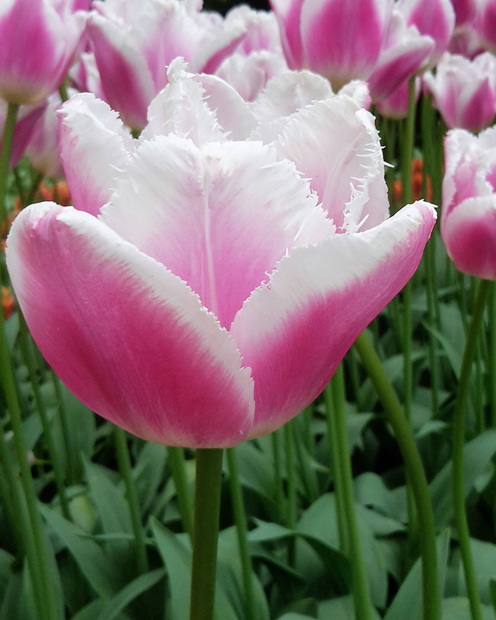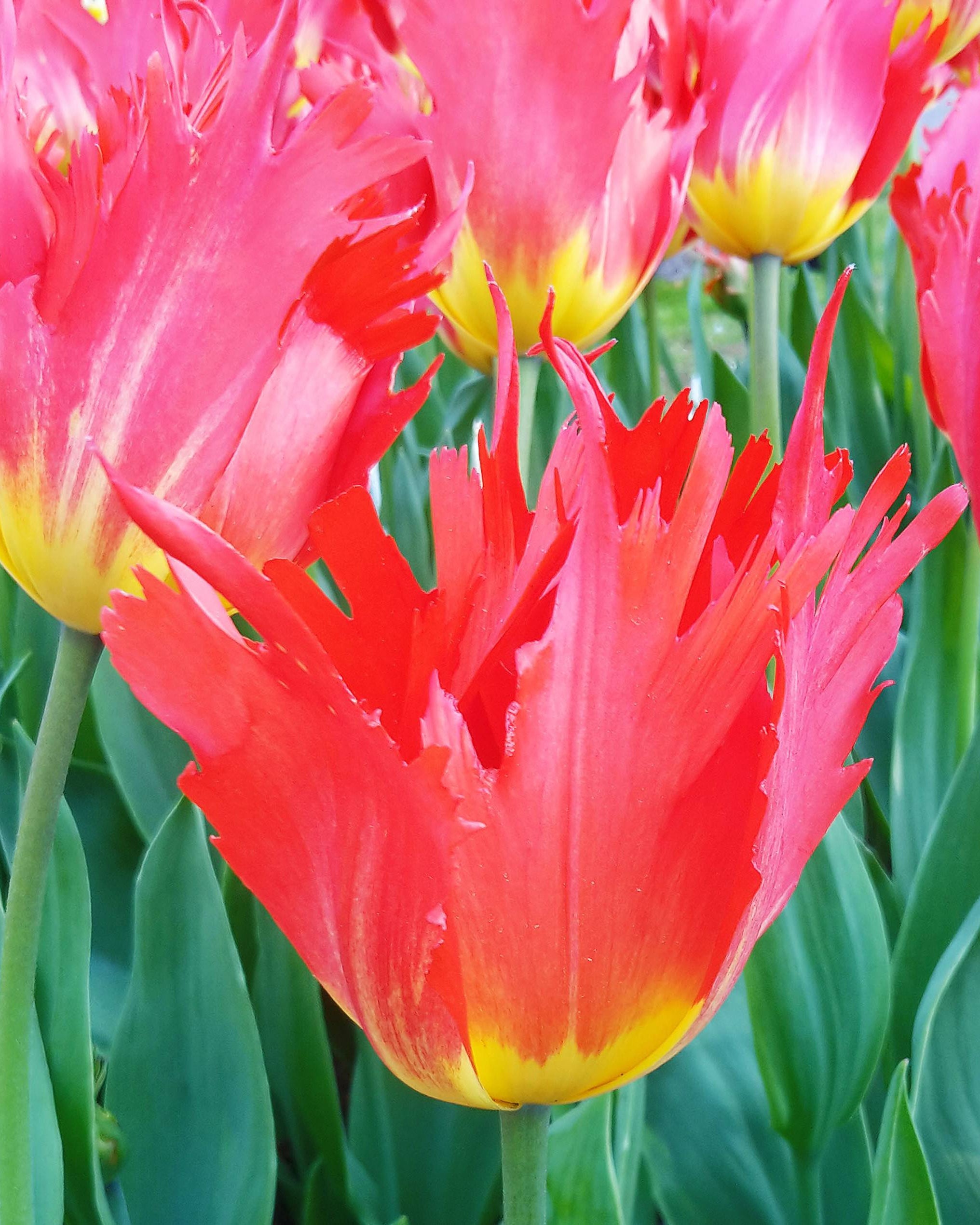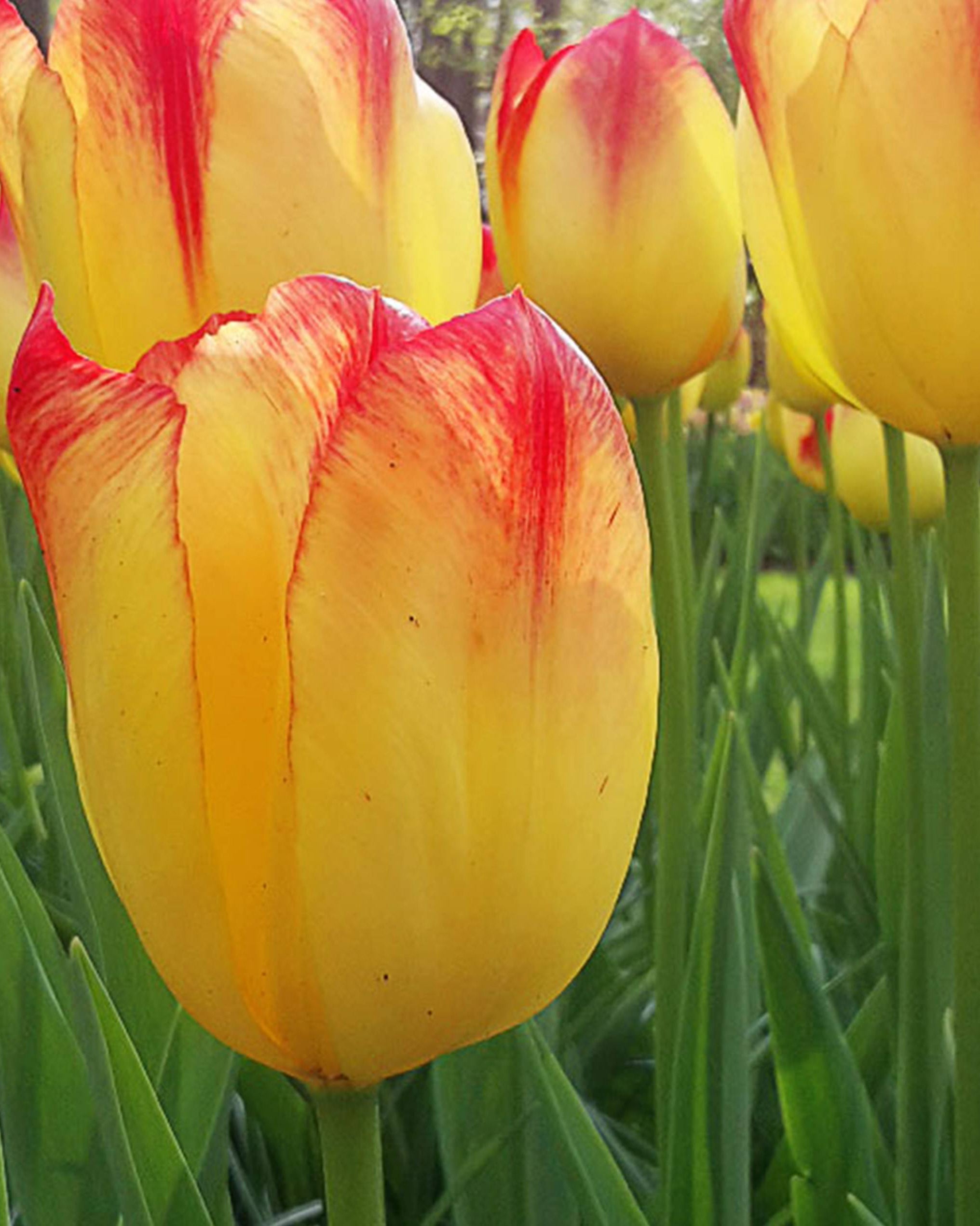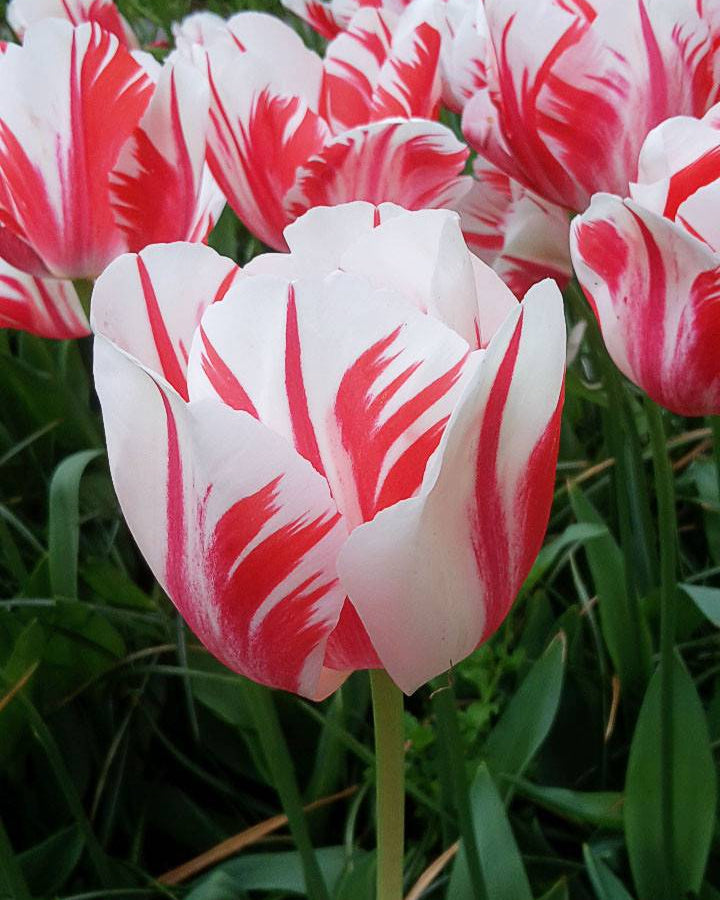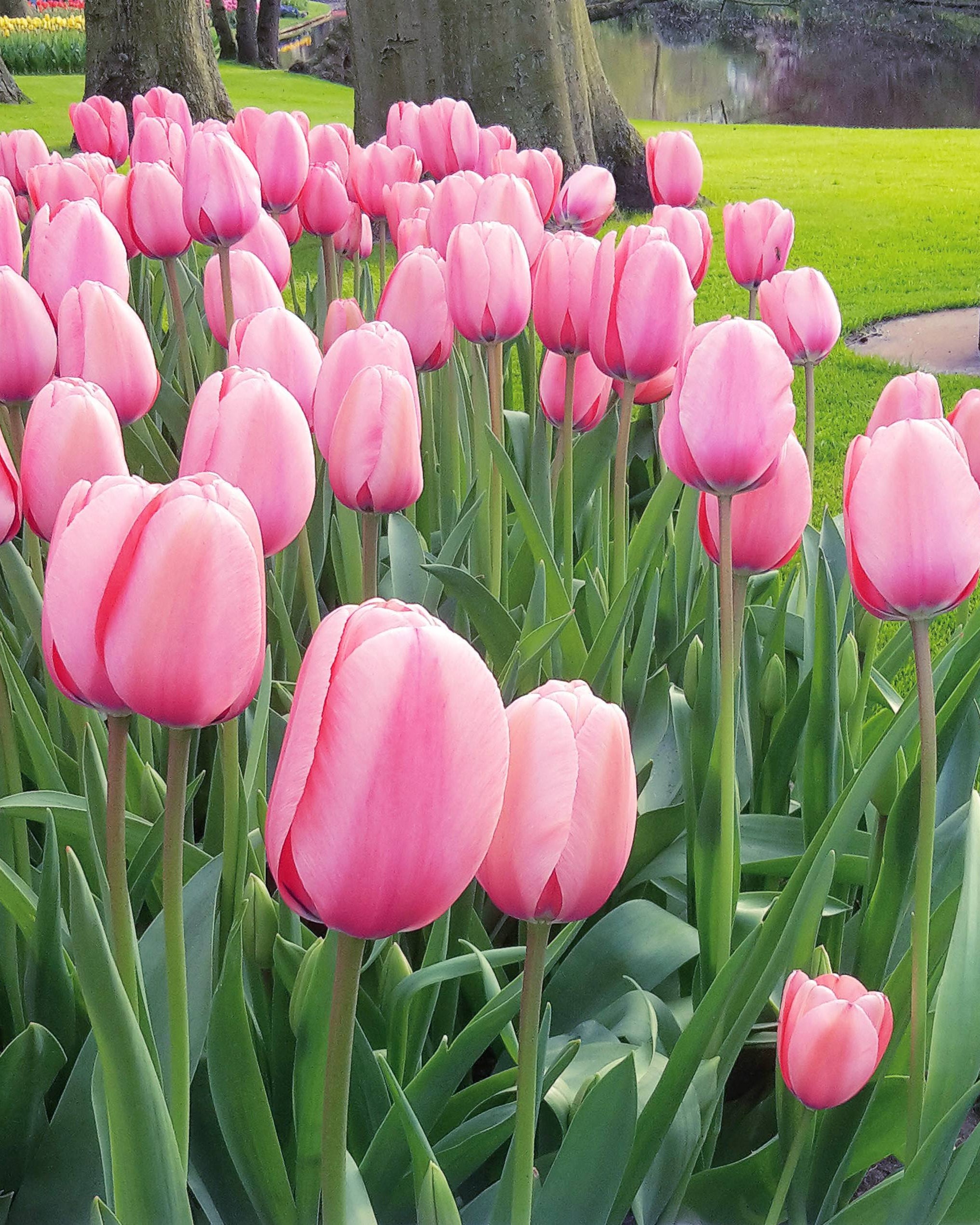 Use the startling flower colour of tulips to create a dramatic spectacle at the start of spring. Wide drifts of colour through your garden borders will lift your spirits and attract a lot of attention. As the season develops tulips of many shapes and sizes can be used to create bold, harmonious and certainly sophisticated combinations with the other plants growing in your garden. From the small-growing wild species to the colourful mid-season varieties and those that grow very tall and flower late, there are endless possibilities here to be explored by the adventurous gardener.