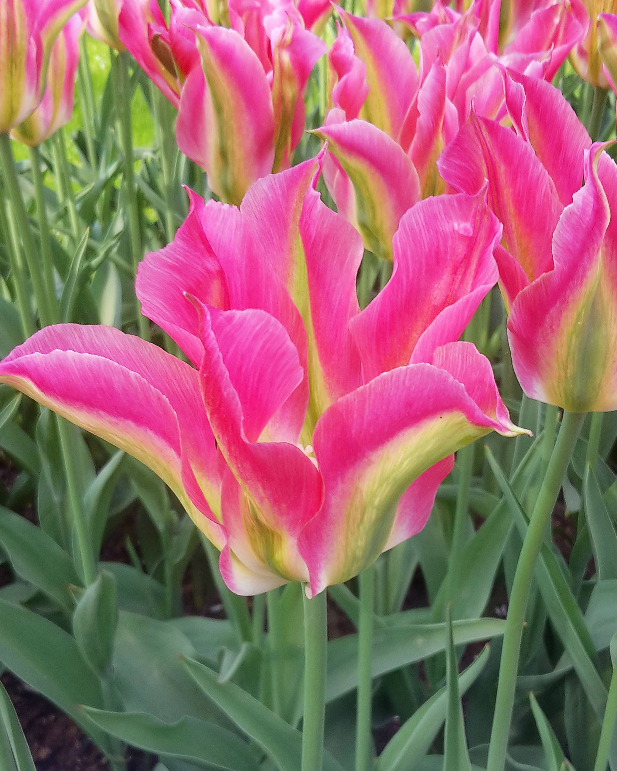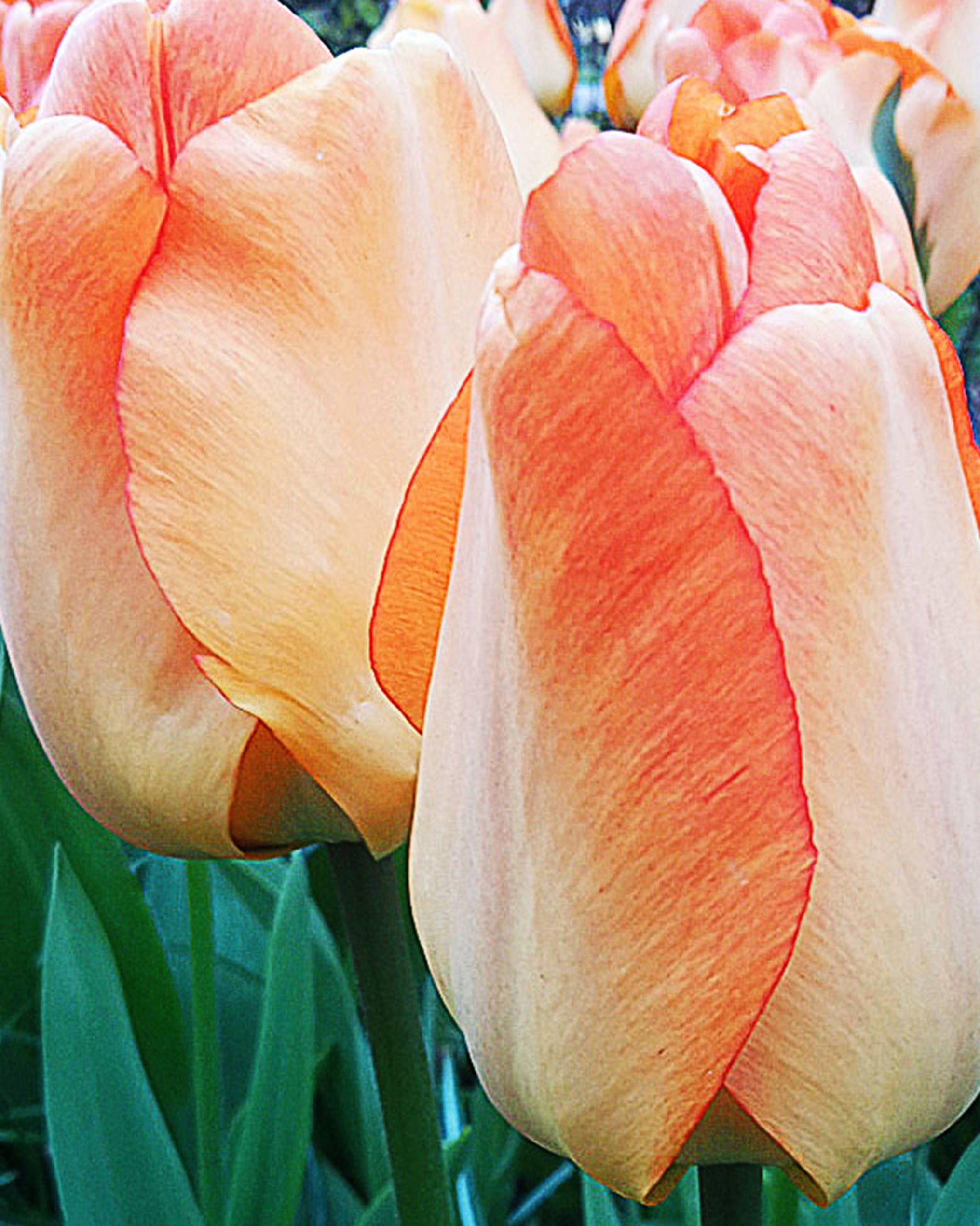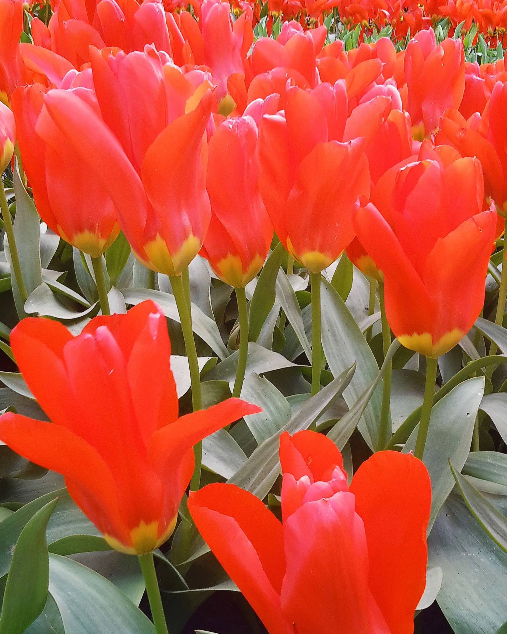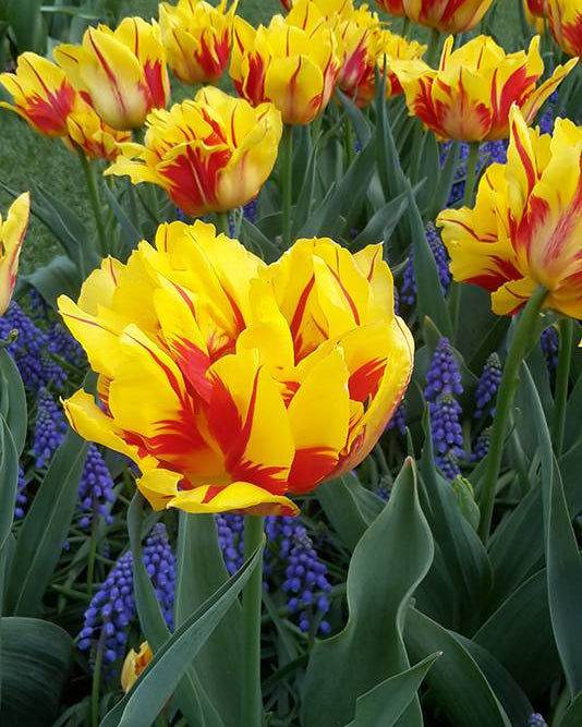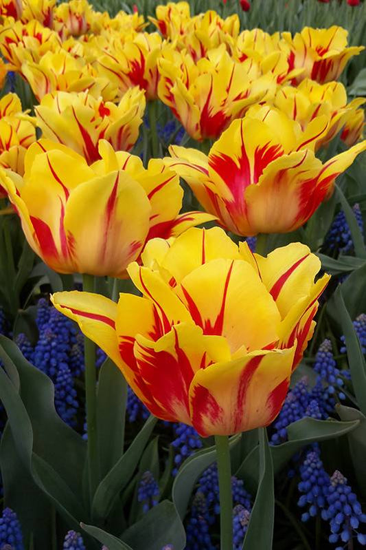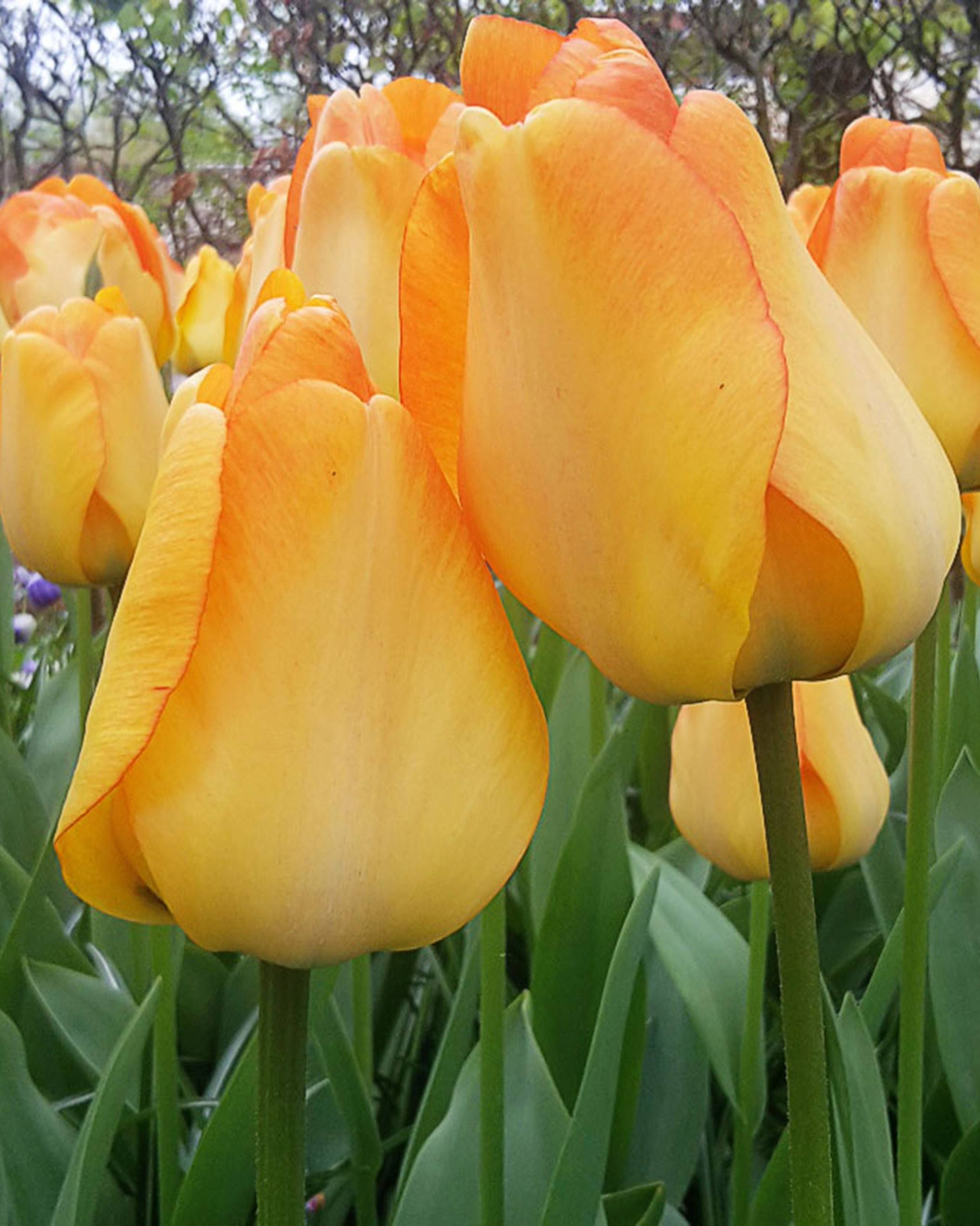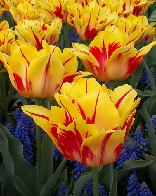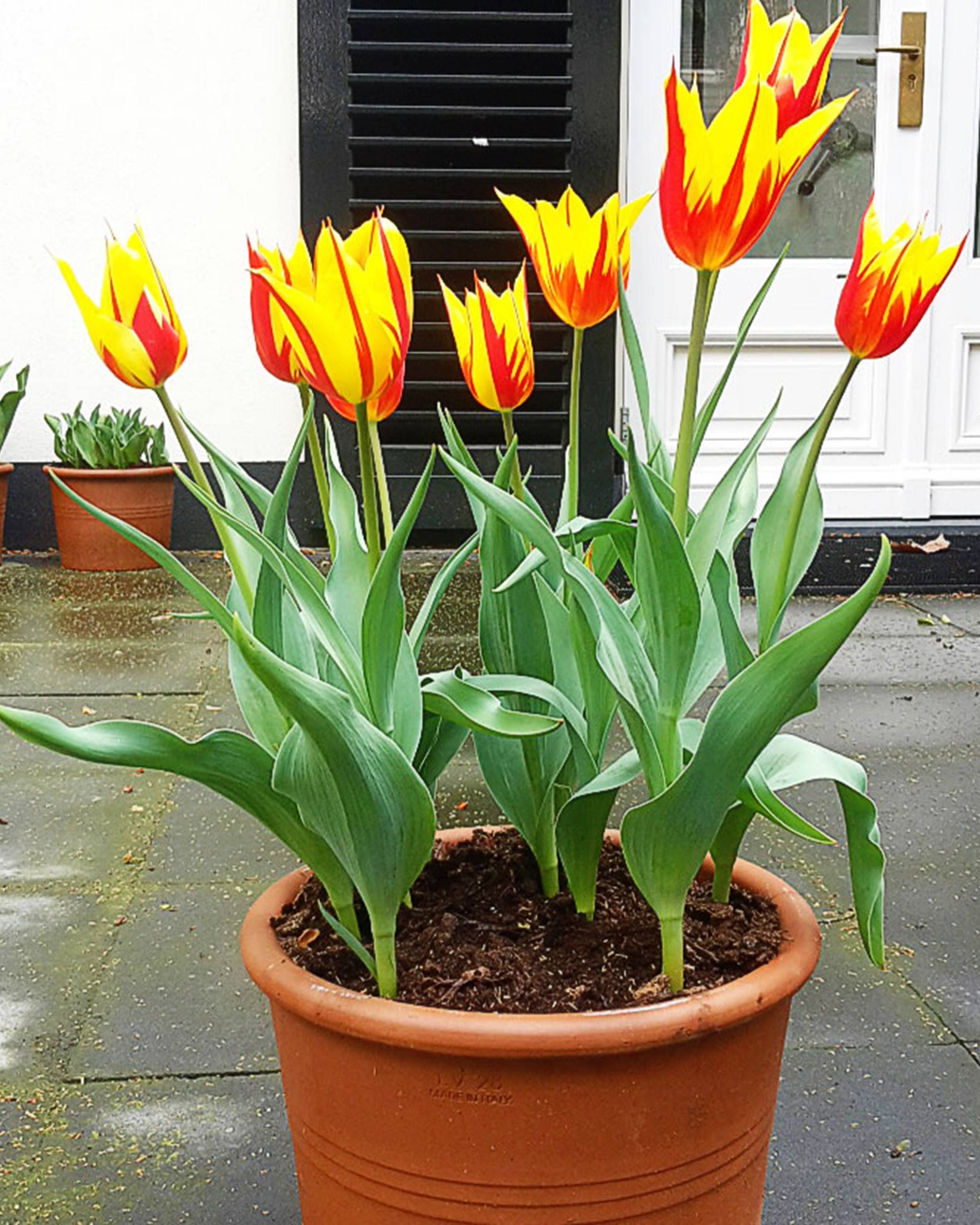 Use the startling flower colour of tulips to create a dramatic spectacle at the start of spring. Wide drifts of colour through your garden borders will lift your spirits and attract a lot of attention. As the season develops tulips of many shapes and sizes can be used to create bold, harmonious and certainly sophisticated combinations with the other plants growing in your garden. From the small-growing wild species to the colourful mid-season varieties and those that grow very tall and flower late, there are endless possibilities here to be explored by the adventurous gardener.