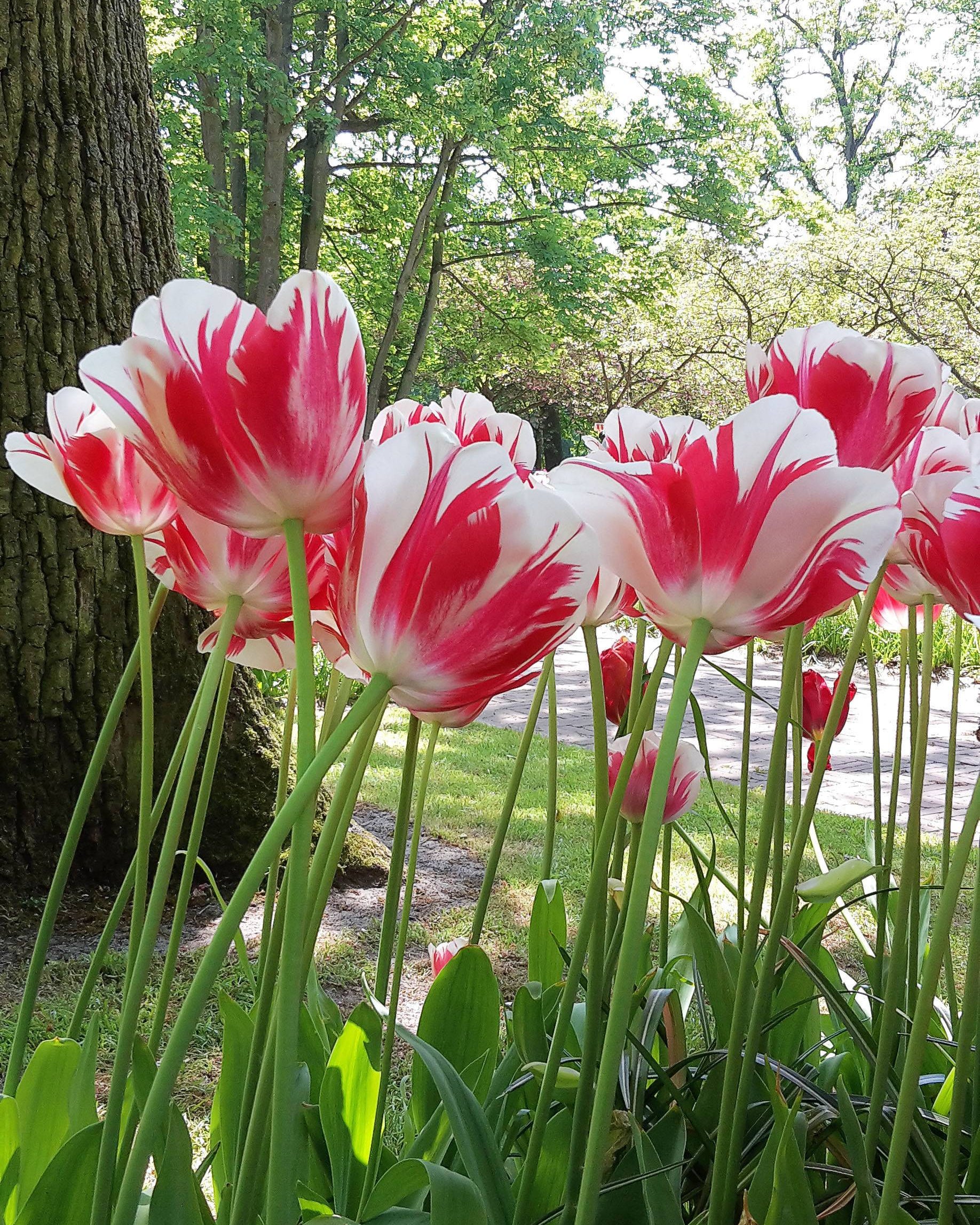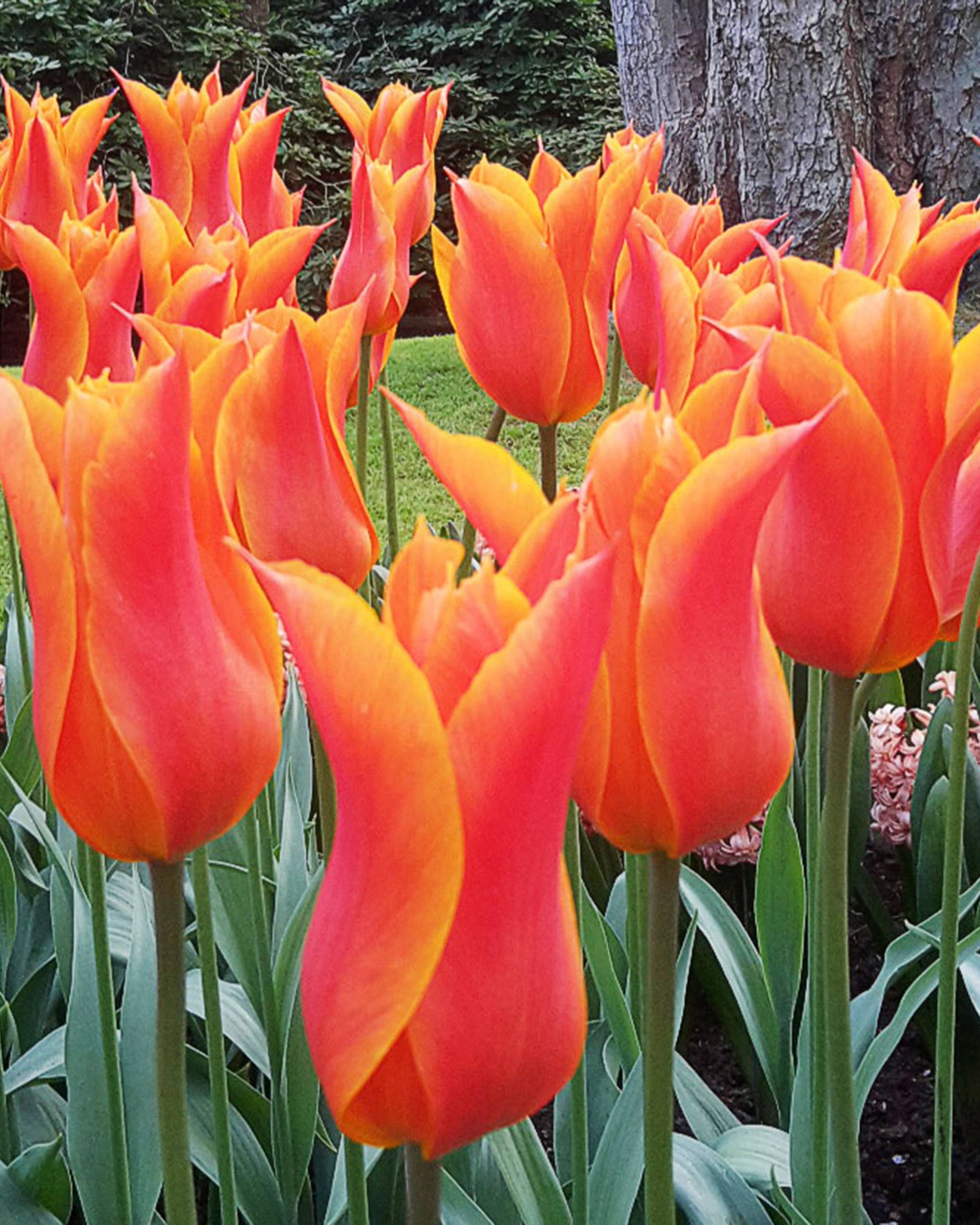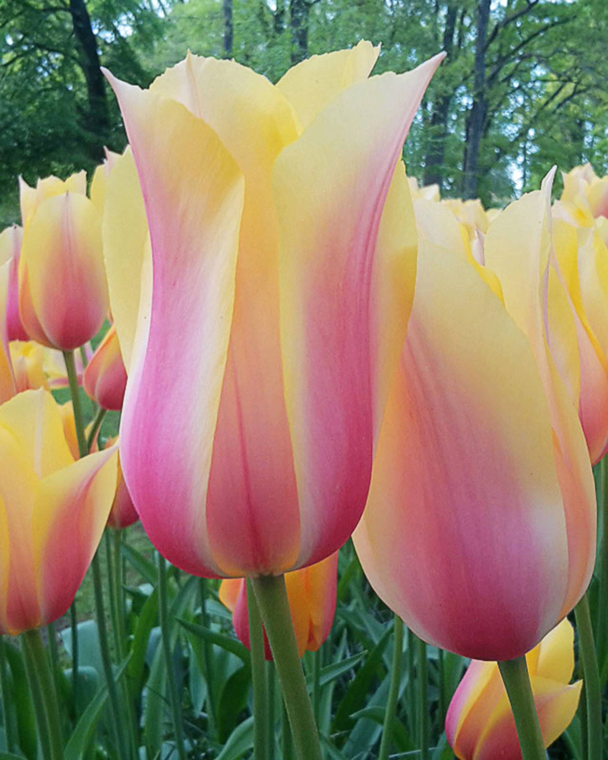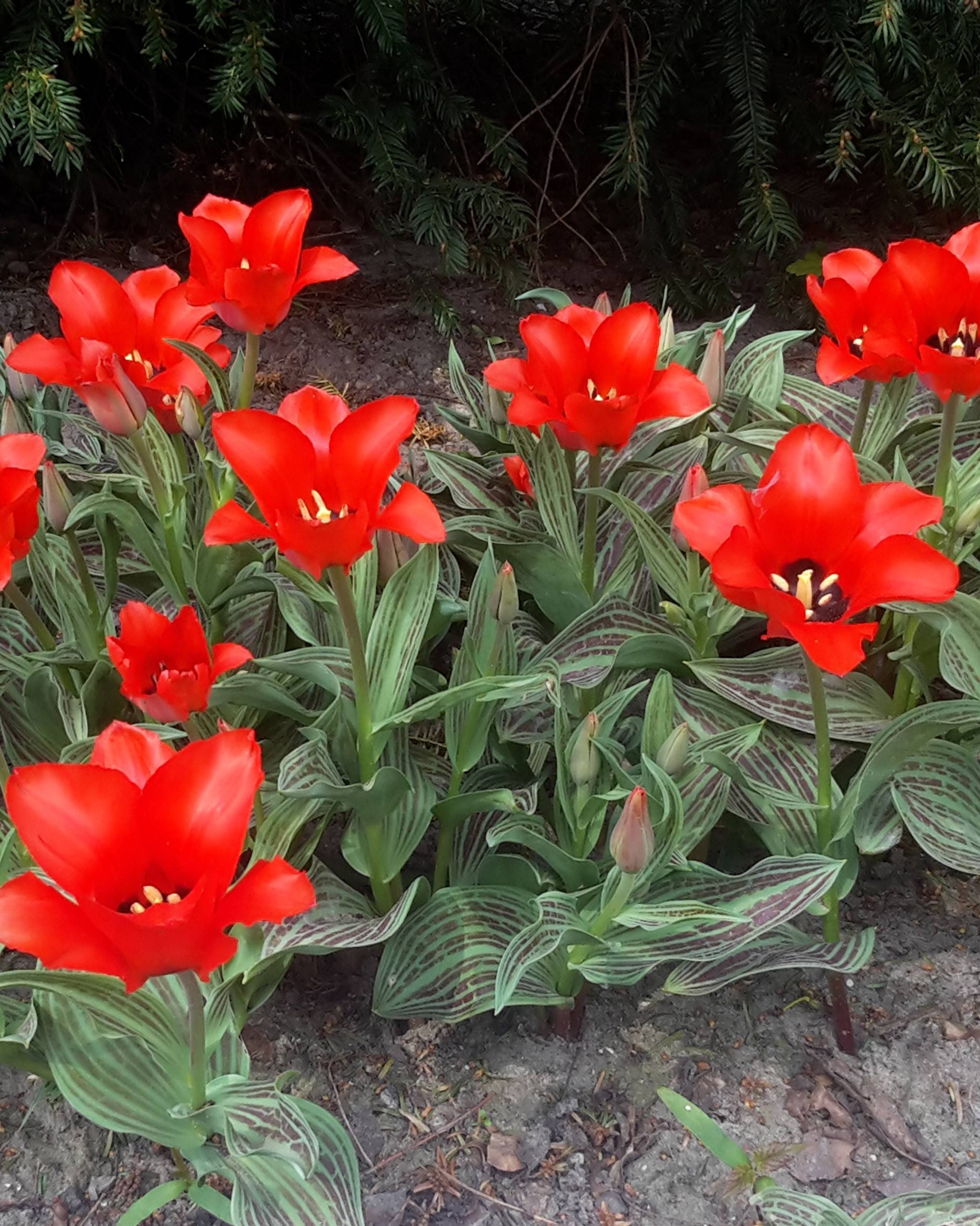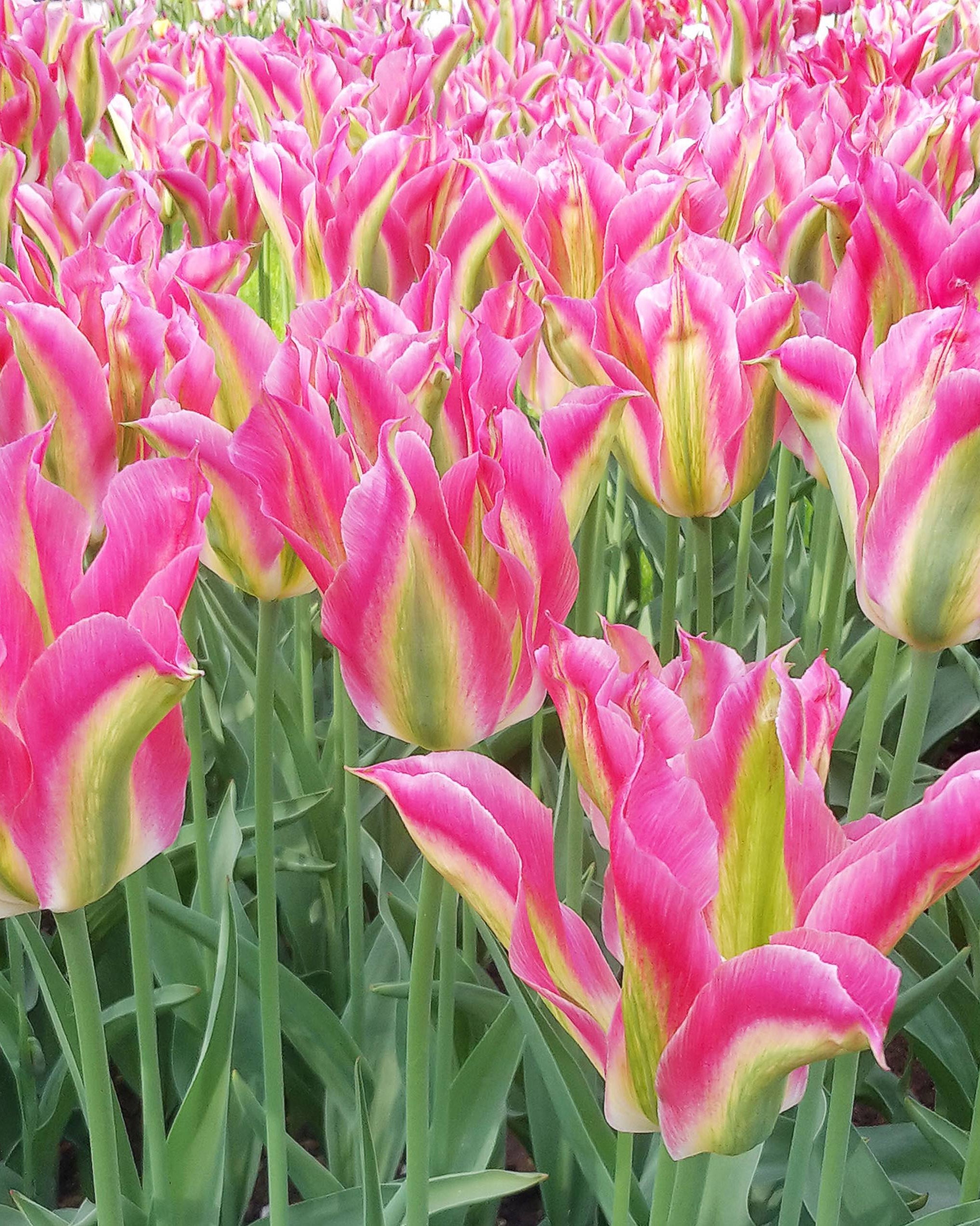 Use the startling flower colour of tulips to create a dramatic spectacle at the start of spring. Wide drifts of colour through your garden borders will lift your spirits and attract a lot of attention. As the season develops tulips of many shapes and sizes can be used to create bold, harmonious and certainly sophisticated combinations with the other plants growing in your garden. From the small-growing wild species to the colourful mid-season varieties and those that grow very tall and flower late, there are endless possibilities here to be explored by the adventurous gardener.