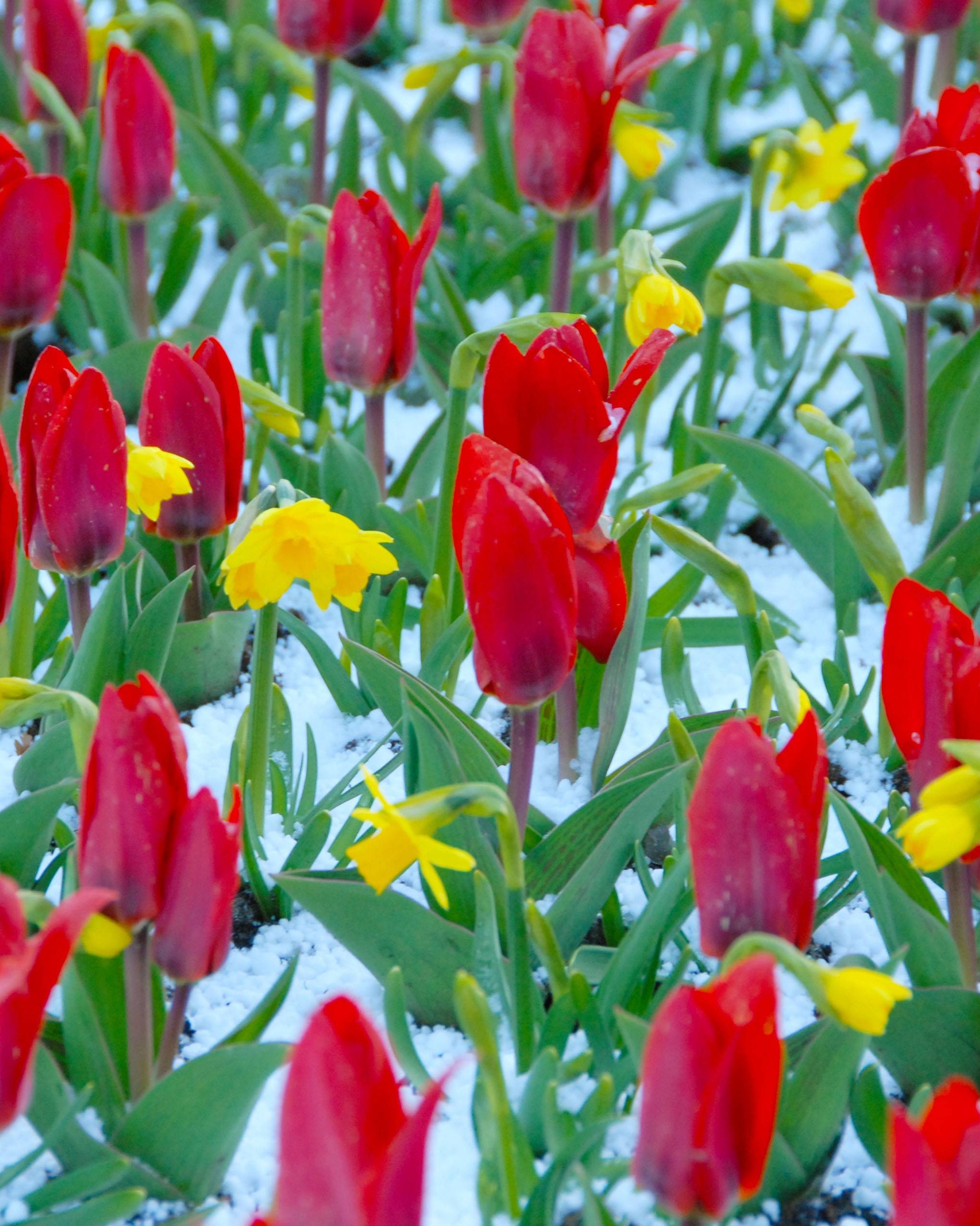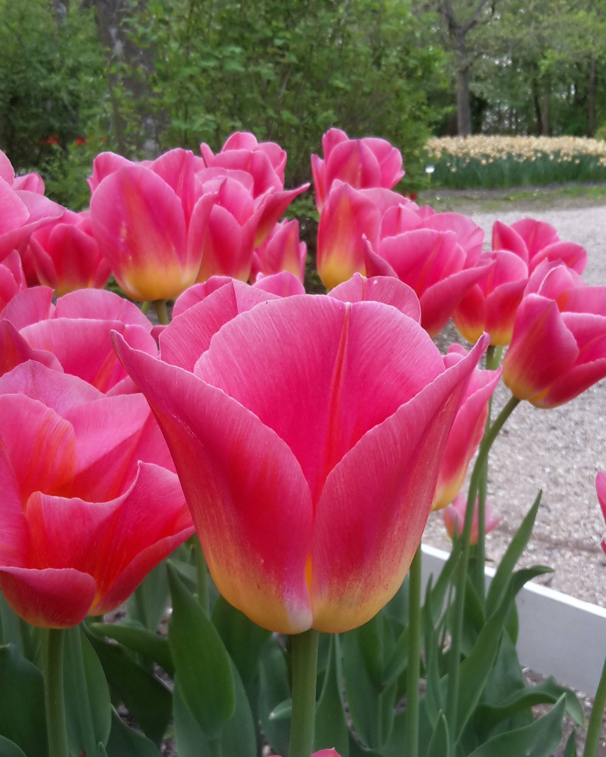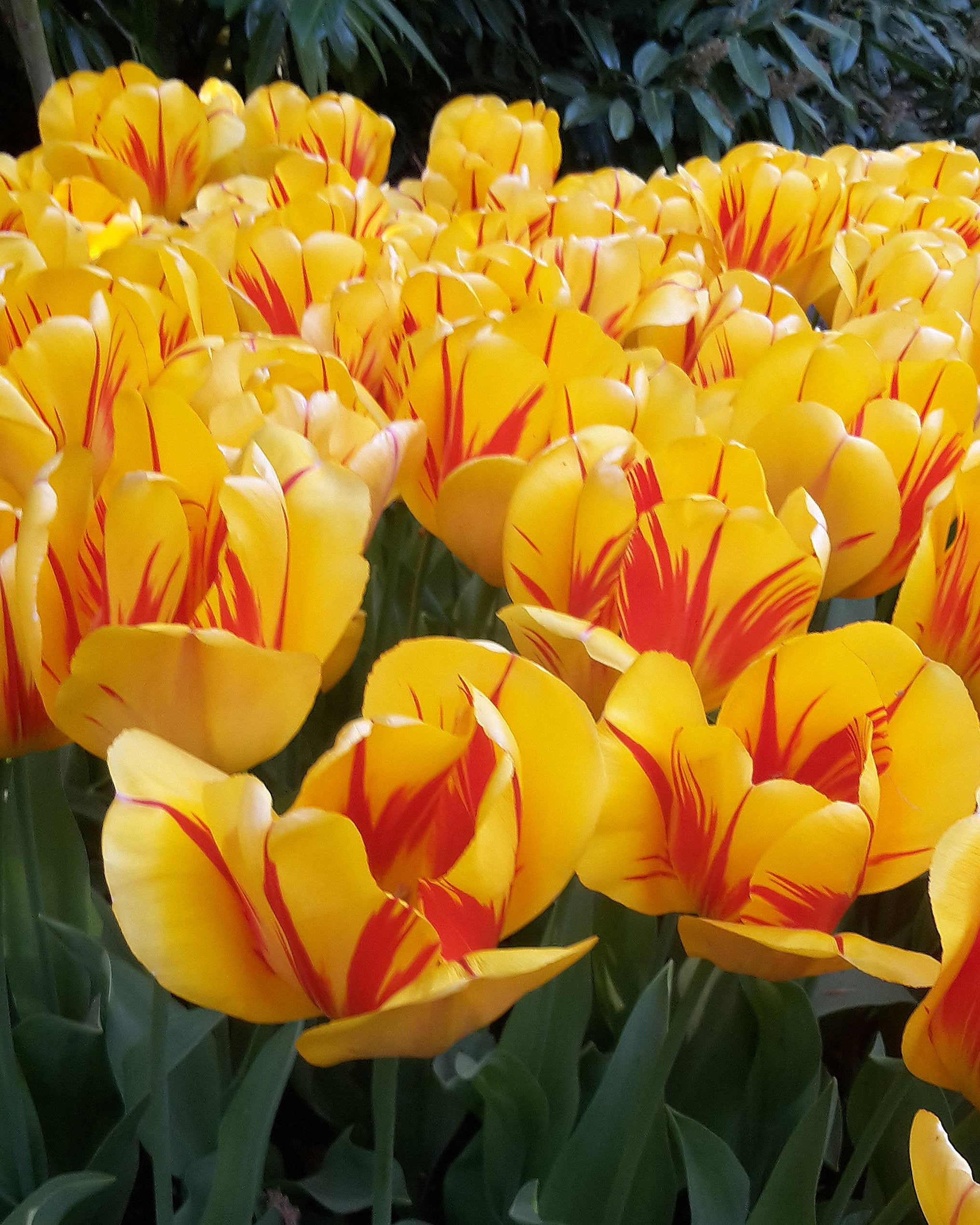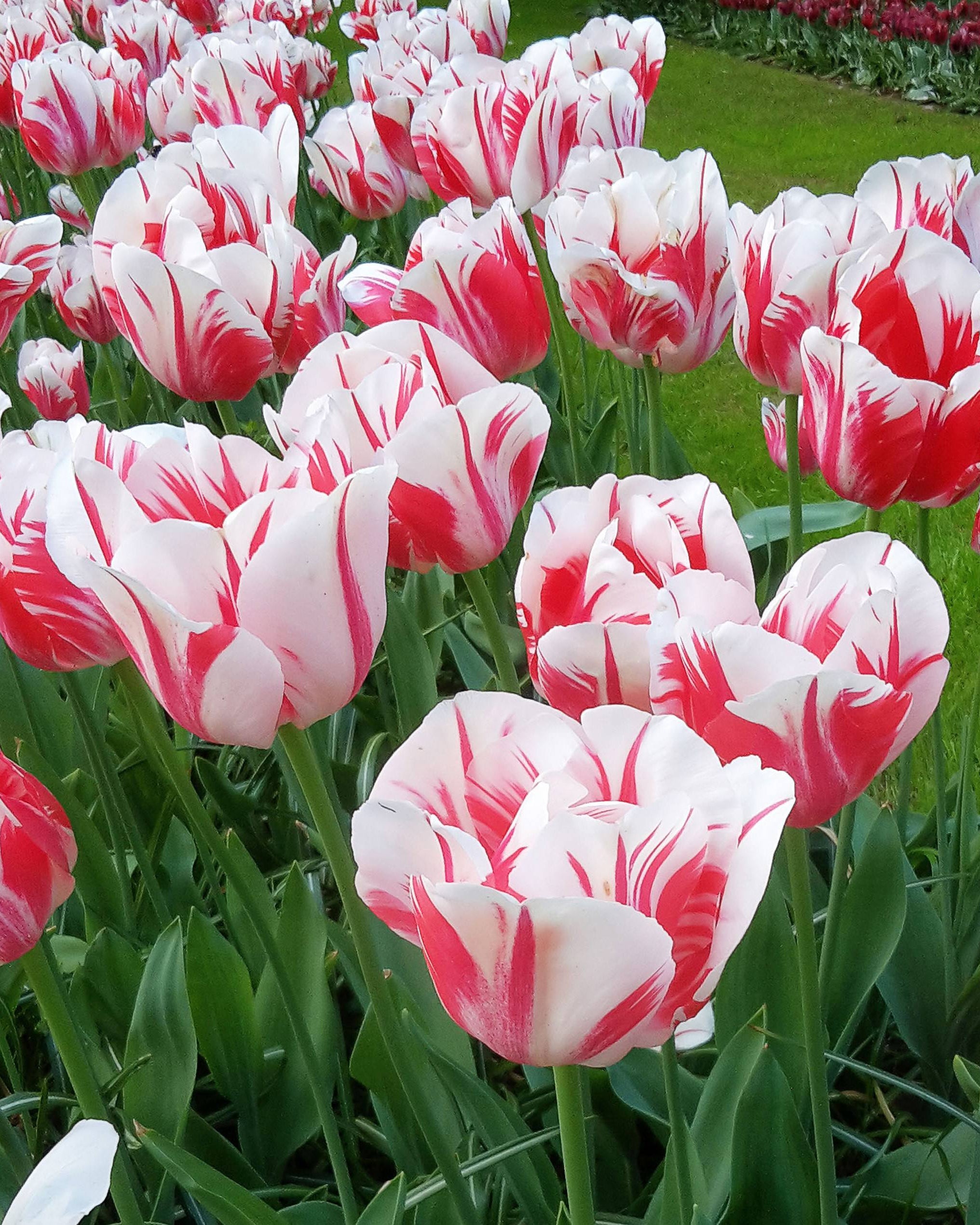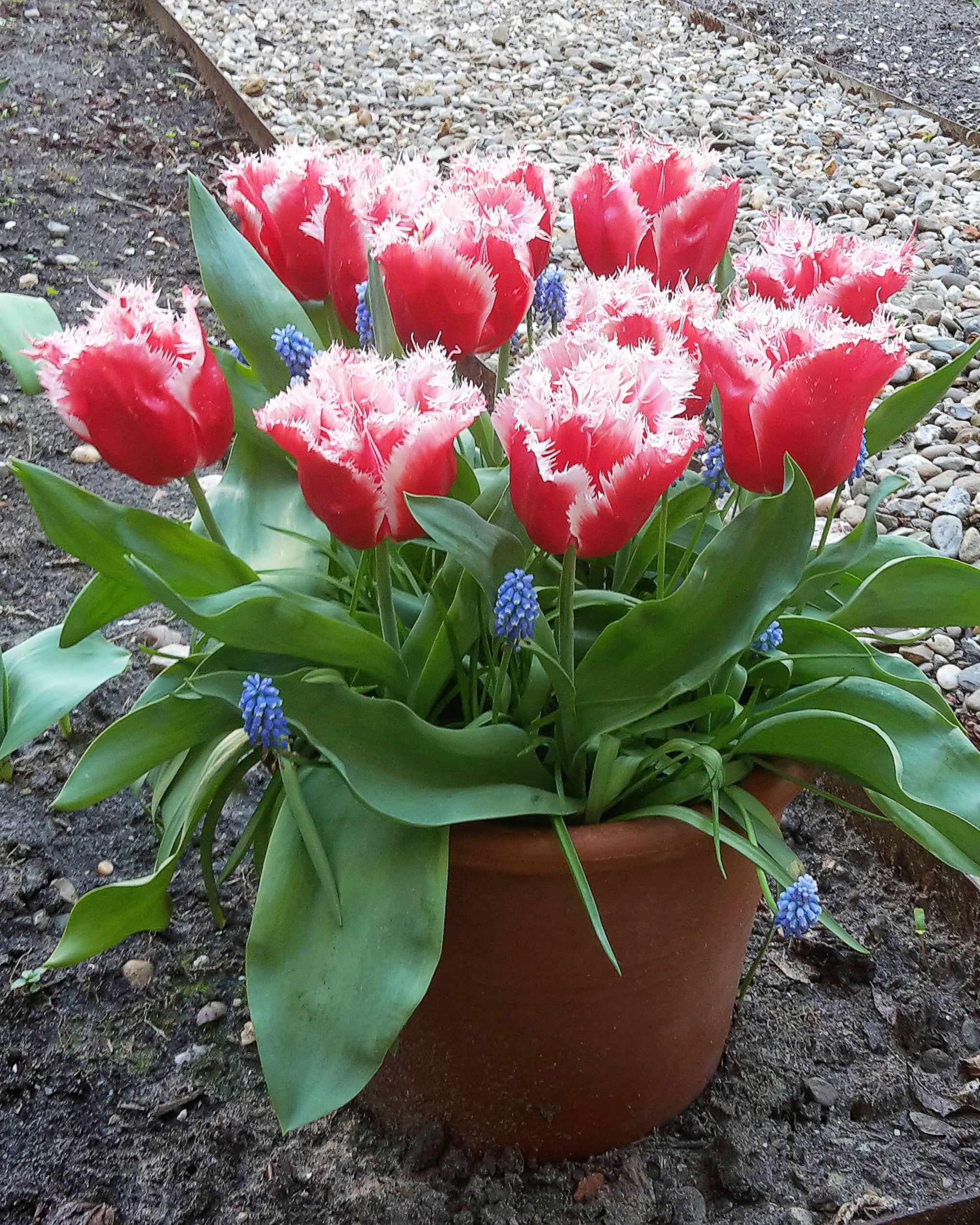 Use the startling flower colour of tulips to create a dramatic spectacle at the start of spring. Wide drifts of colour through your garden borders will lift your spirits and attract a lot of attention. As the season develops tulips of many shapes and sizes can be used to create bold, harmonious and certainly sophisticated combinations with the other plants growing in your garden. From the small-growing wild species to the colourful mid-season varieties and those that grow very tall and flower late, there are endless possibilities here to be explored by the adventurous gardener.