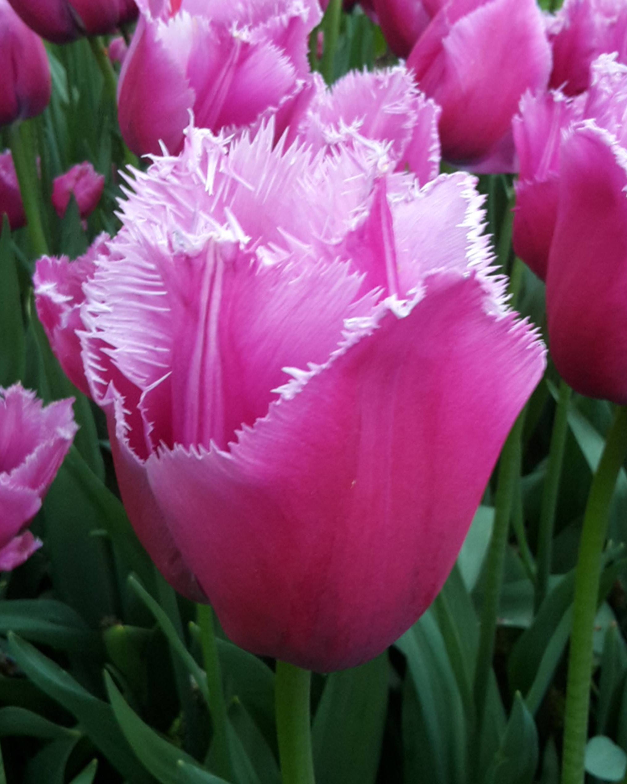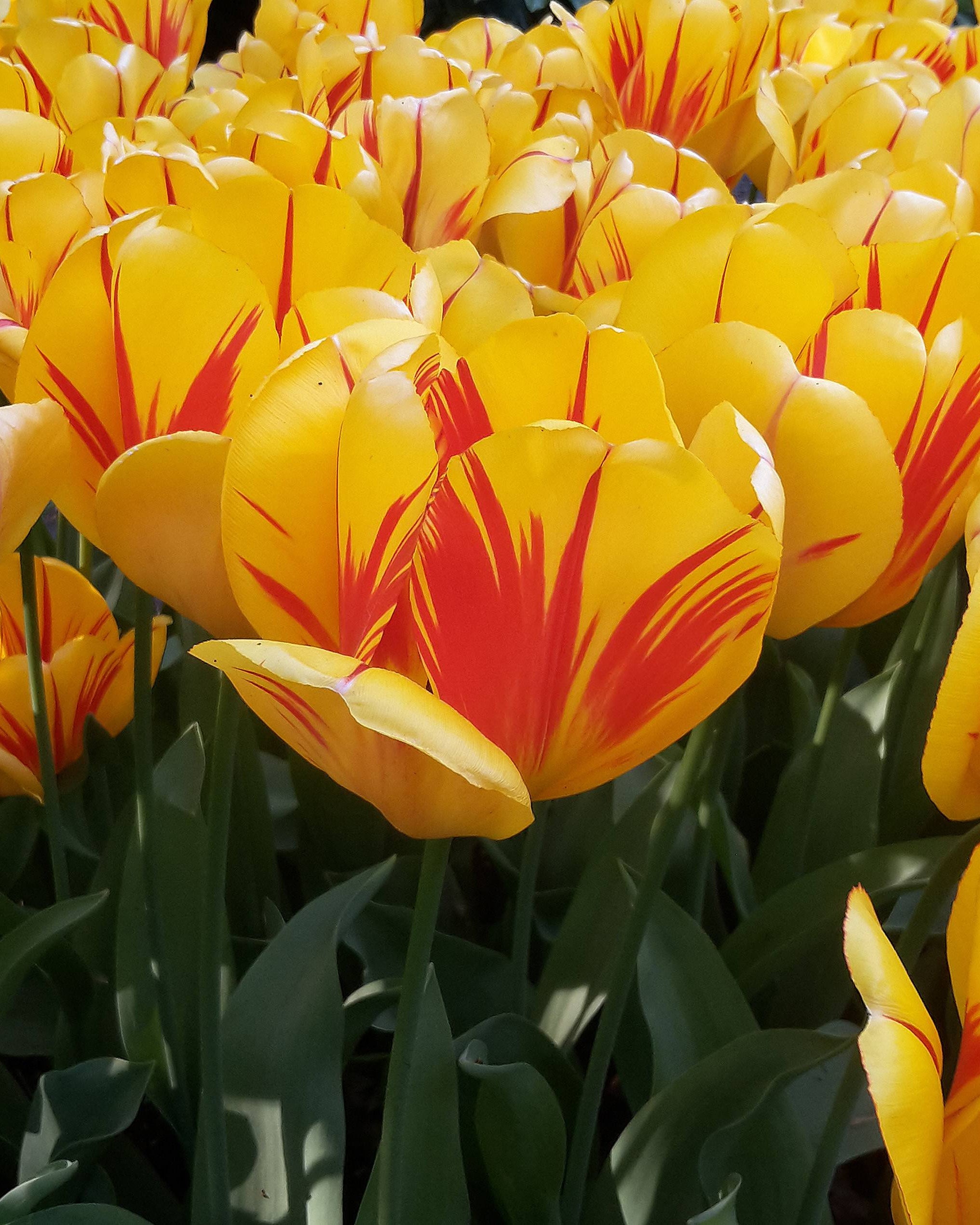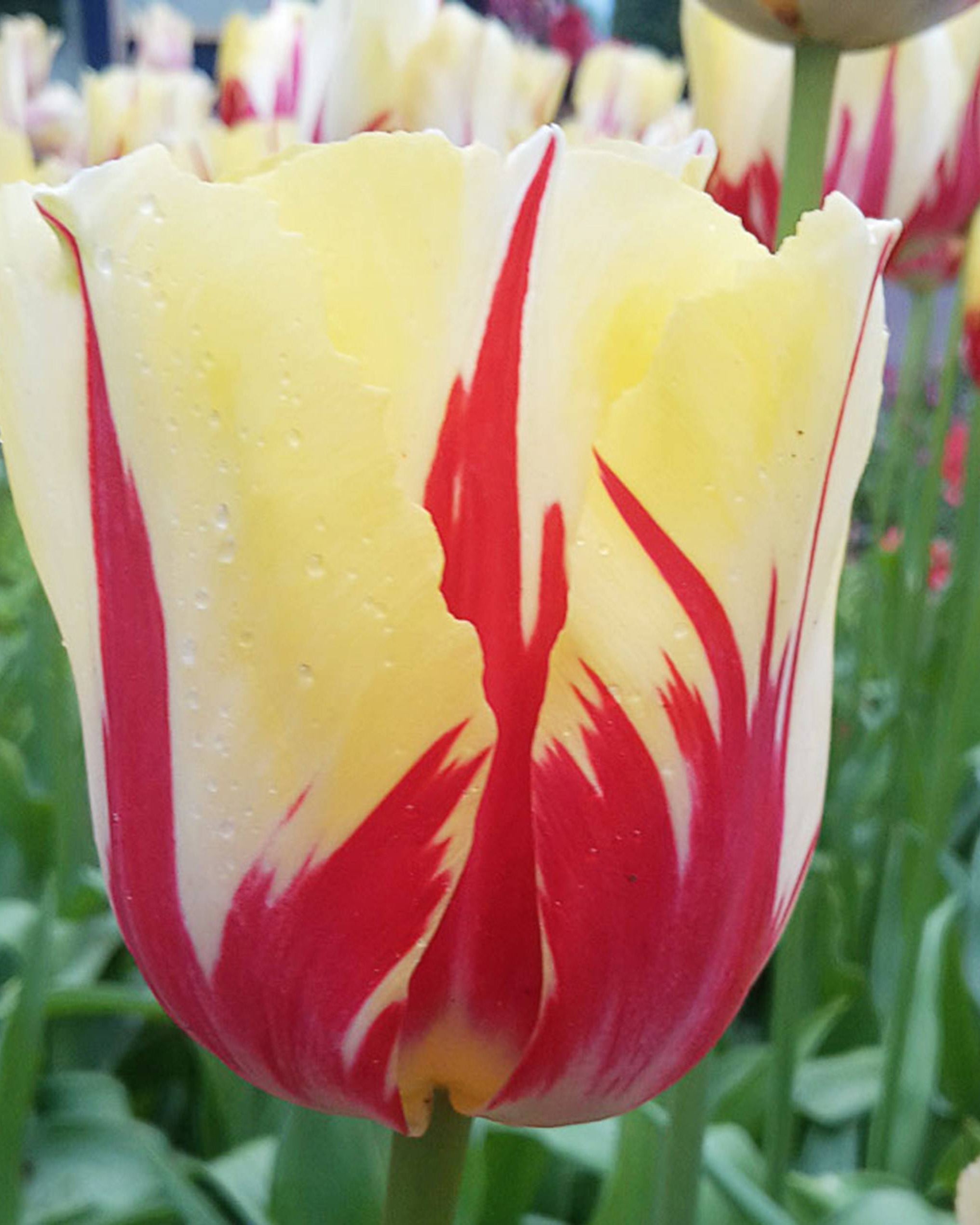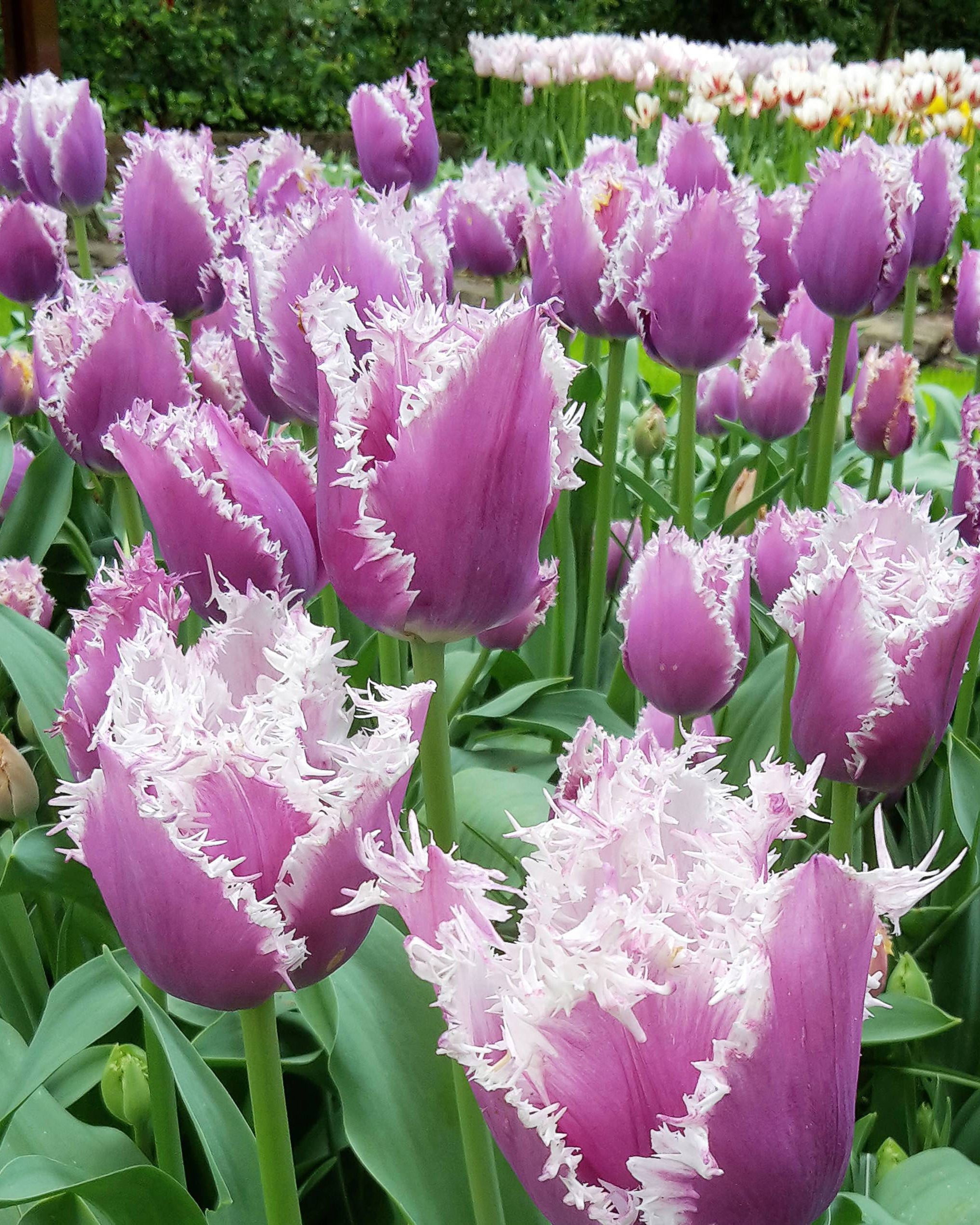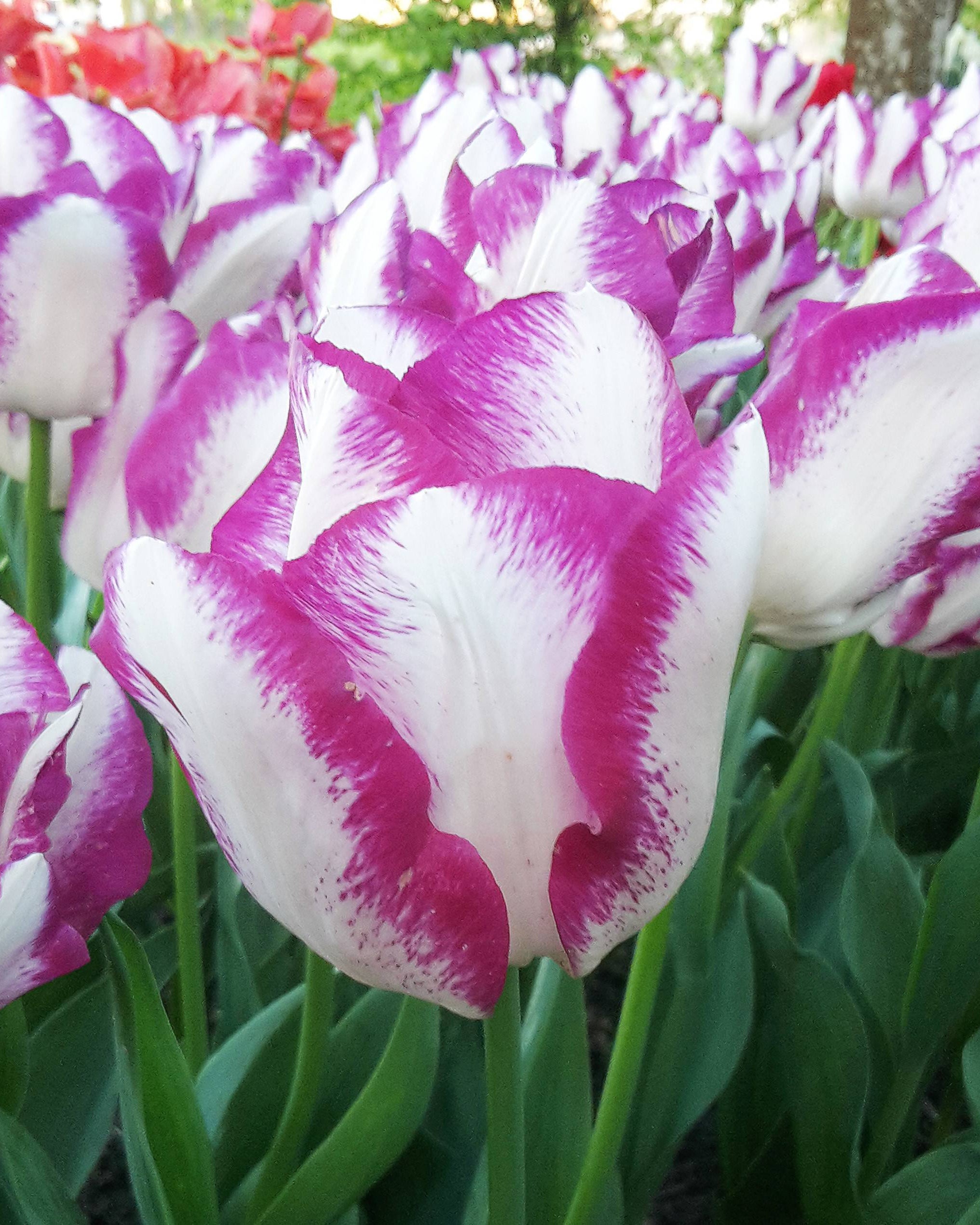 Use the startling flower colour of tulips to create a dramatic spectacle at the start of spring. Wide drifts of colour through your garden borders will lift your spirits and attract a lot of attention. As the season develops tulips of many shapes and sizes can be used to create bold, harmonious and certainly sophisticated combinations with the other plants growing in your garden. From the small-growing wild species to the colourful mid-season varieties and those that grow very tall and flower late, there are endless possibilities here to be explored by the adventurous gardener.
