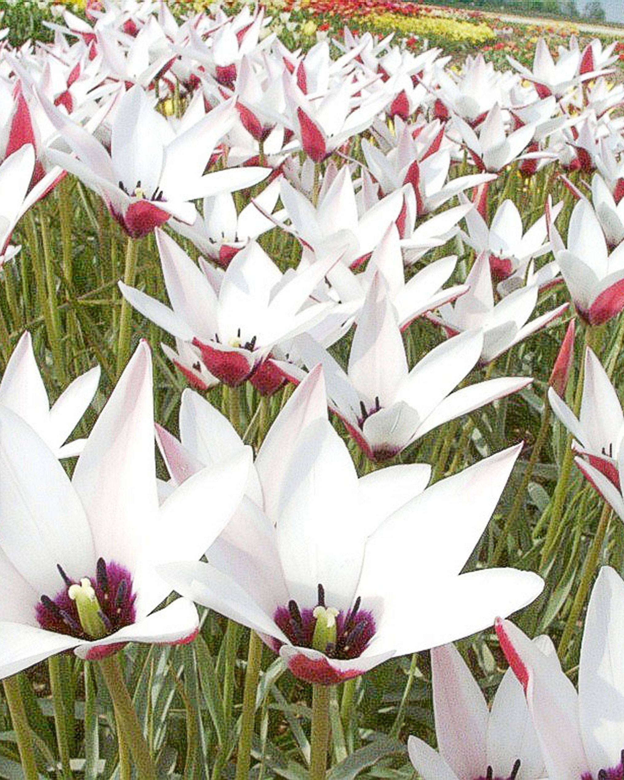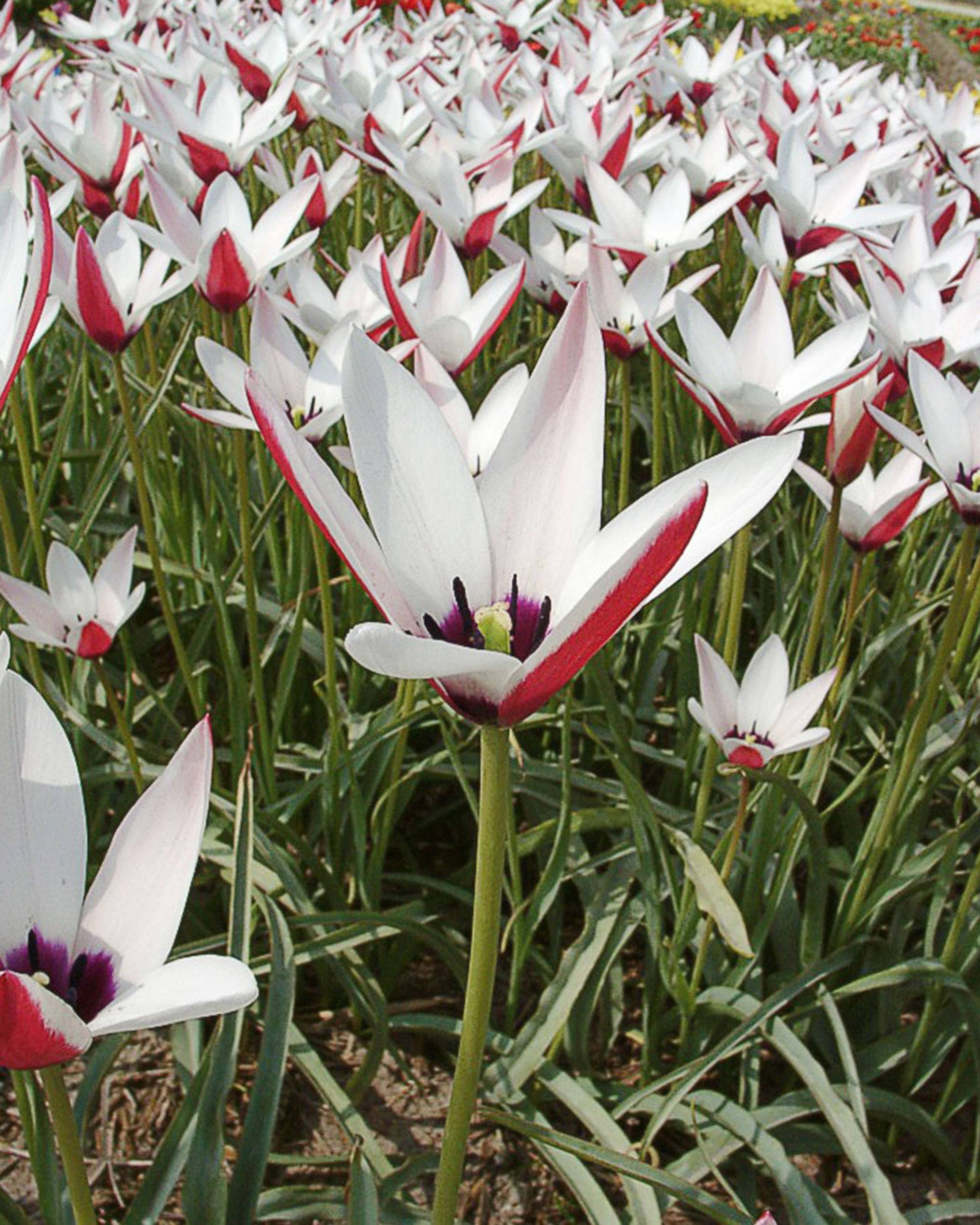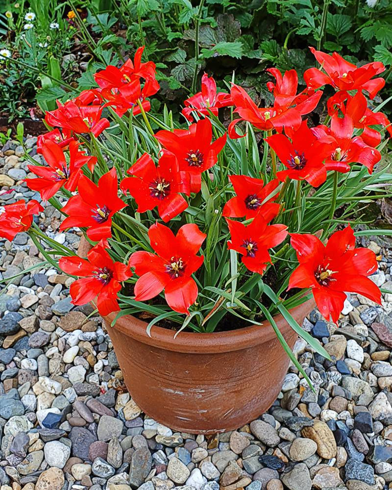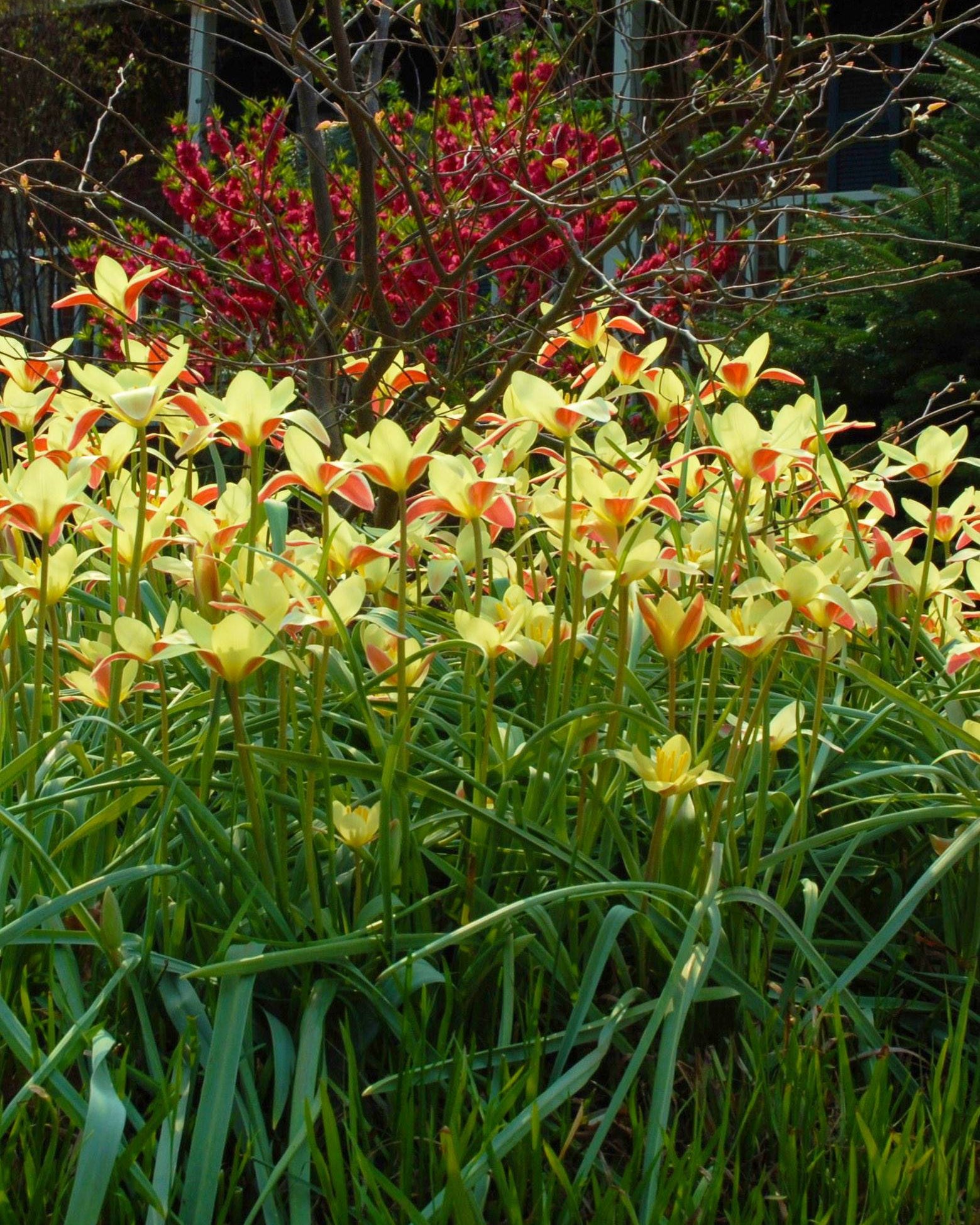Wild tulips open up a world of adventure, calling us from the beaten track into the unknown. They are the ancestors of today's spectacular garden tulip cultivars. Surviving in the harsh conditions of their mountain origins, most of them are small and delicate in appearance, irresistible jewels to be relished by any true garden enthusiast. We offer a carefully chose selection of the best and most reliable sorts to add an extra dimension to your spring garden. Many are bold enough to include in garden borders, but all are worthy of being grown in pots where their refined beauty can be appreciated up close. All our bulb are grown from cultivated stock.