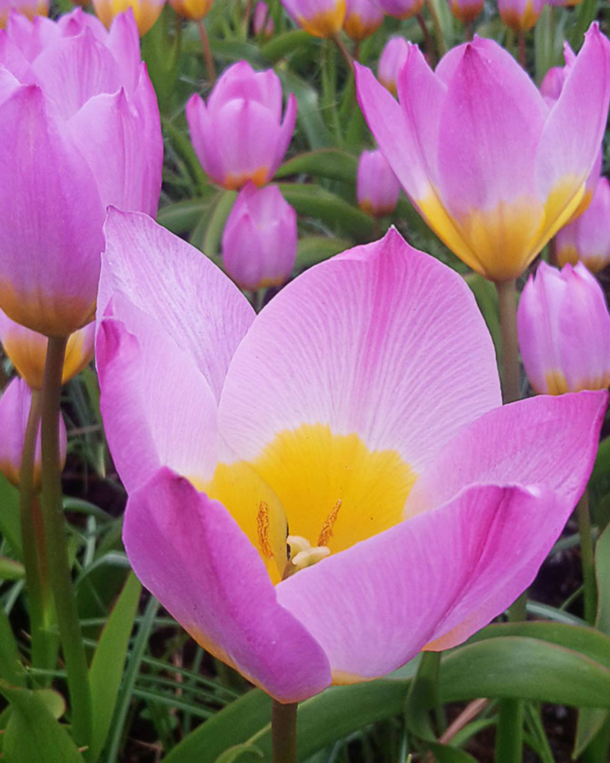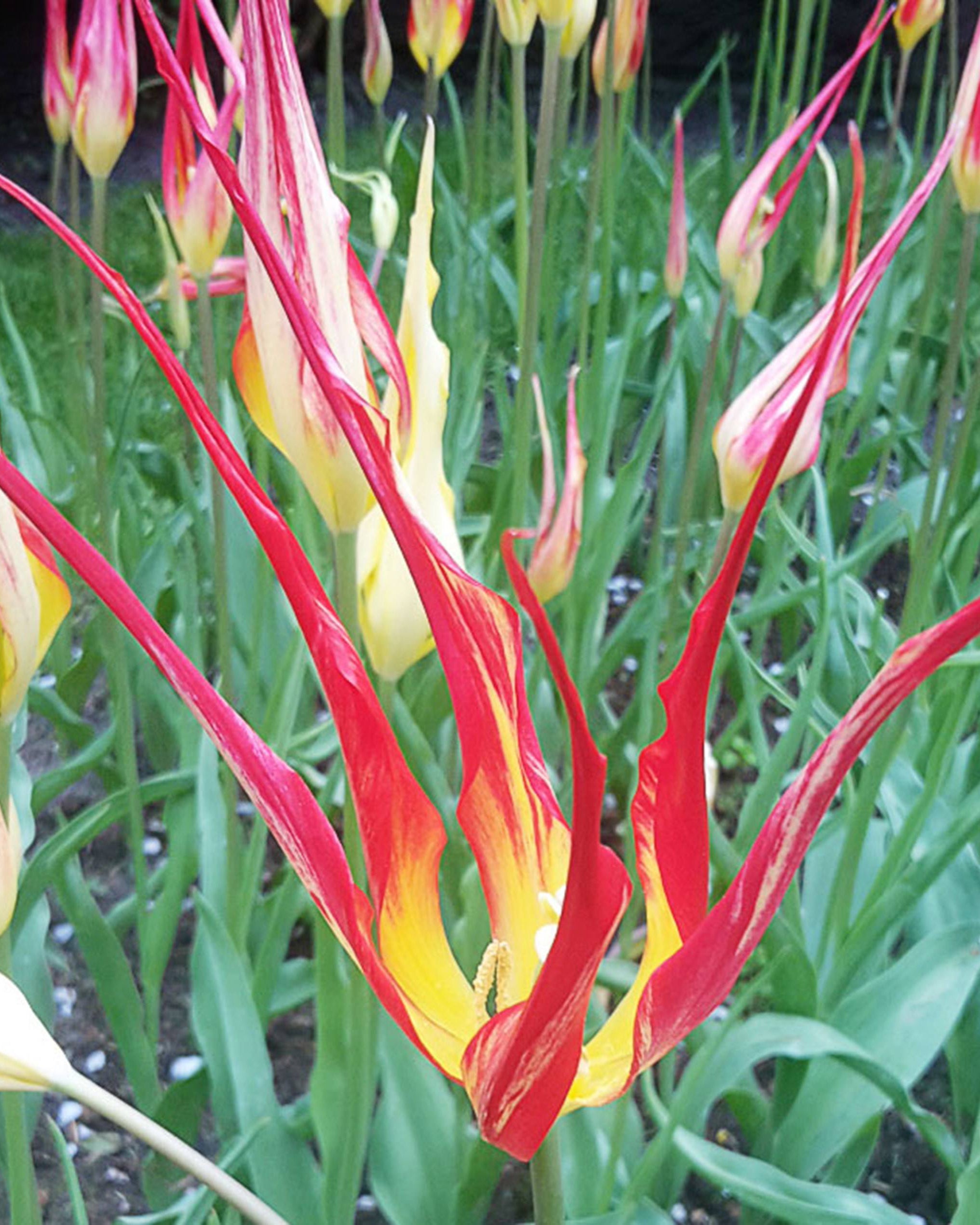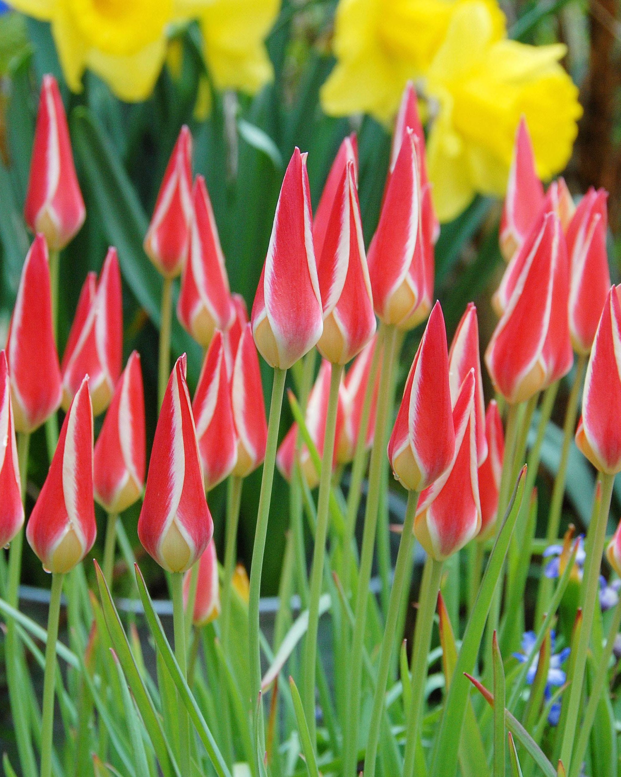 Wild tulips open up a world of adventure, calling us from the beaten track into the unknown. They are the ancestors of today's spectacular garden tulip cultivars. Surviving in the harsh conditions of their mountain origins, most of them are small and delicate in appearance, irresistible jewels to be relished by any true garden enthusiast. We offer a carefully chose selection of the best and most reliable sorts to add an extra dimension to your spring garden. Many are bold enough to include in garden borders, but all are worthy of being grown in pots where their refined beauty can be appreciated up close. All our bulb are grown from cultivated stock.