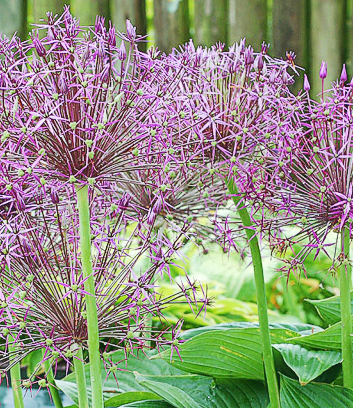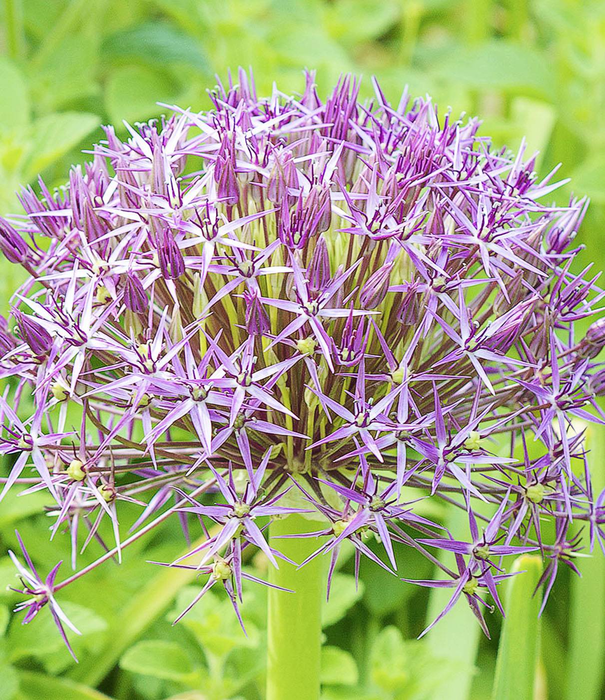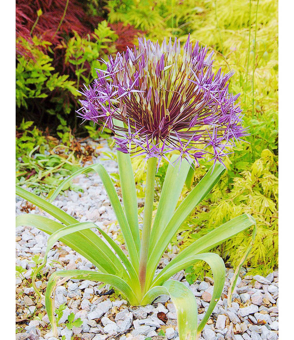 One of the best of the ornamental alliums. In early summer it carries colossal, spherical heads of starry, metallic-violet flowers which turn into strikingly attractive seed heads in autumn and winter. These dramatic flower heads measure up to 25cm across and always draw attention in the garden.